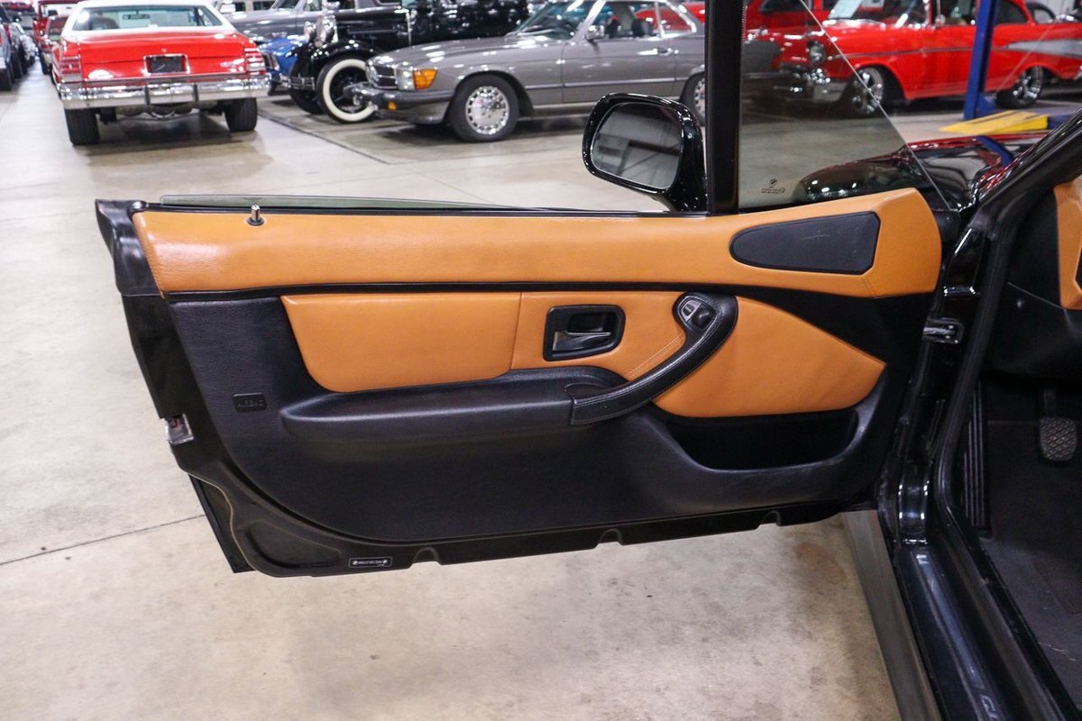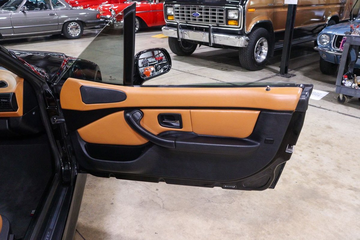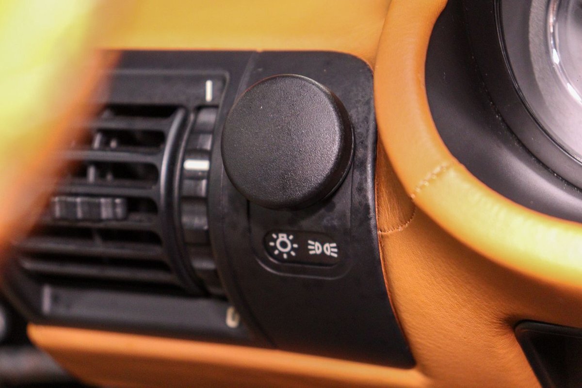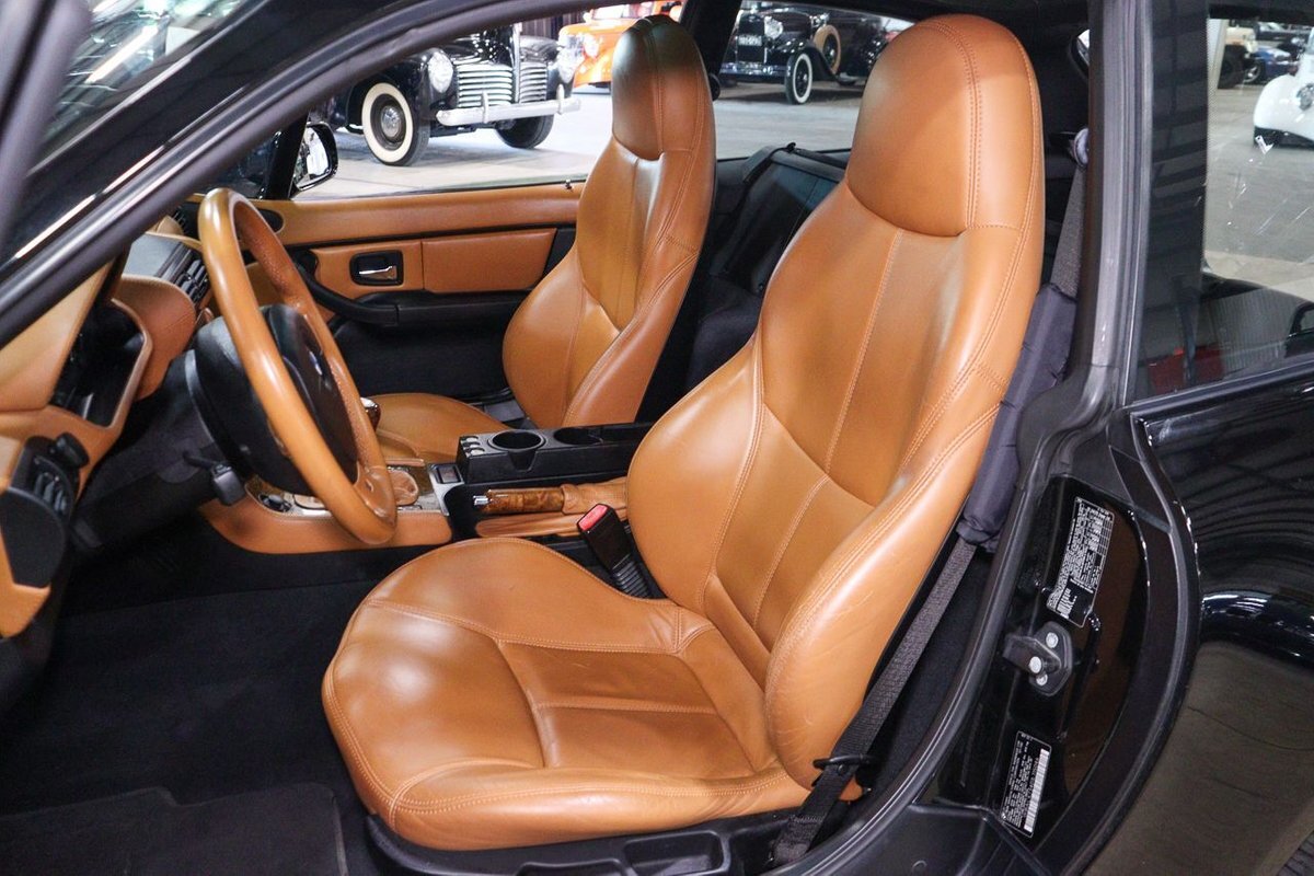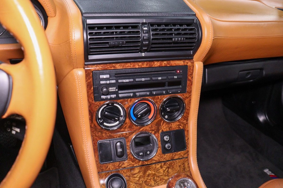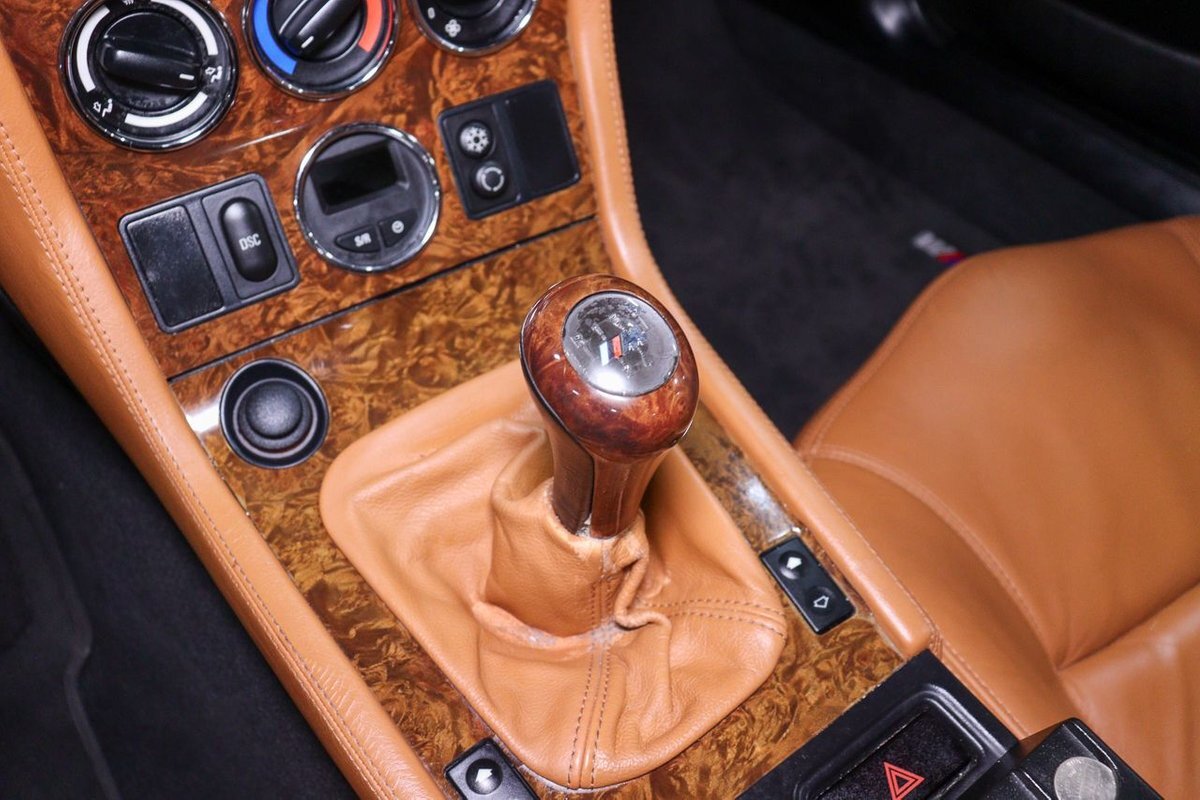 Step inside, and you're greeted by a luxurious blend of black and tan extended leather, with Walnut Leather (02SY) enveloping the seats, upper dash, and door panels. The contrast of black lower portions adds a sense of refinement, while Maple wood accents on the center stack and shifter bring a touch of warmth. The cabin is well-appointed with features such as air conditioning, M-logo floor mats, and a Harman-Kardon sound system that fills the space with rich audio quality. Behind the leather-wrapped steering wheel, you'll find a 155-mph speedometer, a 7k-rpm tachometer, and gauges that keep you informed of fuel and coolant levels.