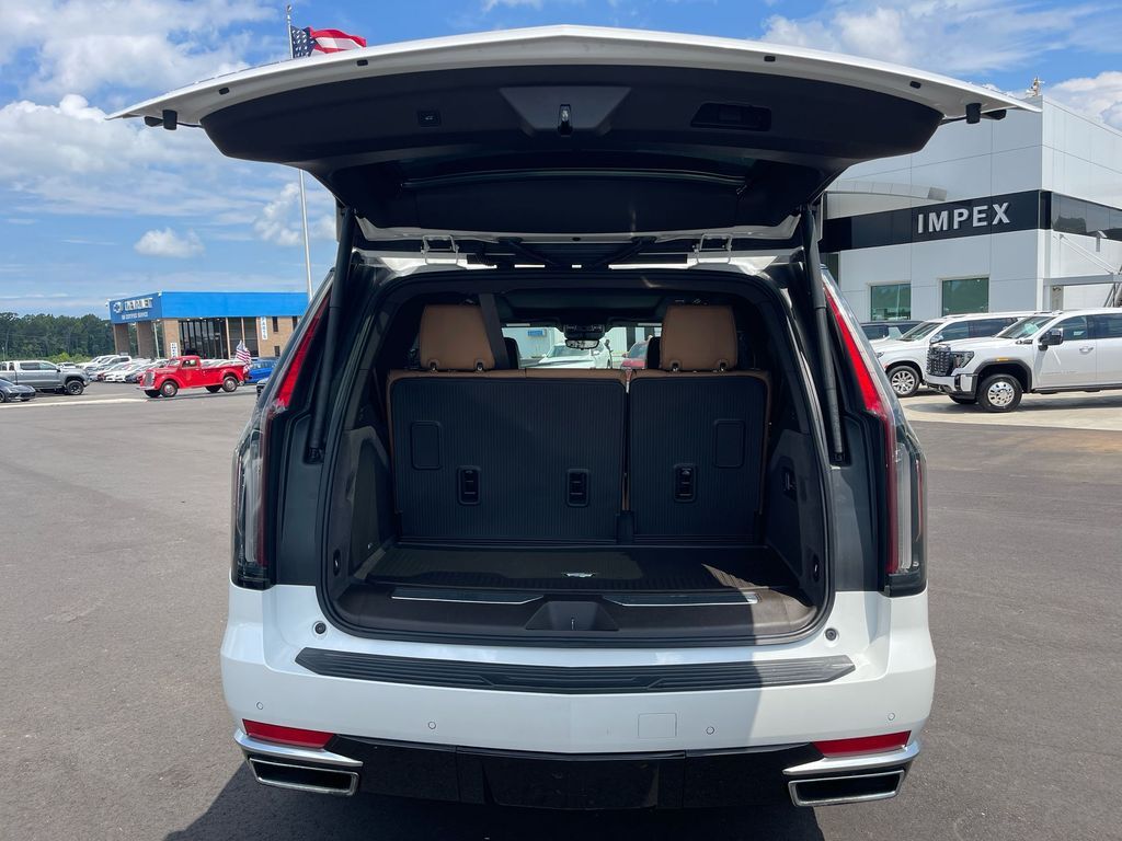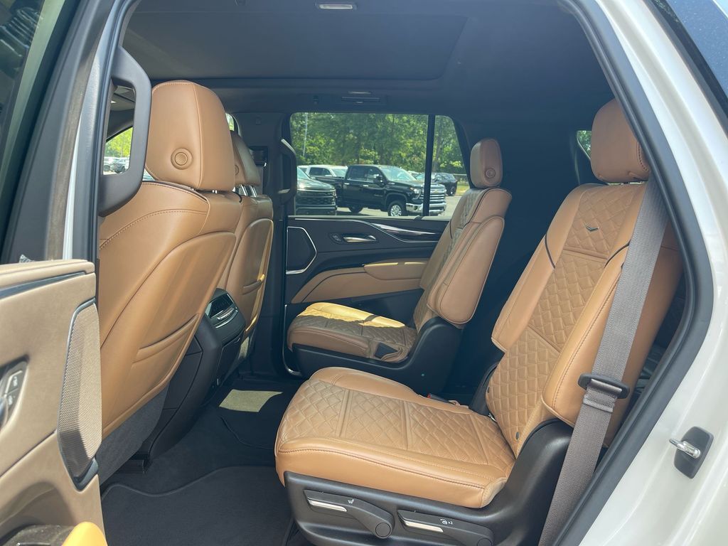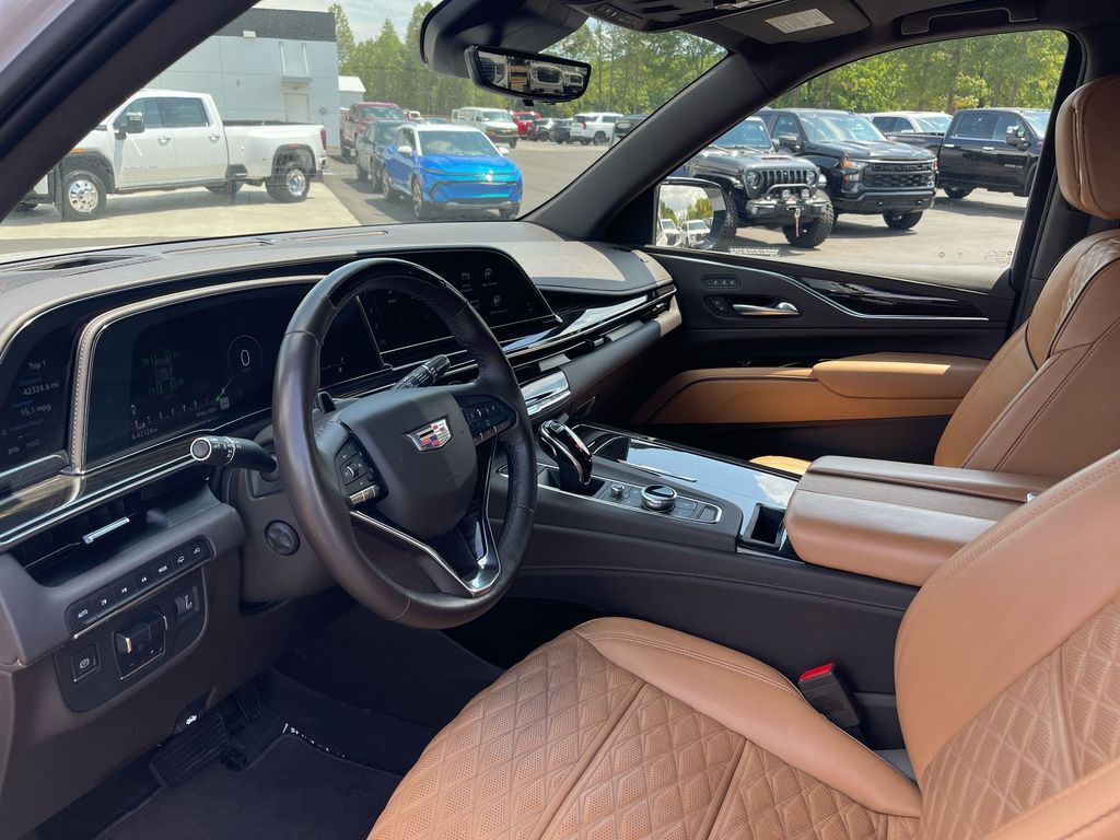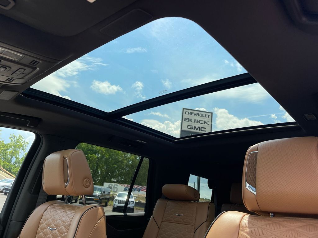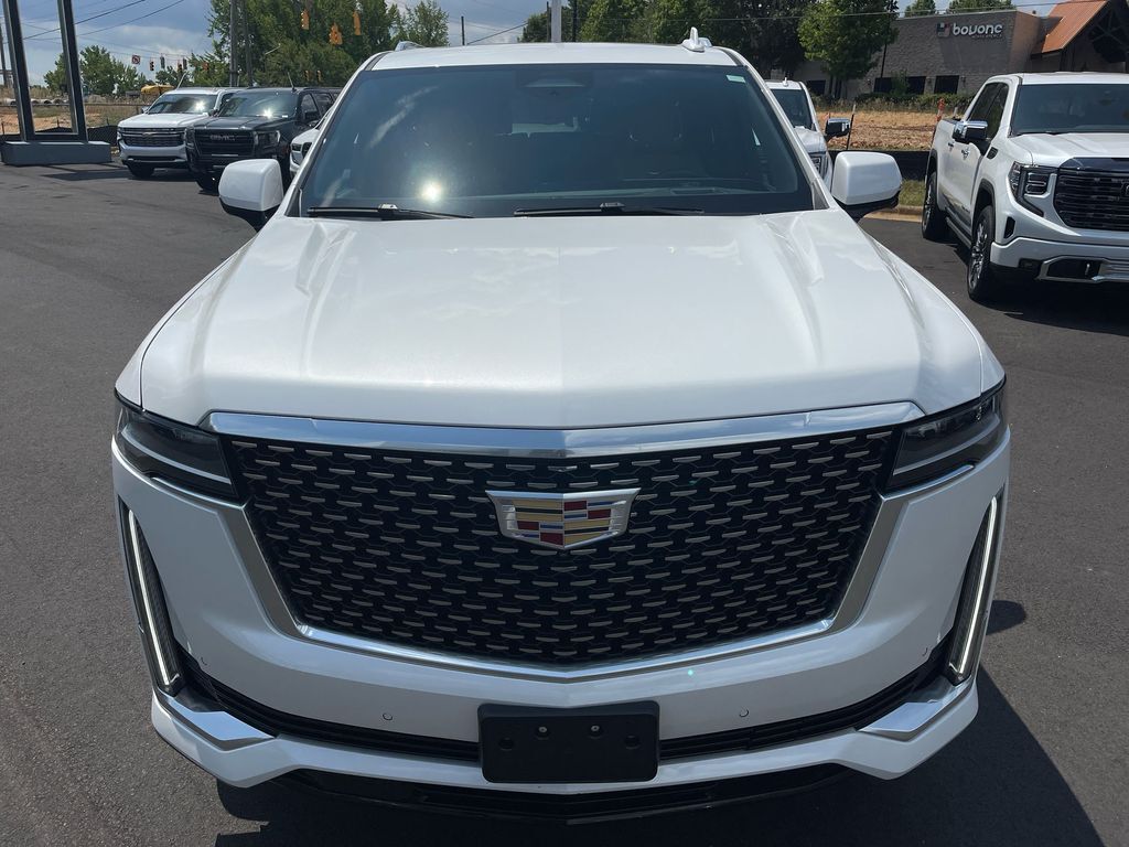 THIS VEHICLE INCLUDES THE FOLLOWING FEATURES AND OPTIONS: Escalade Premium Luxury 4WD, 16.9 Diagonal OLED Infotainment Screen, 19 Speakers, 2-Presets Memory For Driver Seat Adjuster, 3.23 Axle Ratio, 3rd row seats: split-bench, 4-Way Power Driver Lumbar Seat Adjuster, 4-Way Power Front Passenger Lumbar Seat Adjuster, 4-Wheel Disc Brakes, 8-Way Power Driver Seat Adjuster, 8-Way Power Front Passenger Seat Adjuster, ABS brakes, Air Conditioning, Air Ionizer, AKG Studio 19-Speaker Audio System, Alloy wheels, AM/FM radio: SiriusXM with 360L, Apple CarPlay/Android Auto, Audio memory, Auto High-beam Headlights, Auto tilt-away steering wheel, Auto-dimming door mirrors, Automatic Emergency Braking, Automatic temperature control, Brake assist, Bumpers: body-color, Compass, Cruise Control, Delay-off headlights, Door Lock & Latch Shields, Driver door bin, Driver vanity mirror, Dual front impact airbags, Dual front side impact airbags, Electronic Cruise Control w/Set & Resume Speed, Electronic Stability Control, Emergency communication system: OnStar and Cadillac connected services capable, Enhanced Automatic Parking Assist, Four wheel independent suspension, Front anti-roll bar, Front Bucket Seats, Front Center Armrest w/Storage, Front dual zone A/C, Front reading lights, Fully automatic headlights, Garage door transmitter, Glass Breakage Sensor, HD Radio, Heads-Up Display, Heated & Ventilated Driver & Front Passenger Seats, Heated door mirrors, Heated Driver & Front Passenger Seats, Heated front seats, Heated rear seats, Heated steering wheel, Illuminated entry, Lane Change Alert w/Side Blind Zone Alert, Lane Keep Assist w/Lane Departure Warning, Leather Seating Surfaces w/Mini-Chevron Perf Inserts, Leather steering wheel, Low tire pressure warning, Mechanical Limited-Slip Differential, Memory seat, Occupant sensing airbag, Outside temperature display, Overhead airbag, Overhead console, Panic alarm, Passenger door bin, Passenger vanity mirror, Power door mirrors, Power driver seat, Power Liftgate, Power moonroof, Power Panoramic Tilt-Sliding Sunroof, Power passenger seat, Power steering, Power windows, Premium Smooth Ride Suspension, Radio data system, Radio: AM/FM/SiriusXM w/Navigation, Rain sensing wipers, Rear air conditioning, Rear anti-roll bar, Rear Camera Mirror, Rear Camera Mirror Washer, Rear Cross Traffic Alert, Rear reading lights, Rear window defroster, Rear window wiper, Reconfigurable Full-Color Head-Up Display, Remote keyless entry, Roof rack: rails only, Running Board Assist Steps, Security system, SiriusXM w/360L, Split folding rear seat, Spoiler, Steering wheel memory, Steering wheel mounted audio controls, Tachometer, Teen Driver, Telescoping steering wheel, Theft-Deterrent Alarm System, Tilt steering wheel, Traction control, Trip computer, Turn signal indicator mirrors, Variably intermittent wipers, Vehicle Inclination Sensor, Vehicle Interior Movement Sensor, Ventilated front seats, Voltmeter, Wheels: 22 14-Spoke Alloy w/Polished Finish, and Wireless Apple CarPlay/Wireless Android Auto.