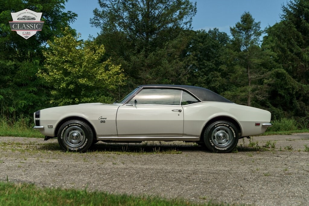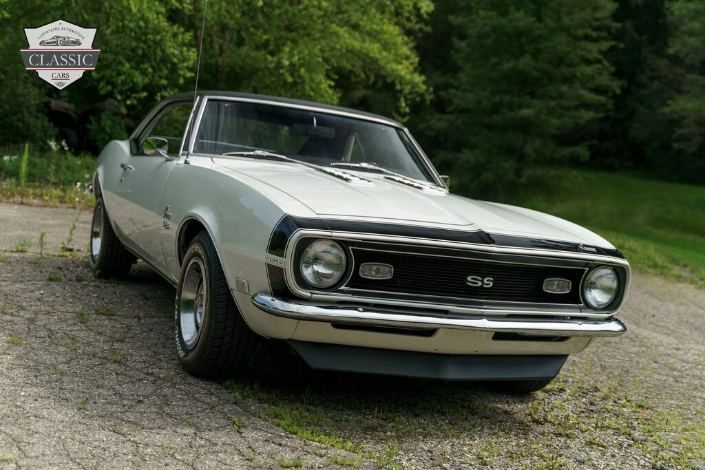 Check out this beautiful 1968 Camaro SS! This Muscle car spent 50 years with the originalowner in New Jersey before being brought up to Michigan. Finished in the factory Ermine White over a Black interior. Power comes from the born with 350ci V8 paired with an Automatic Transmission! Completing the look of this Camaro is the iconic SS Ice Tray Hood, Black Painted Nose Stripe, Chin Spoiler, Dual Exhaust, and Rally wheels wrapped in new Raised White Letter tires!