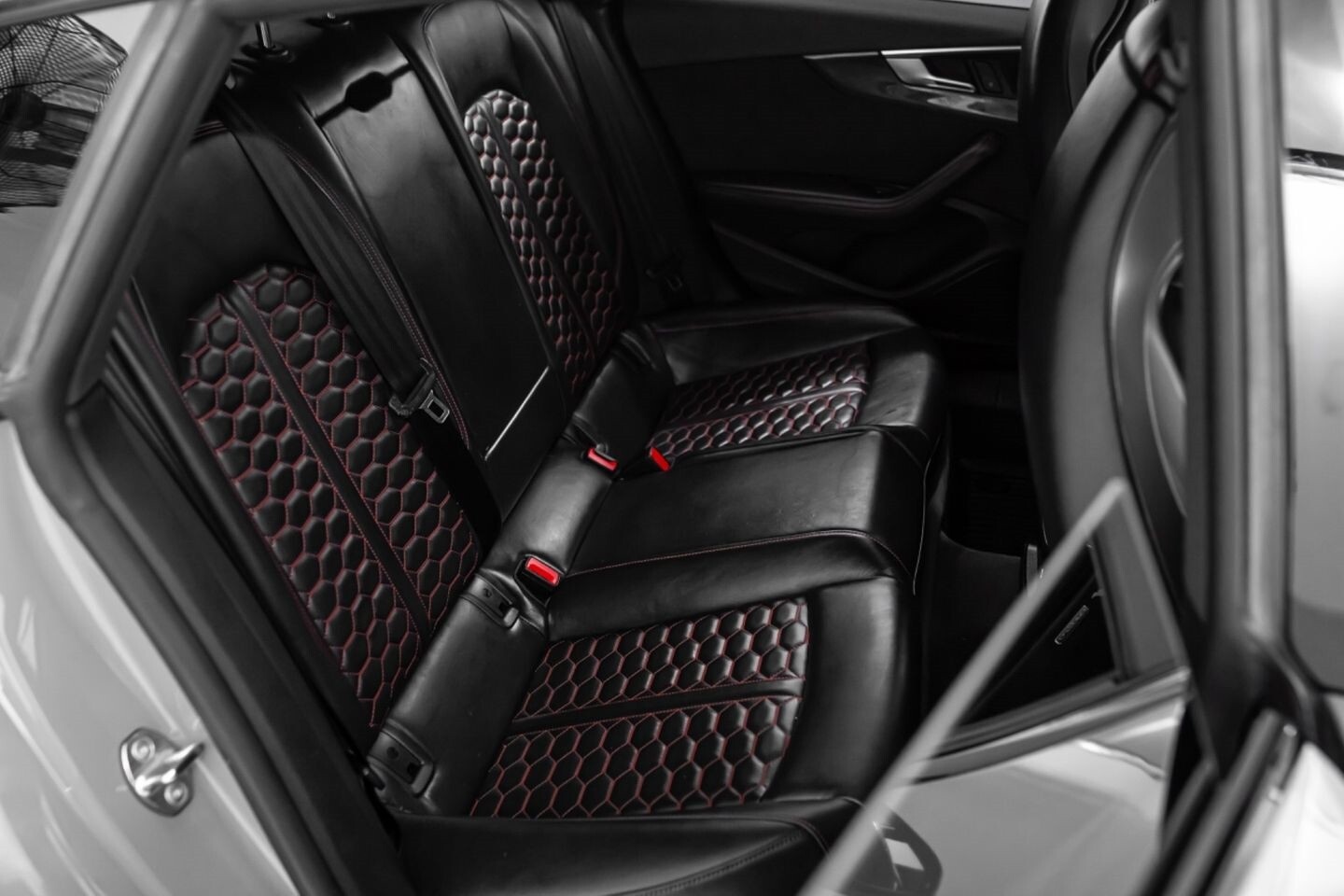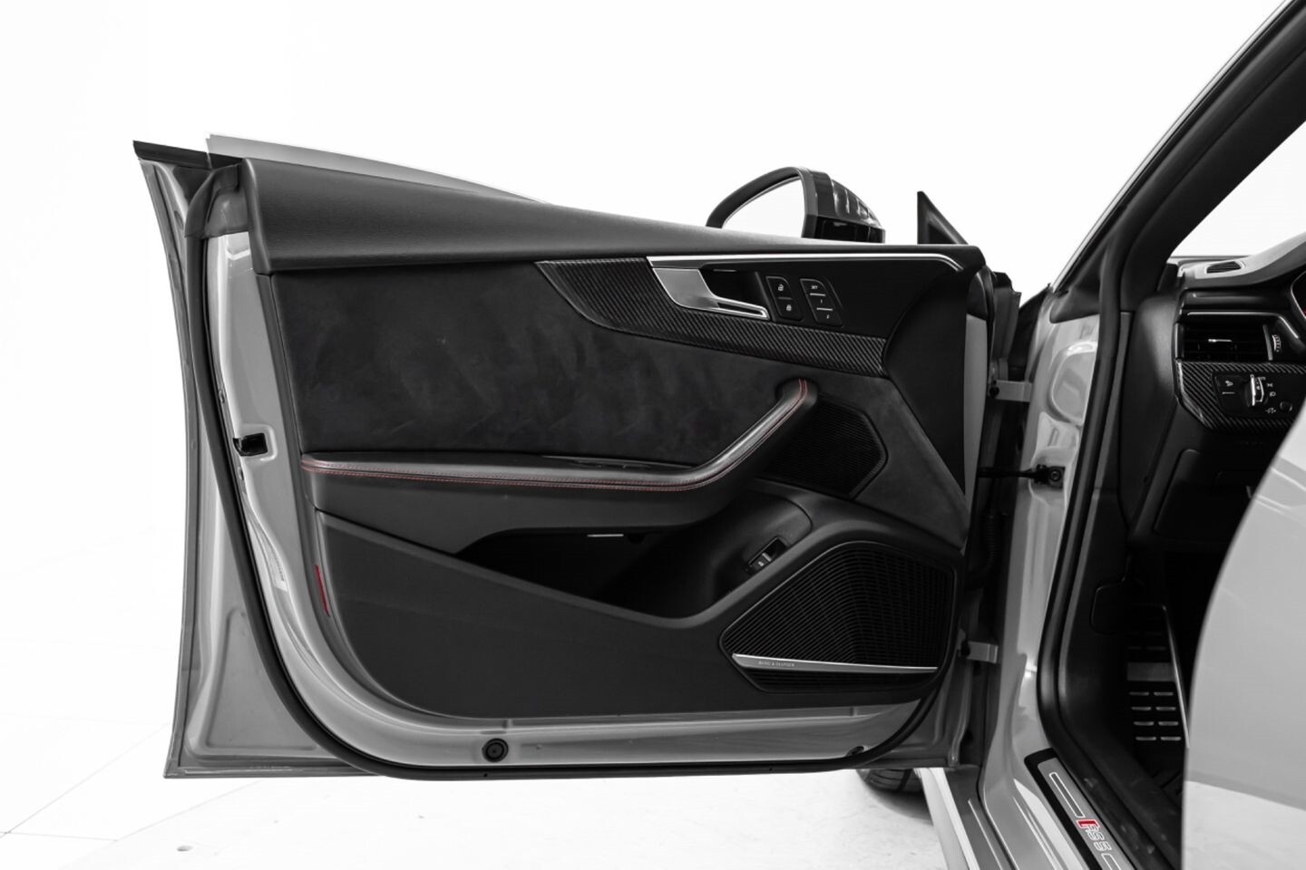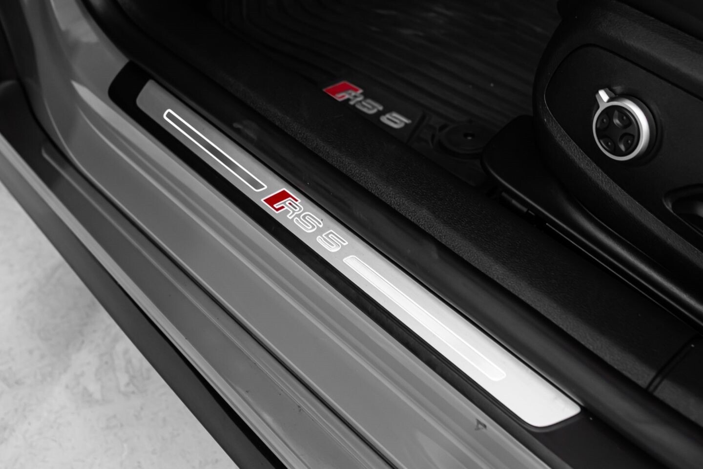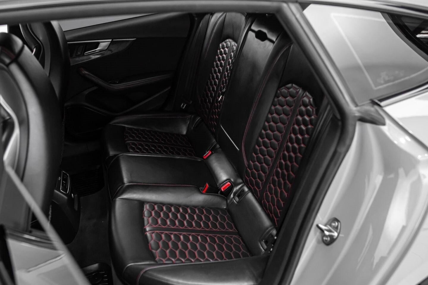 This 2019 Audi RS 5 Sportback is a luxury sedan that seamlessly blends performance and style. Under the hood is a twin-turbocharged 2.9-liter V6 engine that produces 444 horsepower and 443 lb-ft of torque, all of which is sent through a eight-speed automatic transmission to all four wheels. This sleek machine comes equipped with 20" Vorsteiner Technik Performance wheels and is finished in Nardo Gray, an iconic color that enhances the car's aggressive lines. In the interior, this RS 5 offers heated leather "RS"-embossed sport seats, a forged carbon fiber and suede "RS" steering wheel, carbon fiber paddle shifters, carbon fiber interior trim pieces, multi-zone climate controls, selectable drive modes, a digital instrument cluster with multiple displays, and an infotainment system with Bluetooth, navigation, phone connectivity, AUX, Apple CarPlay, Android Auto, and a backup camera, truly making this car the complete package.