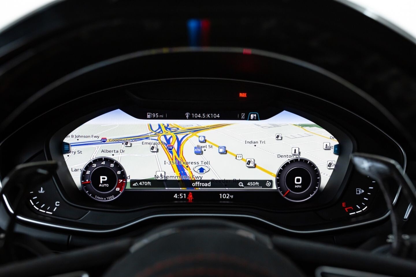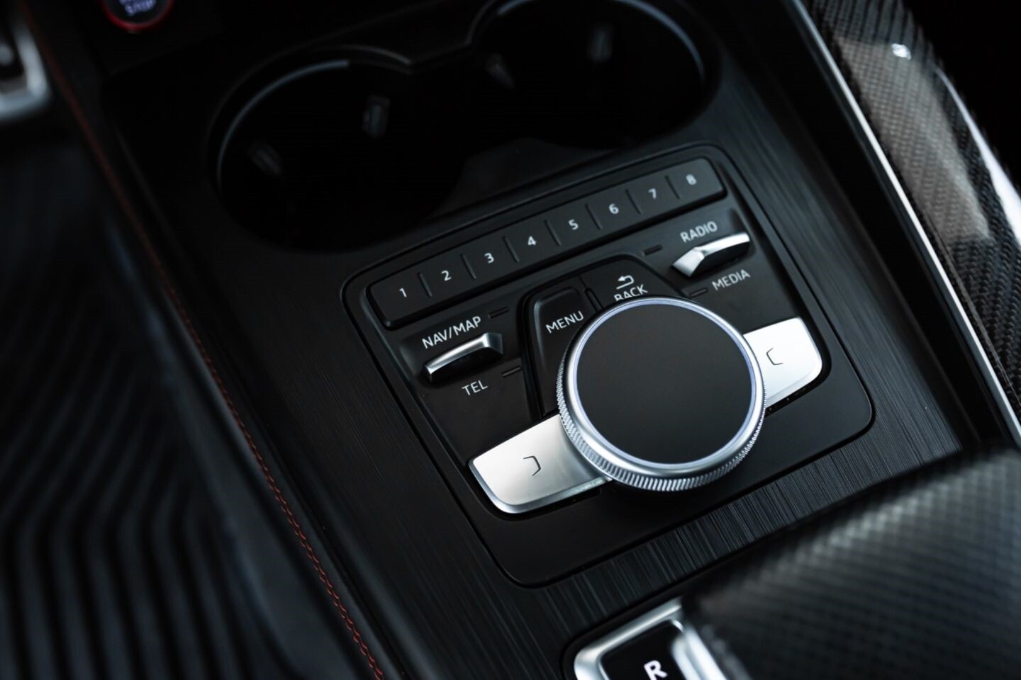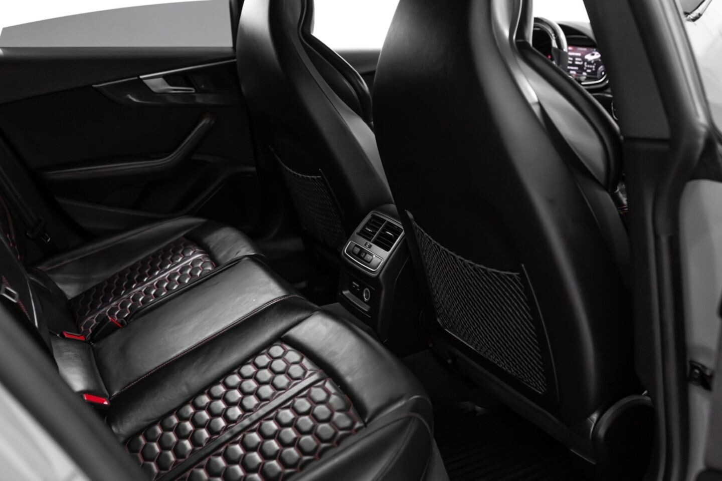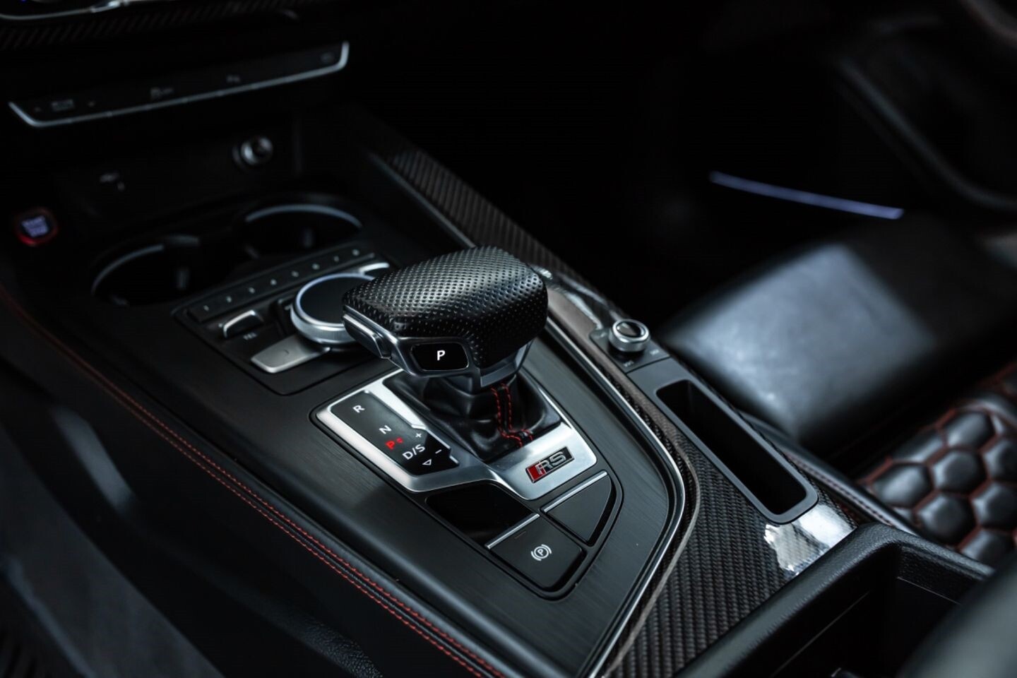 This 2019 Audi RS 5 Sportback is a luxury sedan that seamlessly blends performance and style. Under the hood is a twin-turbocharged 2.9-liter V6 engine that produces 444 horsepower and 443 lb-ft of torque, all of which is sent through a eight-speed automatic transmission to all four wheels. This sleek machine comes equipped with 20" Vorsteiner Technik Performance wheels and is finished in Nardo Gray, an iconic color that enhances the car's aggressive lines. In the interior, this RS 5 offers heated leather "RS"-embossed sport seats, a forged carbon fiber and suede "RS" steering wheel, carbon fiber paddle shifters, carbon fiber interior trim pieces, multi-zone climate controls, selectable drive modes, a digital instrument cluster with multiple displays, and an infotainment system with Bluetooth, navigation, phone connectivity, AUX, Apple CarPlay, Android Auto, and a backup camera, truly making this car the complete package.