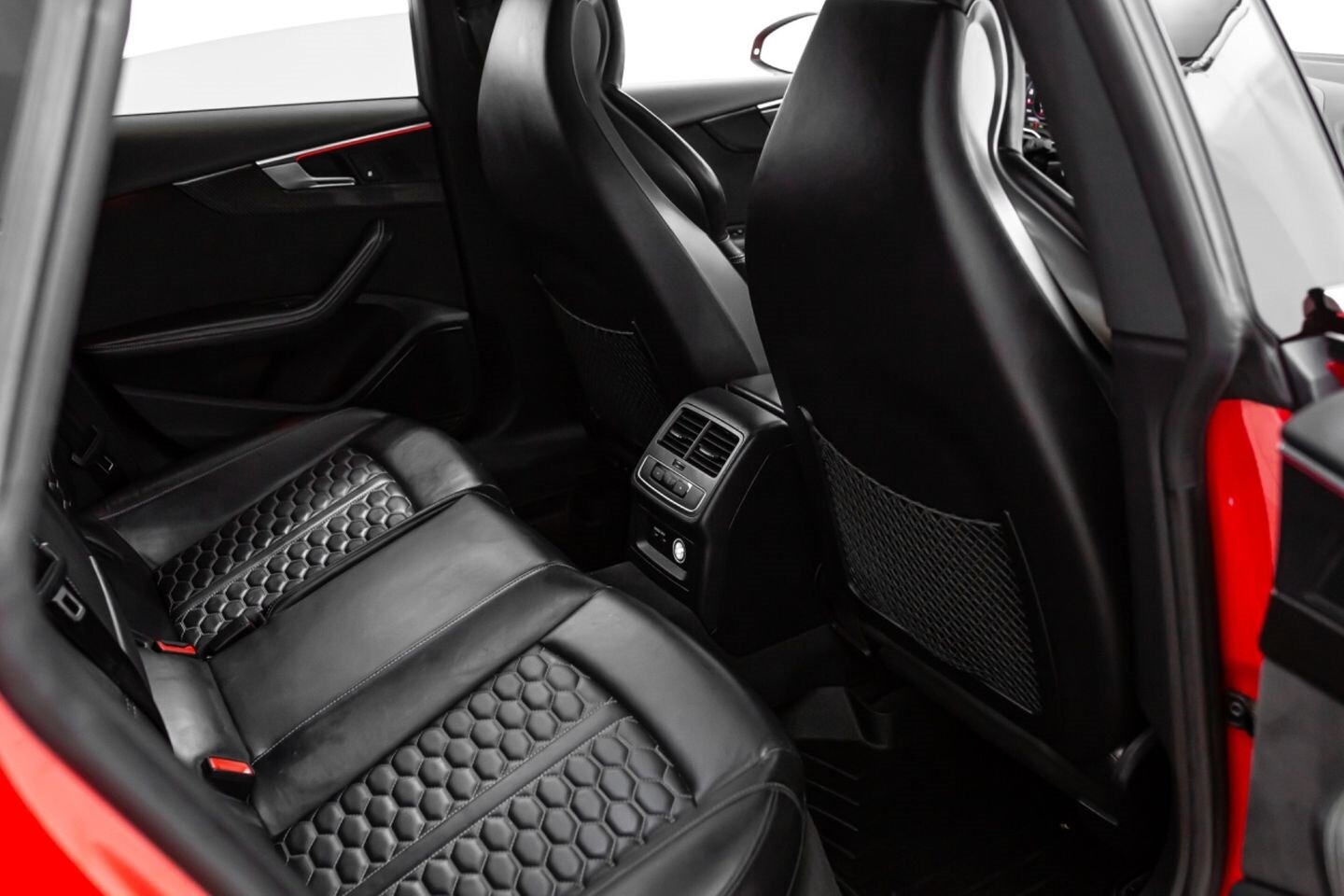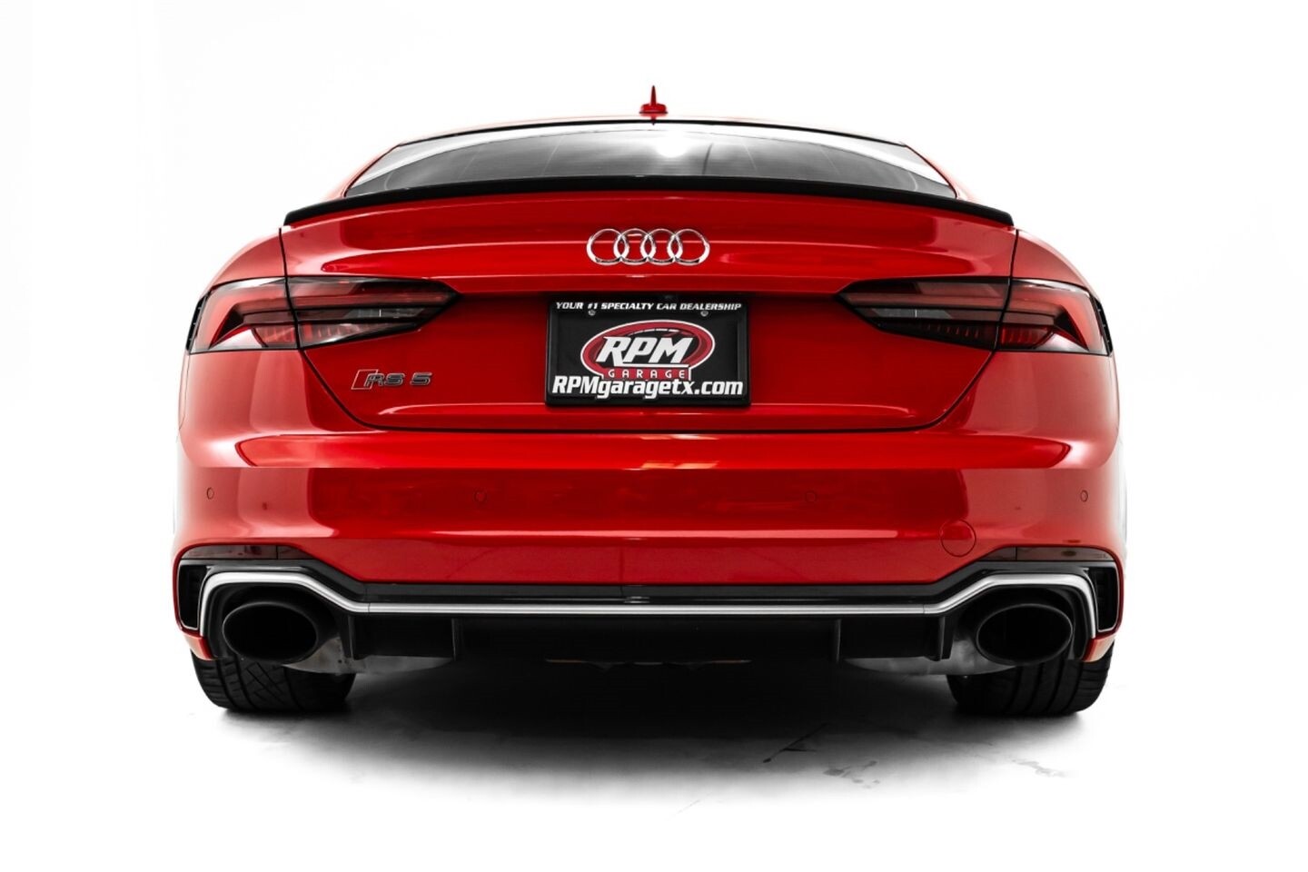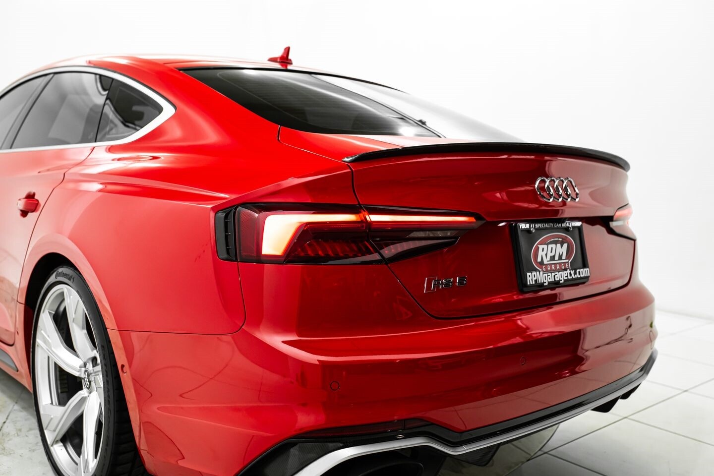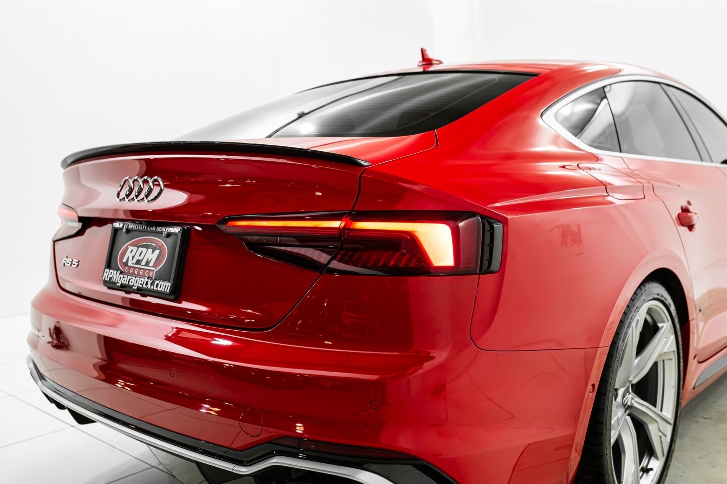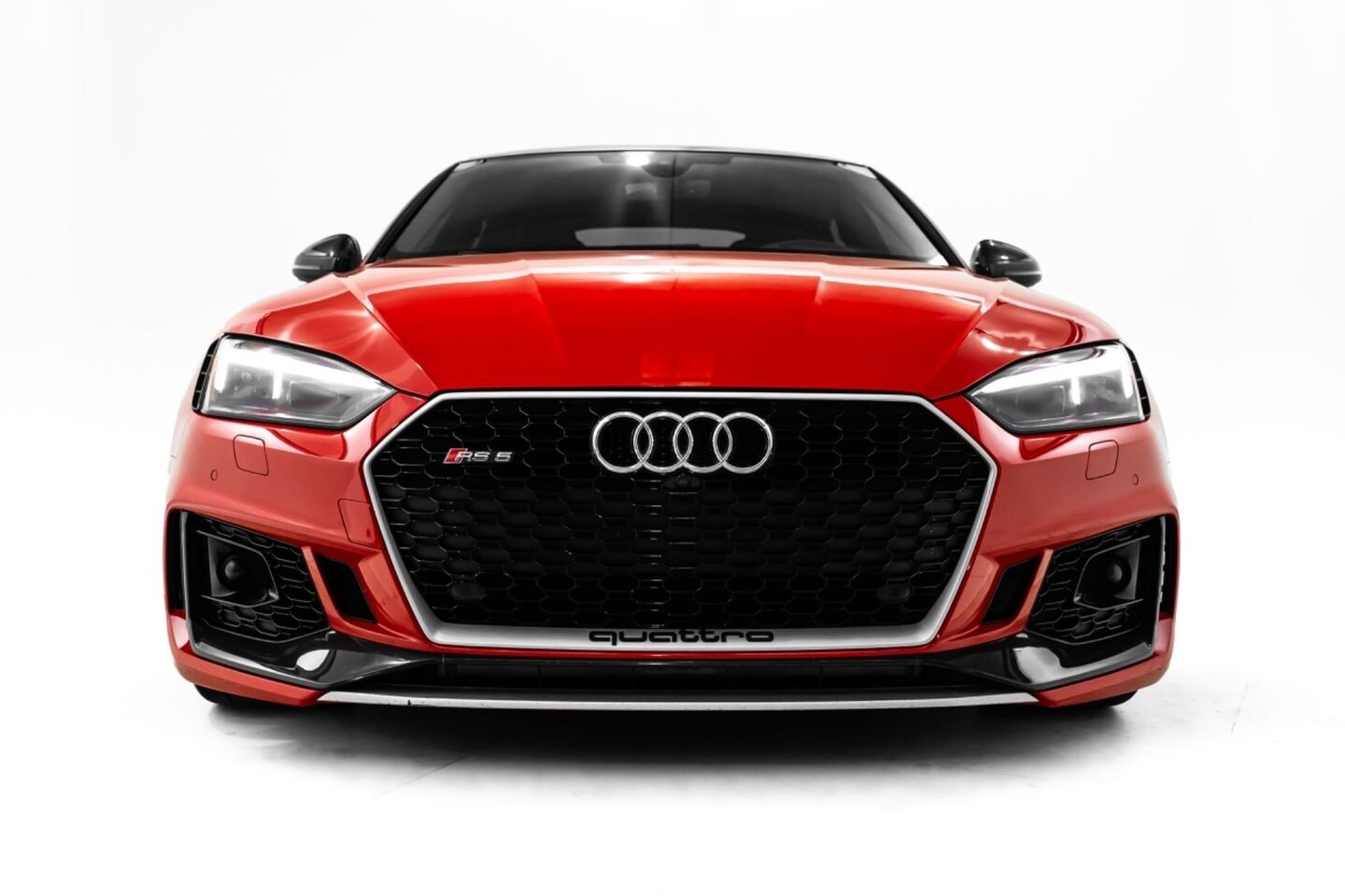 This 2019 Audi RS5 Sportback is a sporty sedan that provides a seamless blend of performance and luxury. Under the hood is a twin-turbocharged 2.9-liter V6 engine that produces 444 horsepower and 443 lb-ft of torque, all of which is sent through a eight-speed automatic transmission to all four wheels. This well-proportioned vehicle comes equipped with 20" OEM Audi wheels and is finished in Misano Red, a rare color that is sure to turn heads. The exterior of this Audi has been made even more aggressive with the addition of several carbon fiber pieces, which include a carbon fiber ducktail lip spoiler, carbon fiber mirror caps, carbon fiber front aero, and carbon fiber side skirt trim, tinted windows. In the interior, this RS5 offers "RS"-embossed heated leather bucket seats, a digital gauge cluster with multiple displays, selectable drive modes, multi-zone A/C, a heads-up display, carbon fiber interior trim, a flat-bottomed leather "RS" steering wheel, and an infotainment system with Bluetooth, navigation, apps, phone connectivity, AM/FM radio, AUX, a 360-degree camera, a backup camera, and a front-facing camera, truly making this car the complete package.