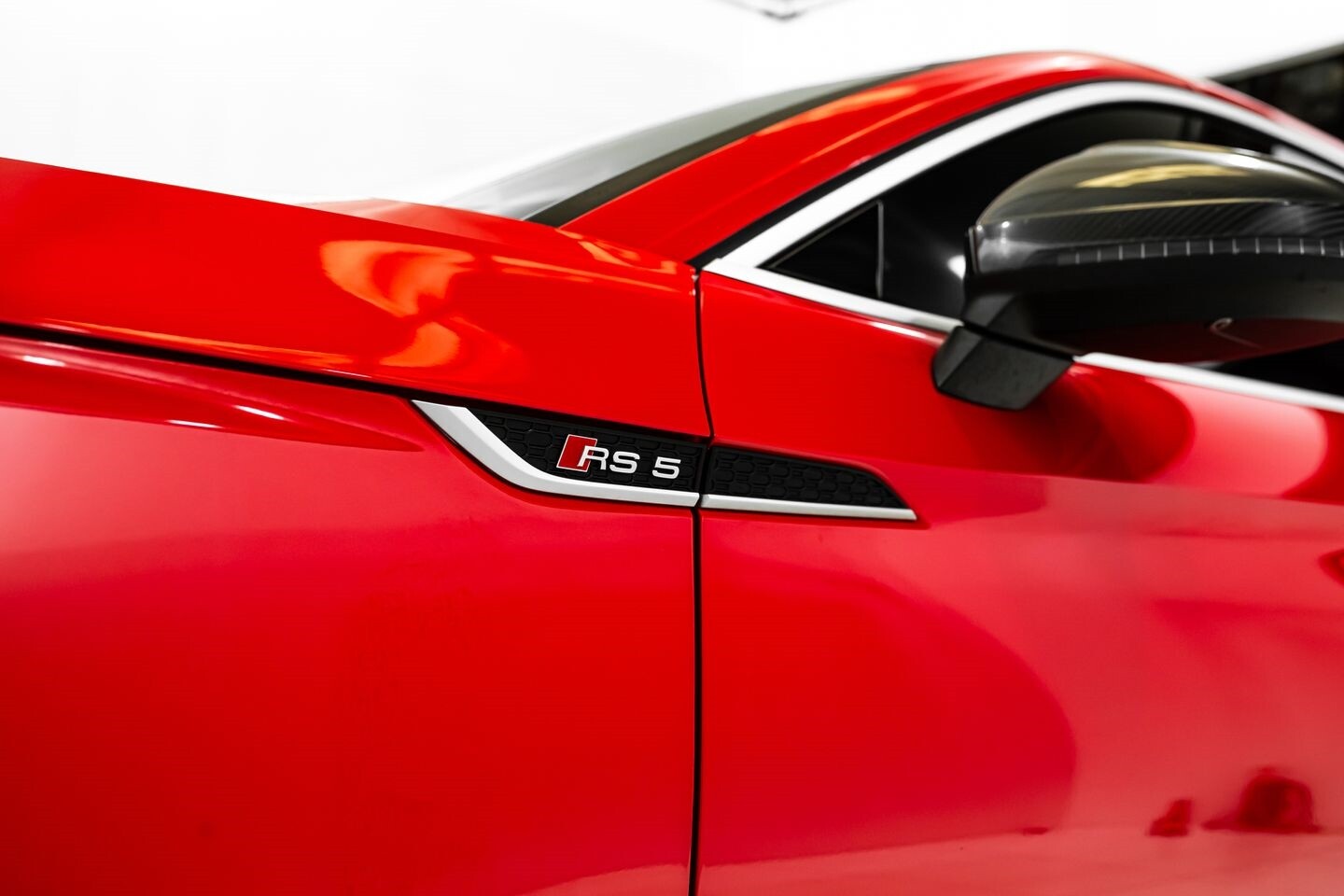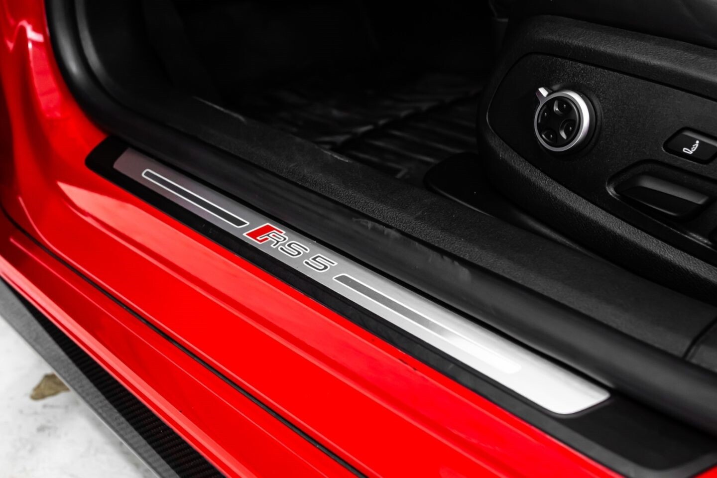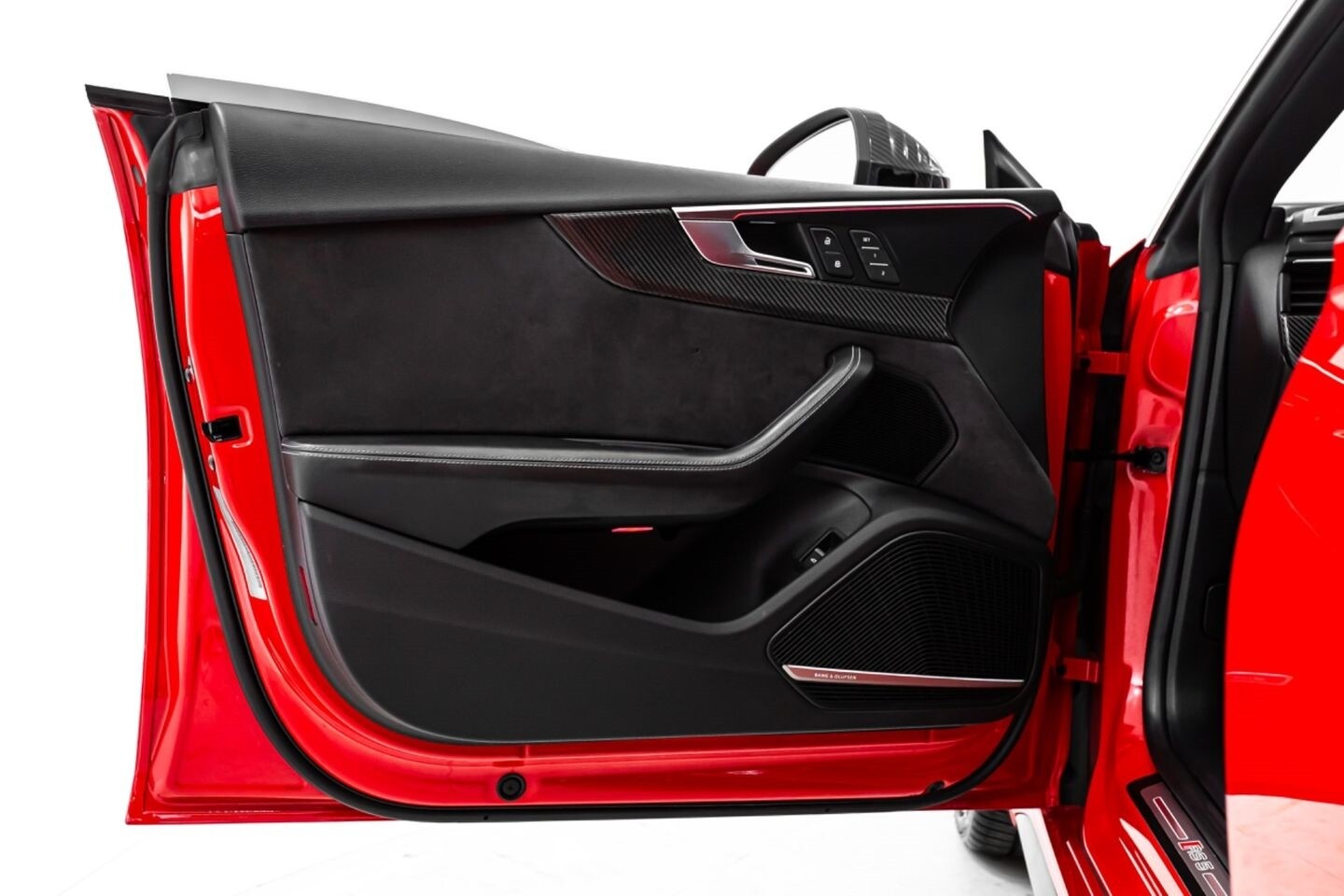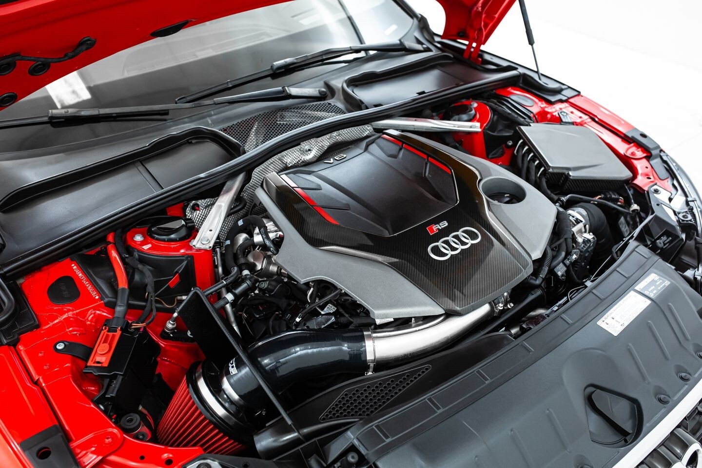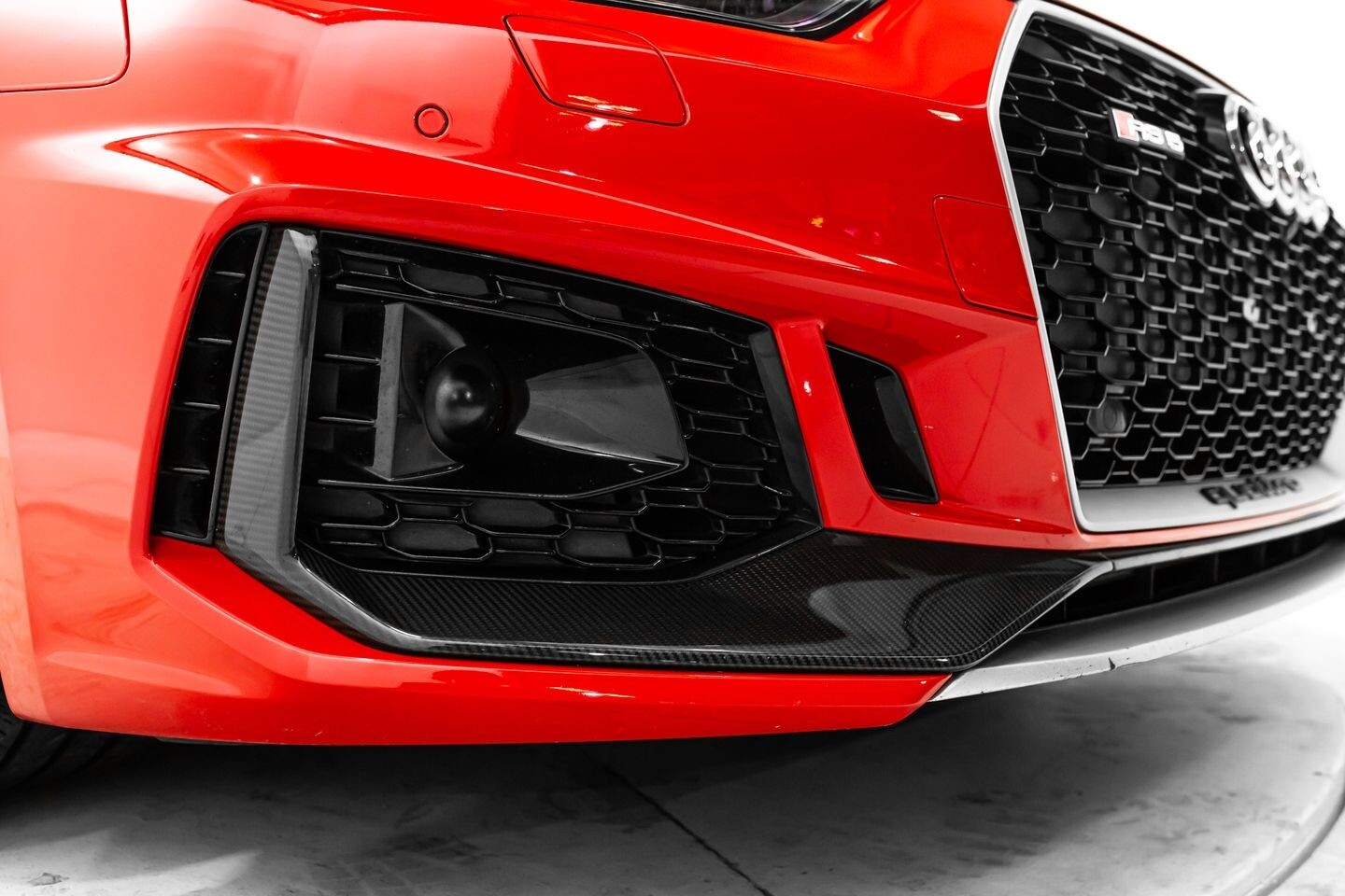 This 2019 Audi RS5 Sportback is a sporty sedan that provides a seamless blend of performance and luxury. Under the hood is a twin-turbocharged 2.9-liter V6 engine that produces 444 horsepower and 443 lb-ft of torque, all of which is sent through a eight-speed automatic transmission to all four wheels. This well-proportioned vehicle comes equipped with 20" OEM Audi wheels and is finished in Misano Red, a rare color that is sure to turn heads. The exterior of this Audi has been made even more aggressive with the addition of several carbon fiber pieces, which include a carbon fiber ducktail lip spoiler, carbon fiber mirror caps, carbon fiber front aero, and carbon fiber side skirt trim, tinted windows. In the interior, this RS5 offers "RS"-embossed heated leather bucket seats, a digital gauge cluster with multiple displays, selectable drive modes, multi-zone A/C, a heads-up display, carbon fiber interior trim, a flat-bottomed leather "RS" steering wheel, and an infotainment system with Bluetooth, navigation, apps, phone connectivity, AM/FM radio, AUX, a 360-degree camera, a backup camera, and a front-facing camera, truly making this car the complete package.