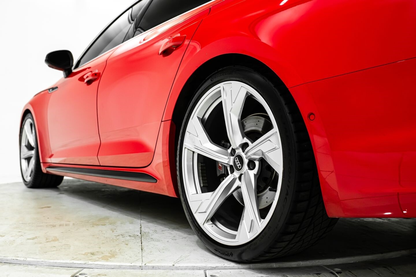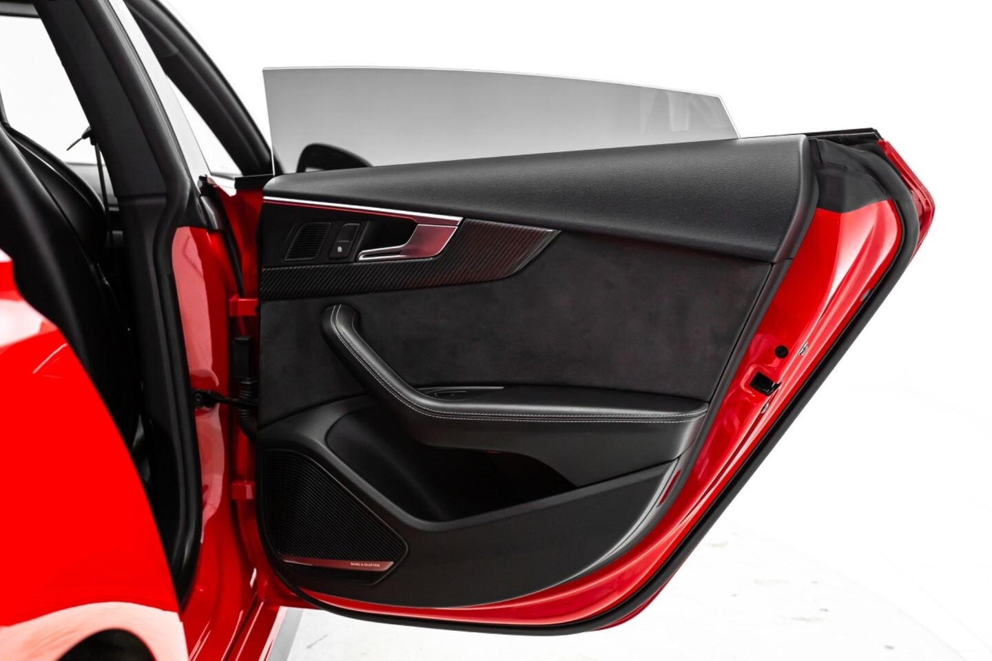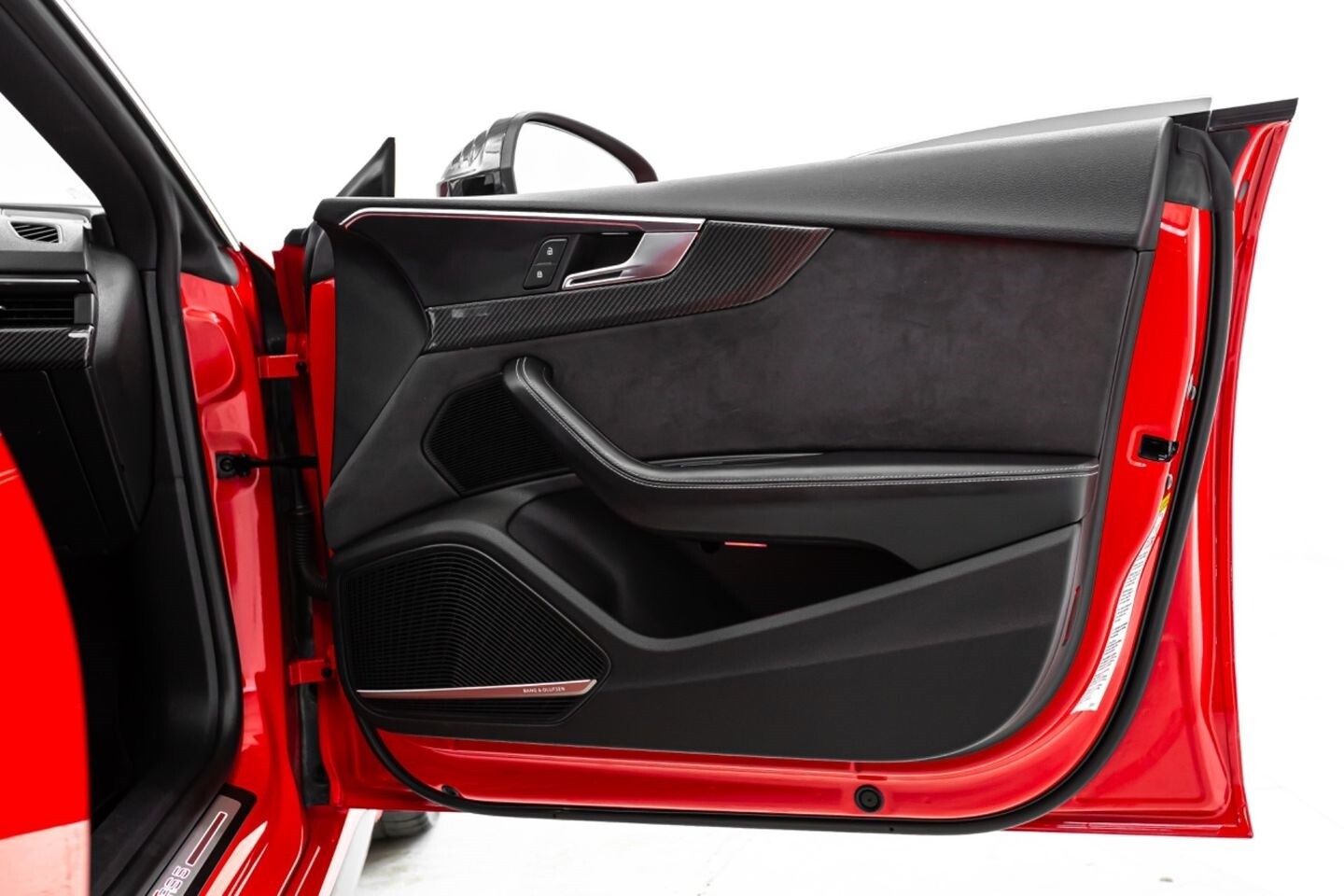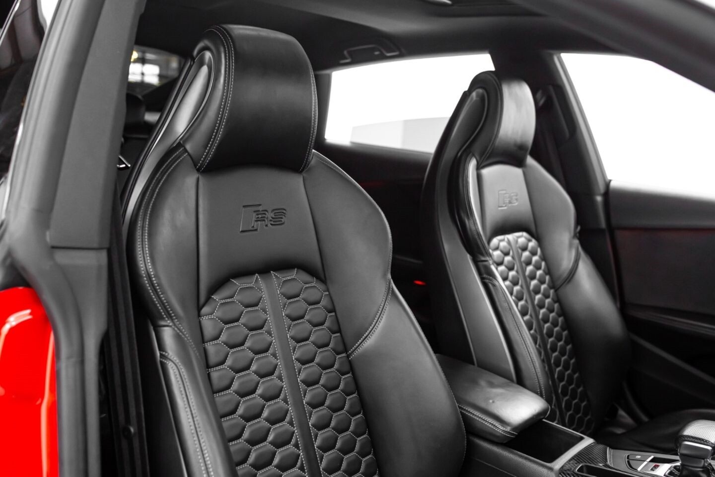 This 2019 Audi RS5 Sportback is a sporty sedan that provides a seamless blend of performance and luxury. Under the hood is a twin-turbocharged 2.9-liter V6 engine that produces 444 horsepower and 443 lb-ft of torque, all of which is sent through a eight-speed automatic transmission to all four wheels. This well-proportioned vehicle comes equipped with 20" OEM Audi wheels and is finished in Misano Red, a rare color that is sure to turn heads. The exterior of this Audi has been made even more aggressive with the addition of several carbon fiber pieces, which include a carbon fiber ducktail lip spoiler, carbon fiber mirror caps, carbon fiber front aero, and carbon fiber side skirt trim, tinted windows. In the interior, this RS5 offers "RS"-embossed heated leather bucket seats, a digital gauge cluster with multiple displays, selectable drive modes, multi-zone A/C, a heads-up display, carbon fiber interior trim, a flat-bottomed leather "RS" steering wheel, and an infotainment system with Bluetooth, navigation, apps, phone connectivity, AM/FM radio, AUX, a 360-degree camera, a backup camera, and a front-facing camera, truly making this car the complete package.