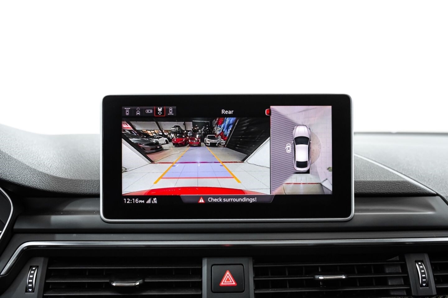 BLUETOOTH, NAVIGATION, APPS, PHONE CONNECTIVITY, AM/FM RADIO, AUX, A 360-DEGREE CAMERA, A BACKUP CAMERA, AND A FRONT-FACING CAMERA