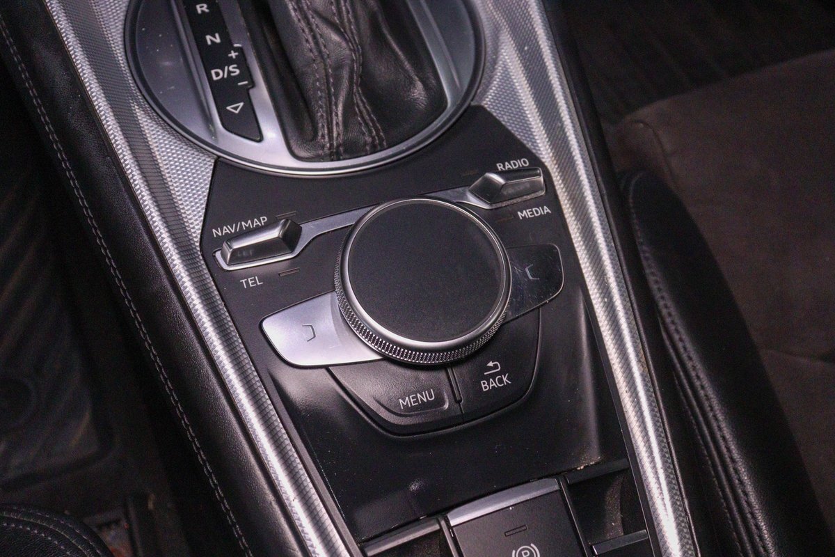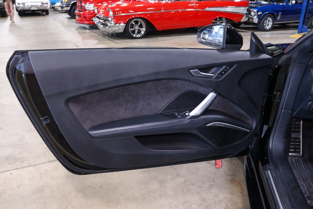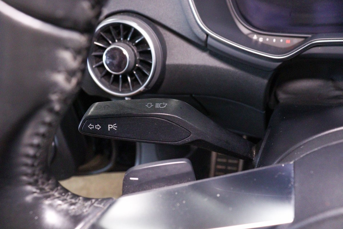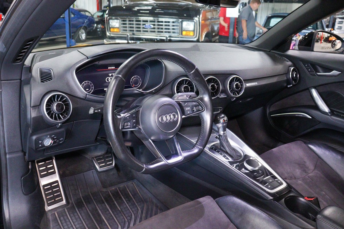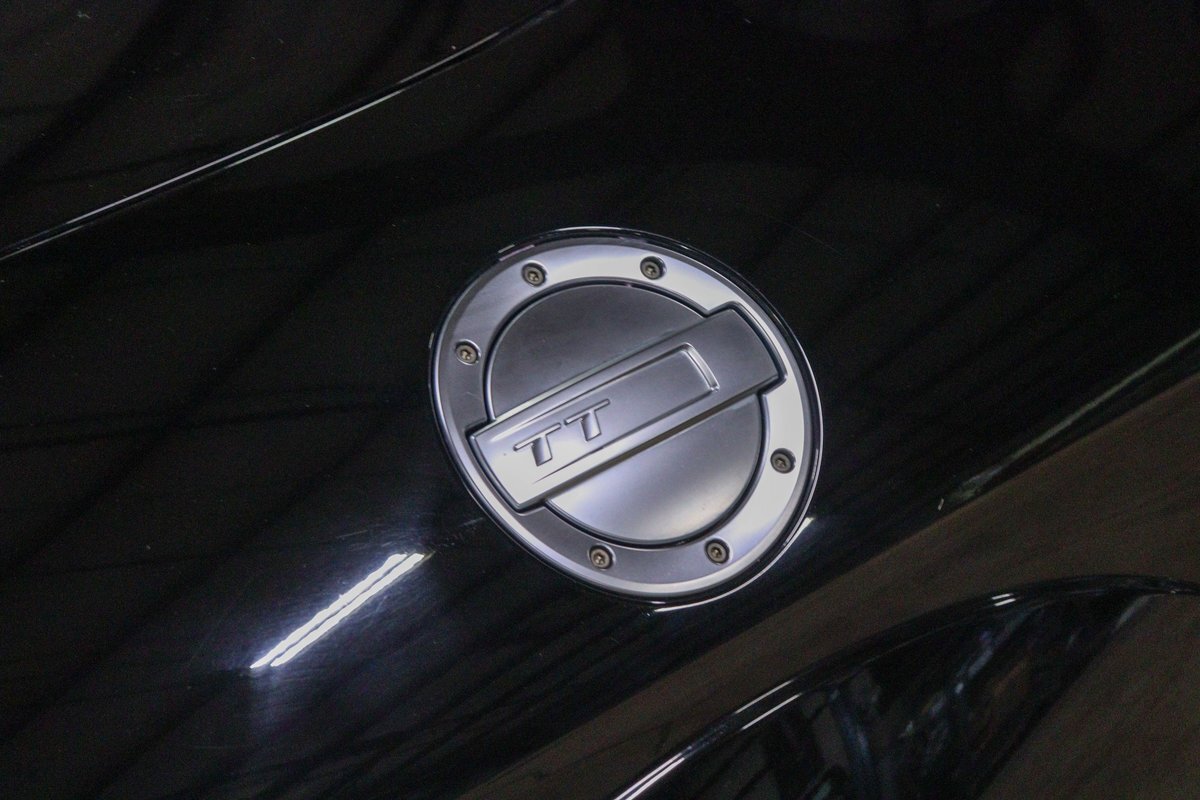 The Audi TT's sleek black exterior is perfectly complemented by a luxurious black leather interior. The interior boasts a cutting-edge digital gauge cluster that enhances both the aesthetic and functionality of the cabin, providing drivers with a fully immersive driving environment. This model's design is not only about visual appeal but also about enhancing the driving experience through technological integration.