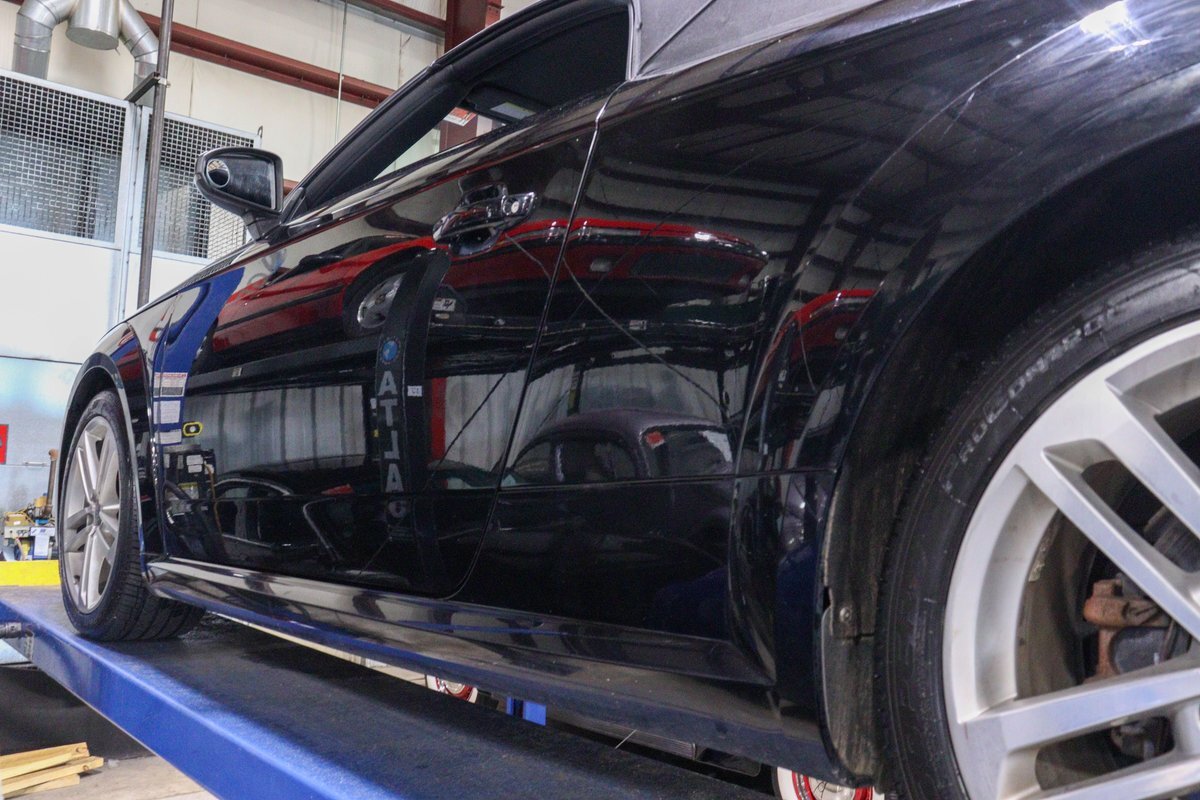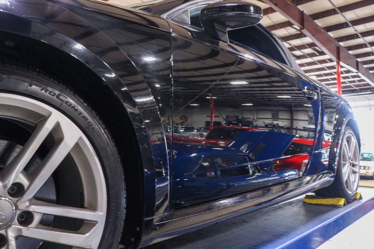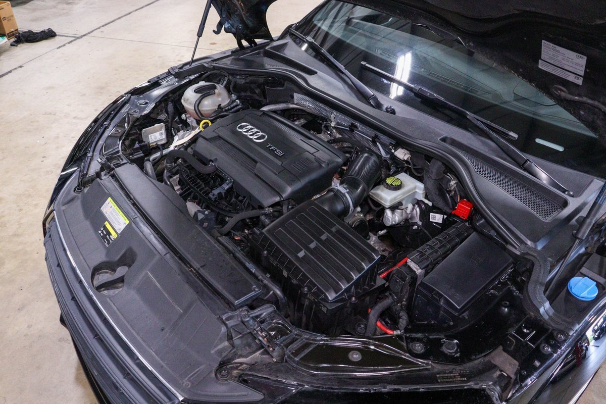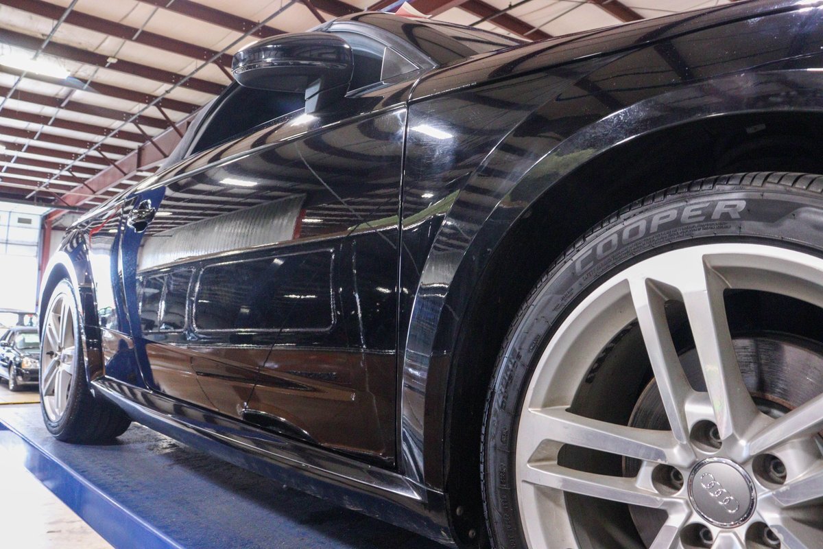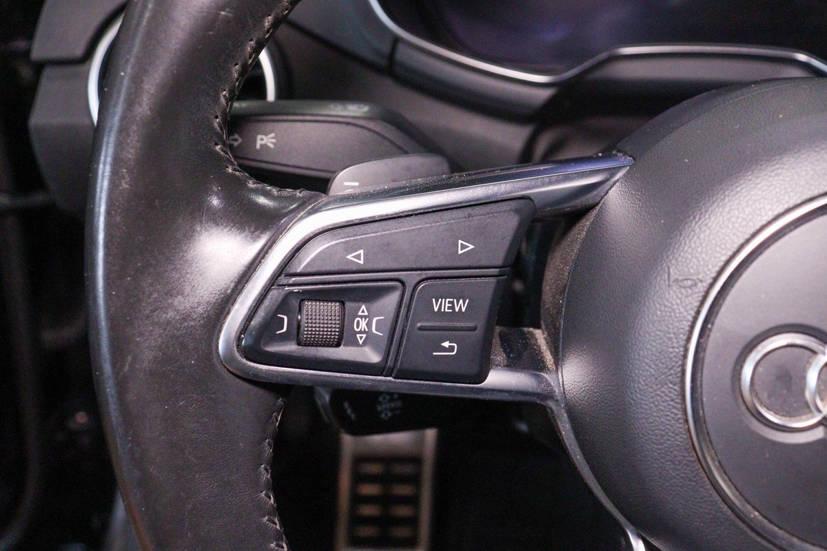 The Audi TT's sleek black exterior is perfectly complemented by a luxurious black leather interior. The interior boasts a cutting-edge digital gauge cluster that enhances both the aesthetic and functionality of the cabin, providing drivers with a fully immersive driving environment. This model's design is not only about visual appeal but also about enhancing the driving experience through technological integration.