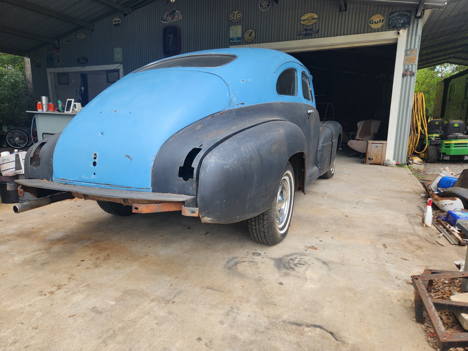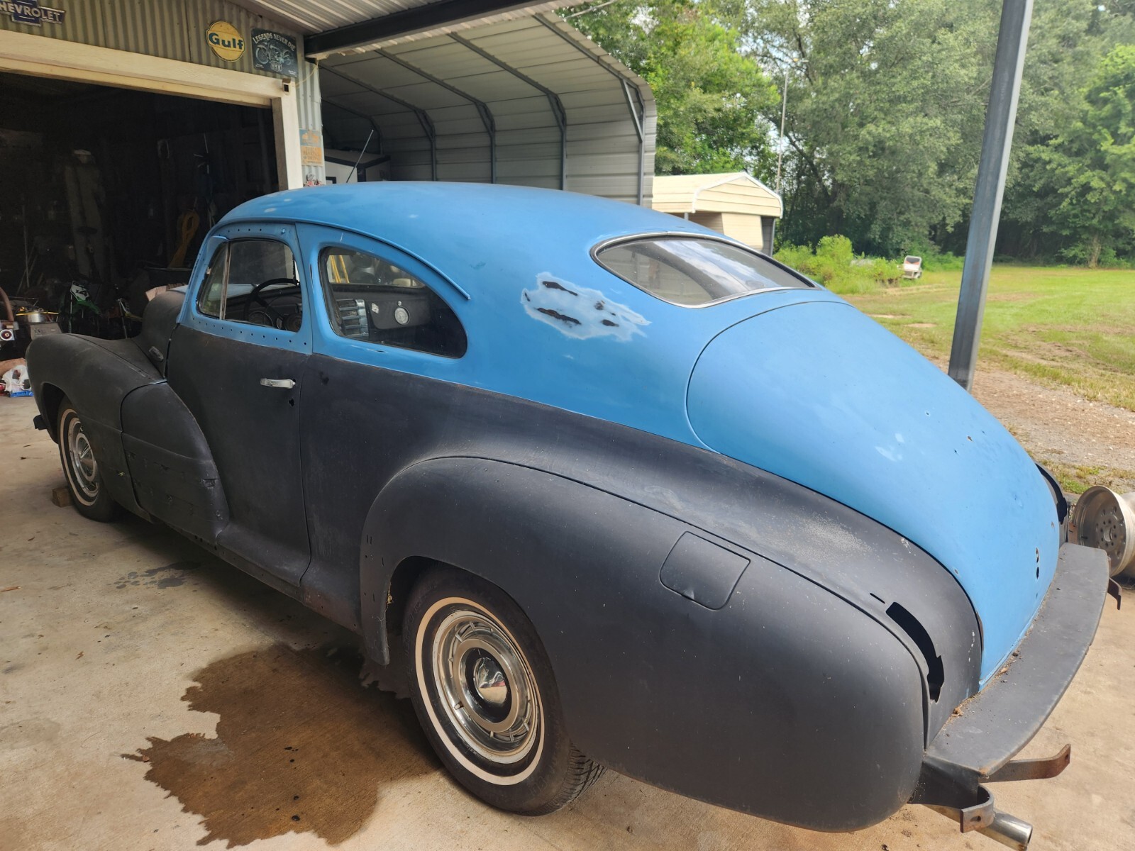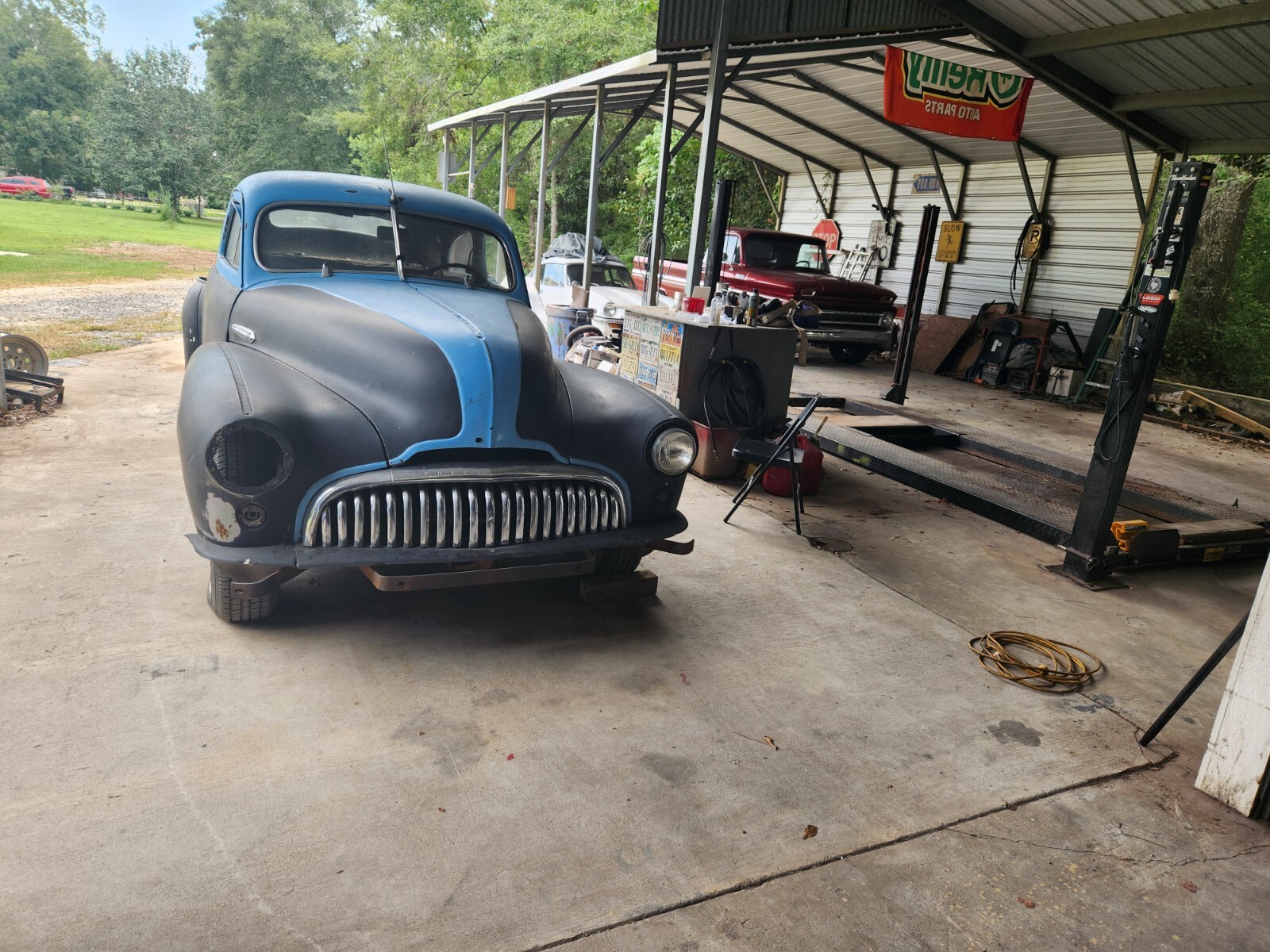 1947 Buick Special (Ebay doesn,t recognize Special in description, (this is the shorter wheelbase than roadmaster ) 2 door fastback inline 8 cylinder 3 speed standard runs great, body is 95% solid except trunk pan, drives good except needs brake work. car has been in indoor storage for over twenty years. Bought for my sister ( Born in 1947) but restoration never completed (brother in law passed away). Seats removed due to rodent damage (Useable but chewed). Hole in passenger floor board is for auxiliary heater (still have if requested ) Indash heater still in place (wow, dual heaters!!). Hubcaps are 1960 Buick Invicta. Have front bumper, possibly missing rear bumper (comes with a rear bumper, but maybe from a chevrolet?. some trim pieces may be missing. I am just beginning to clean out my brother in laws large shop which is STUFFED with old cars and parts. Other cars to sell , about 20 to 30 cars in pasture. Help!! Good car to restore, street rod, fix brakes and drive as is.... I build cars and can work out additional upgrades if needed (Brakes / etc.) ...Thanks ...I can discuss delivery after purchase.