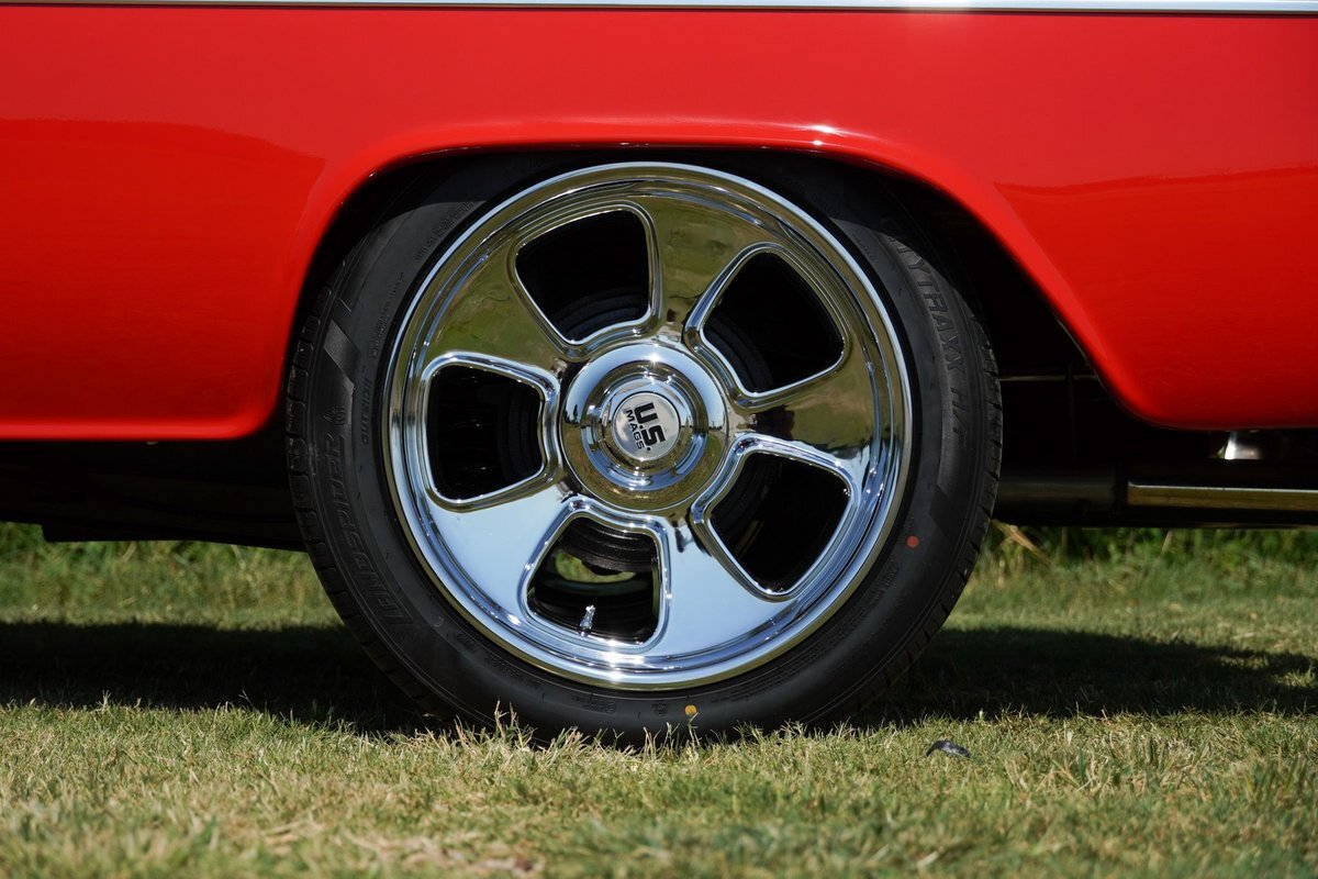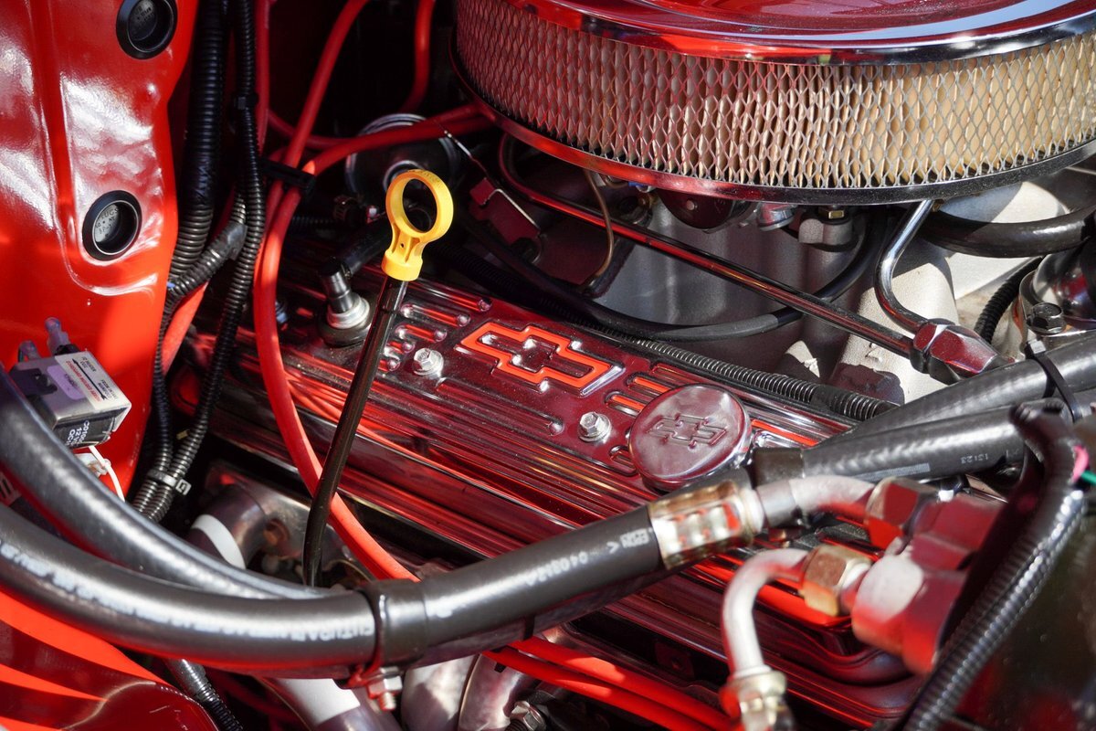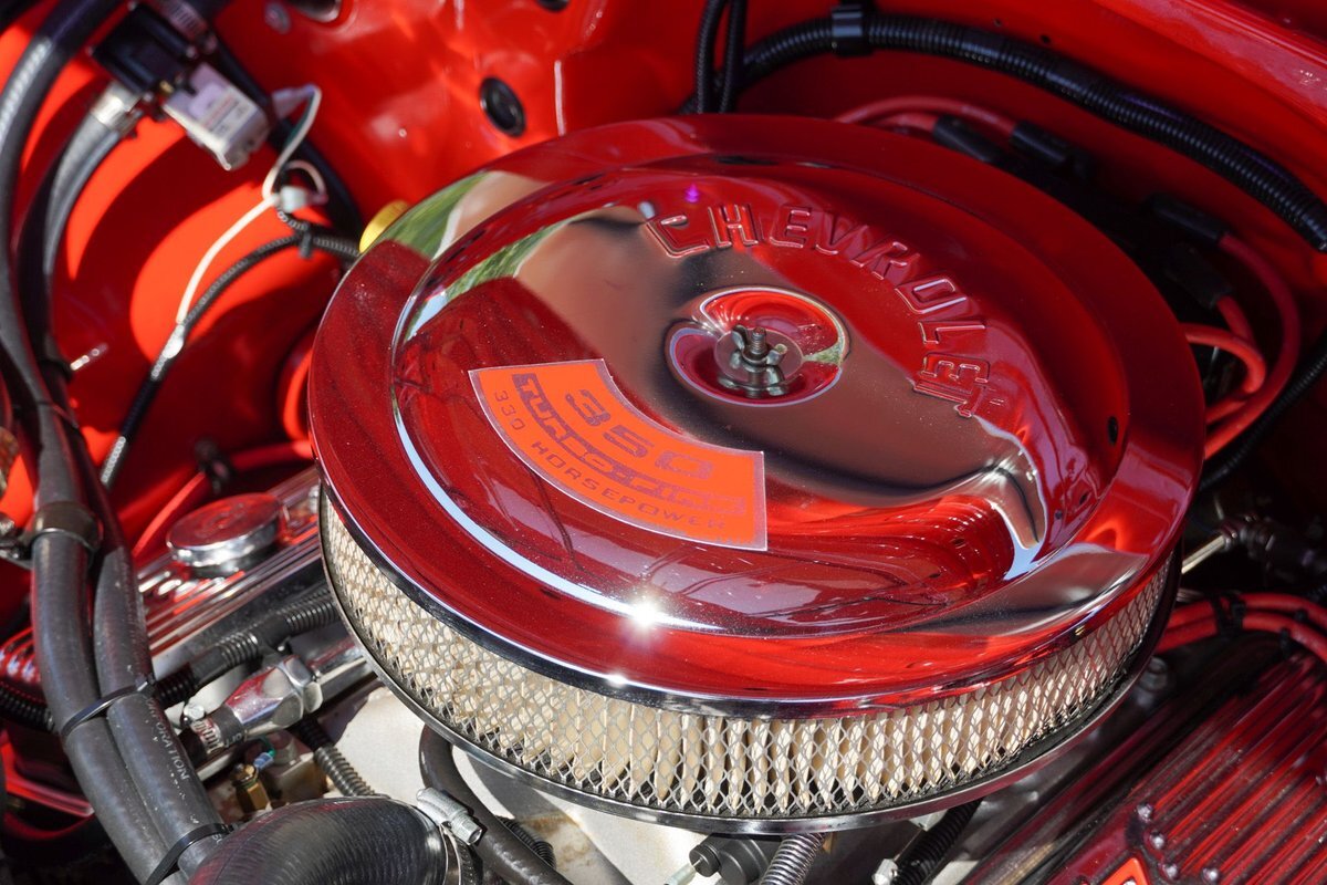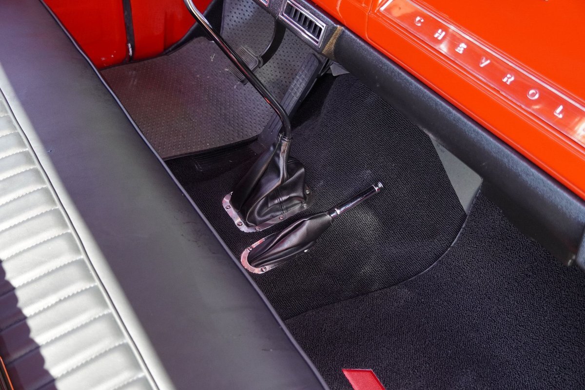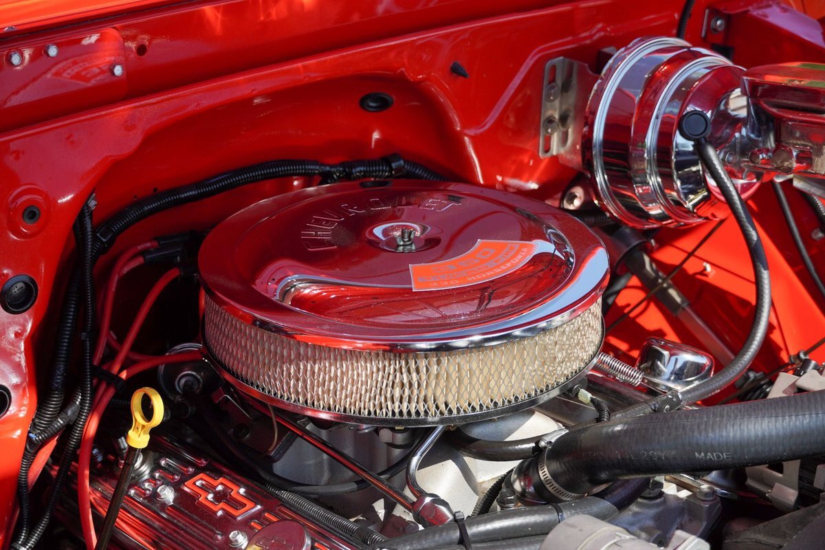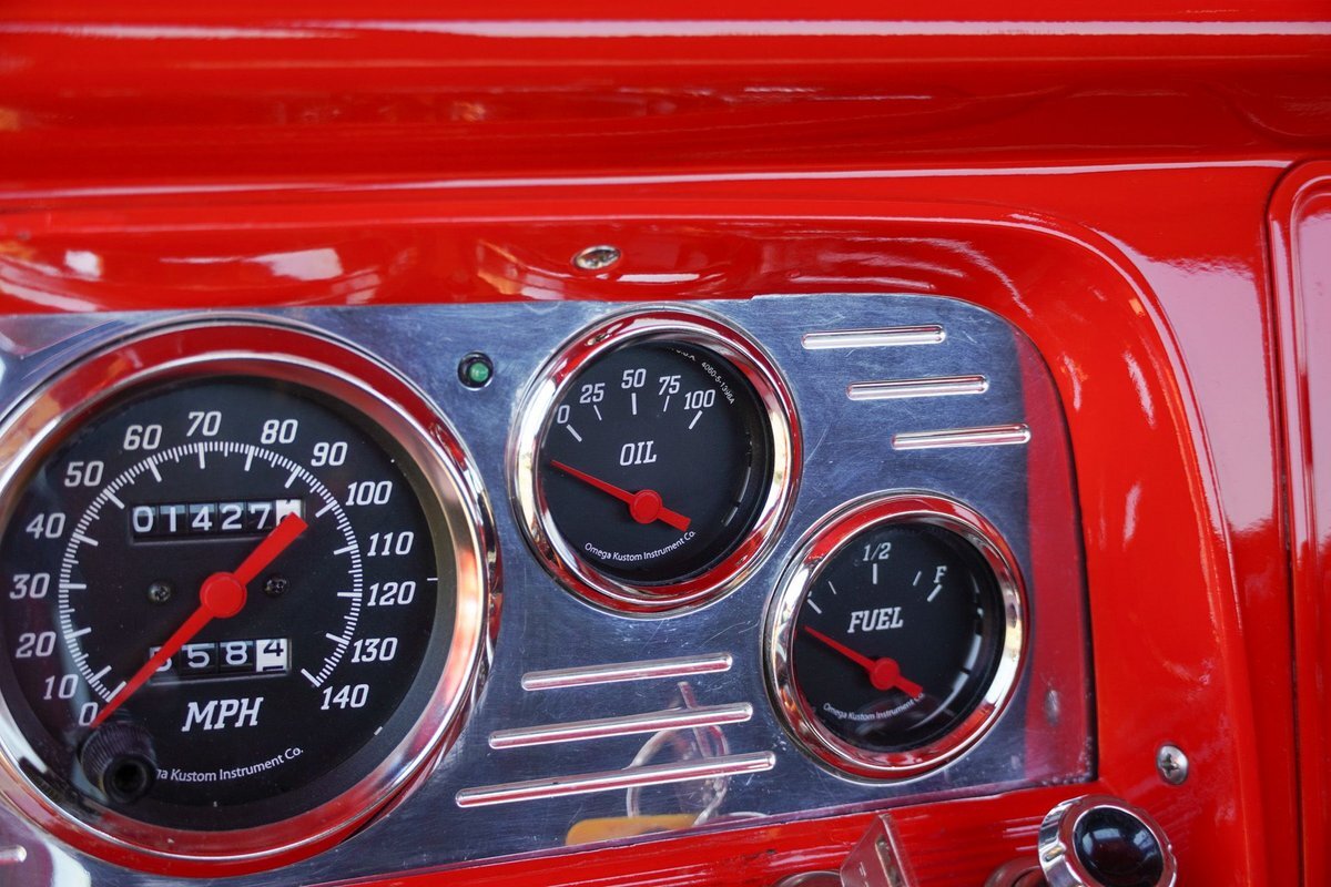 Truck can be seen on Hotrodcollection .com We welcome trade-ins Frame Off Restoration 350 CID Engine New Glass and Trim Detailed Frame and Suspension Oak Bed FloorBig Back Window Truck Vintage Heat and AirPower Steering Power Front Disc Brakes Tilt Wheel Mega Omega Kustom Gauges All New Black Interior New Bumpers and Grille New Wiring Dual Exhaust Custom Chrome US Mags Rears 275-45-20s Front 245-45-20 This 1966 Chevrolet C10 is a short-bed pickup that was refurbished under prior ownership around 2021, including the installation of a 350ci V8 and a three-speed TH400 automatic transmission. The truck has been repainted red with a white roof over a matching interior, and additional equipment includes, power-assisted drum brakes, a wood bed floor, chrome bed rails, Hedman headers, a dual exhaust system, and air conditioning. A wood plank bed floor has been added, and additional equipment includes aftermarket headlights, chrome bed rails, a retractable antenna, and dual side mirrors. A JVC CD stereo is housed in the stock location, and an under-dash air conditioning system has been added. The fuel tank is located behind the seat. The wood-rimmed three-spoke steering wheel frames a polished bezel housing Omega Kustom gauges, including a 140-mph speedometer, an 8k-rpm tachometer, and readouts for fuel level, coolant temperature, oil pressure, and voltage. The five-digit odometer shows 1,400 miles, and total mileage is unknown. Power is routed to the rear wheels through a TH400 three-speed automatic transmission