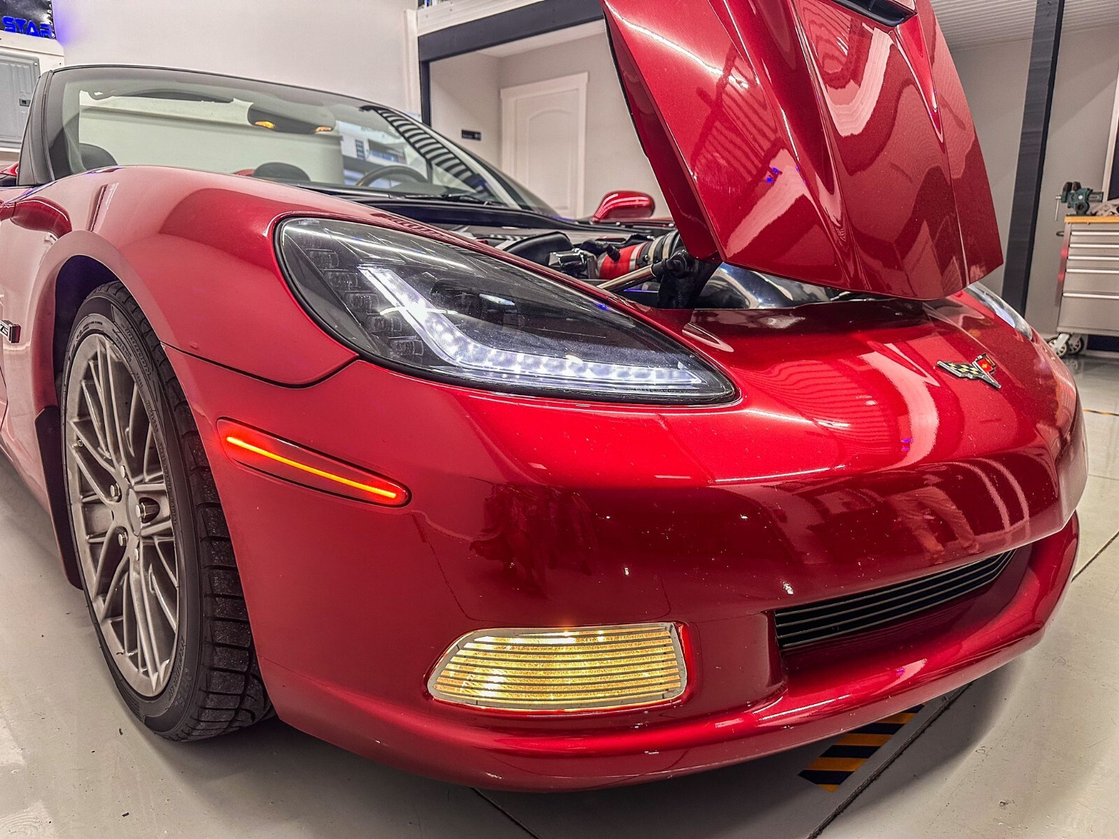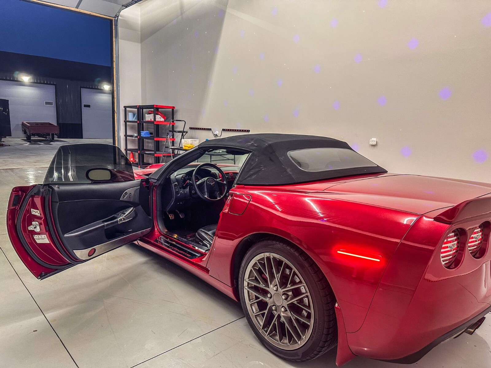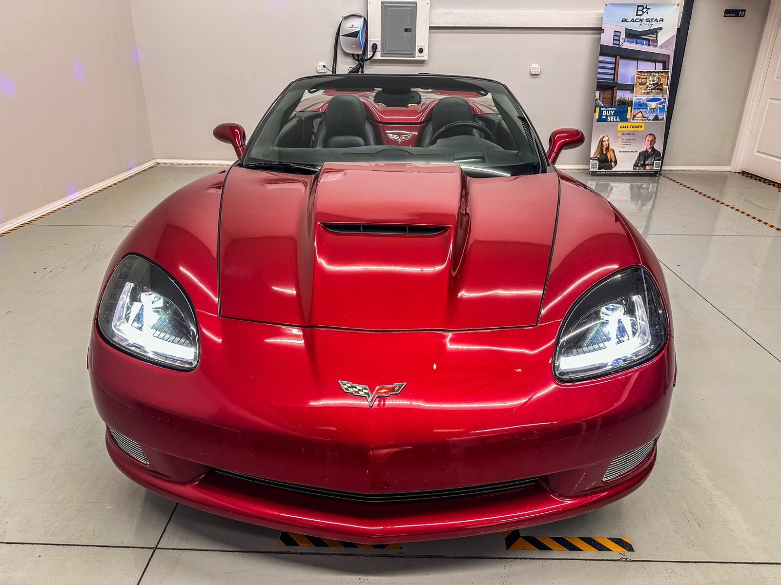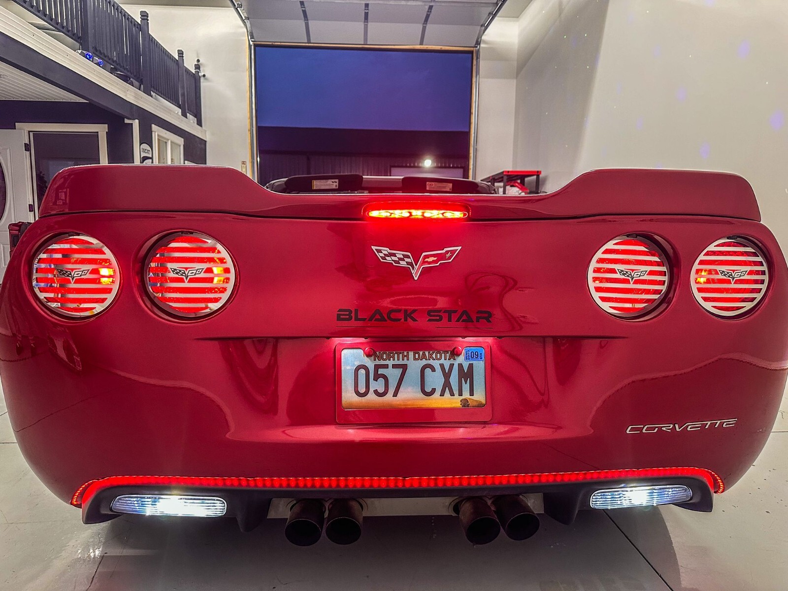 Black Star Corvette. NO RESERVE SALE ends Wednesday at 4 p.m. central. Custom C6 tastefully modified and professionally upgraded. 6 speed manual, Convertible.The engine looks amazing with highly polished stainless steel paneling, custom headers and exhaust gives this car amazing sound that brings goosebumps! Many new parts on the engine itself, ignition coils, plug wires, plugs, filter system, serviced by dealership. Has new modern style headlights, very cool led marker lights, tail lights are sequential, led strip on the bottom for brake light. Wheels are aftermarket, rotors are color matched. Front bumper was refinished by Chevrolet dealership to remove chips and road rash. Interior is color matched, has neat add-ons, short throw quick shifter made out of aircraft anodized billet aluminum with 8 ball. Convertible top is powered and works flawlessly. Bose sound system, heated seats, heads-up display. Shipping anywhere!! Lots of quality pictures are listed, as a disclaimer I must say there are minor signs of use and imperfections, however it is by far, hands down, one of the nicest C6 generation Corvettes out there! No dealer fees or taxes, privately owned, no reserve sale. Shipping available anywhere.
