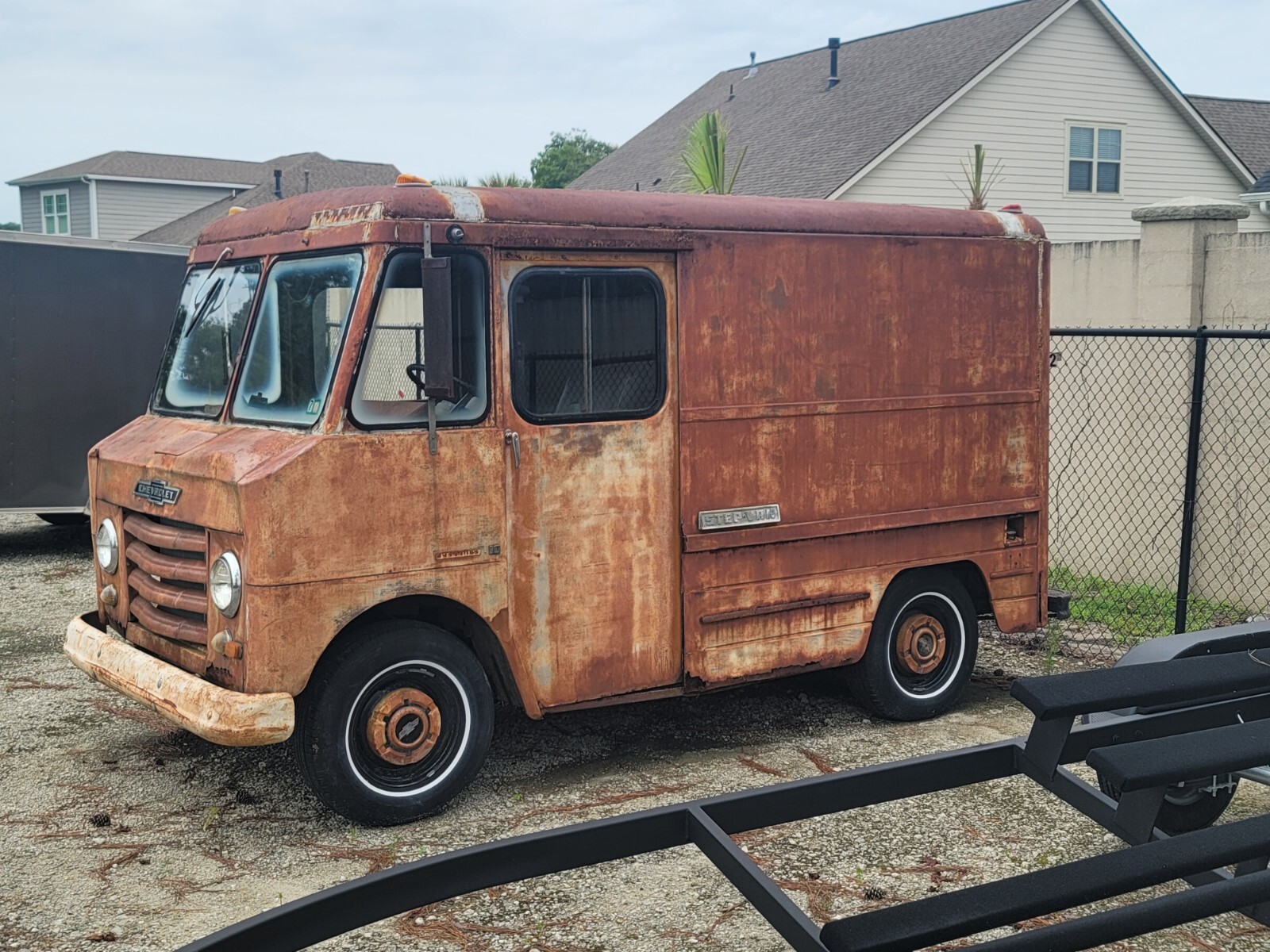This is a 1962 Chevy P10 Stepvan Shorty (with short nose). All systems have been gone though. It runs, drives, brakes and shifts with working lights and horn. New tires, new radiator, and many other system parts gone thru. It's a three speed on the column shift and the straight six engine runs and idols smoothly. It has a current SC title. For inside air flow it is without the passenger and rear windows (install flat glass if prefer to close up). I have enjoyed keeping it original and taking it to local shows. You could replace the lower panels and do some bodywork for painting or wrap which doubles+ the van value if you prefer that look. The P10's are built on the Chevy C10 drivetrain making parts and any modifications you may like more available. It is being sold with No Reserve as we would like it to go to someone who would really enjoy it. Please let me know any questions. Payment by cash or cleared bank funds. Thanks!