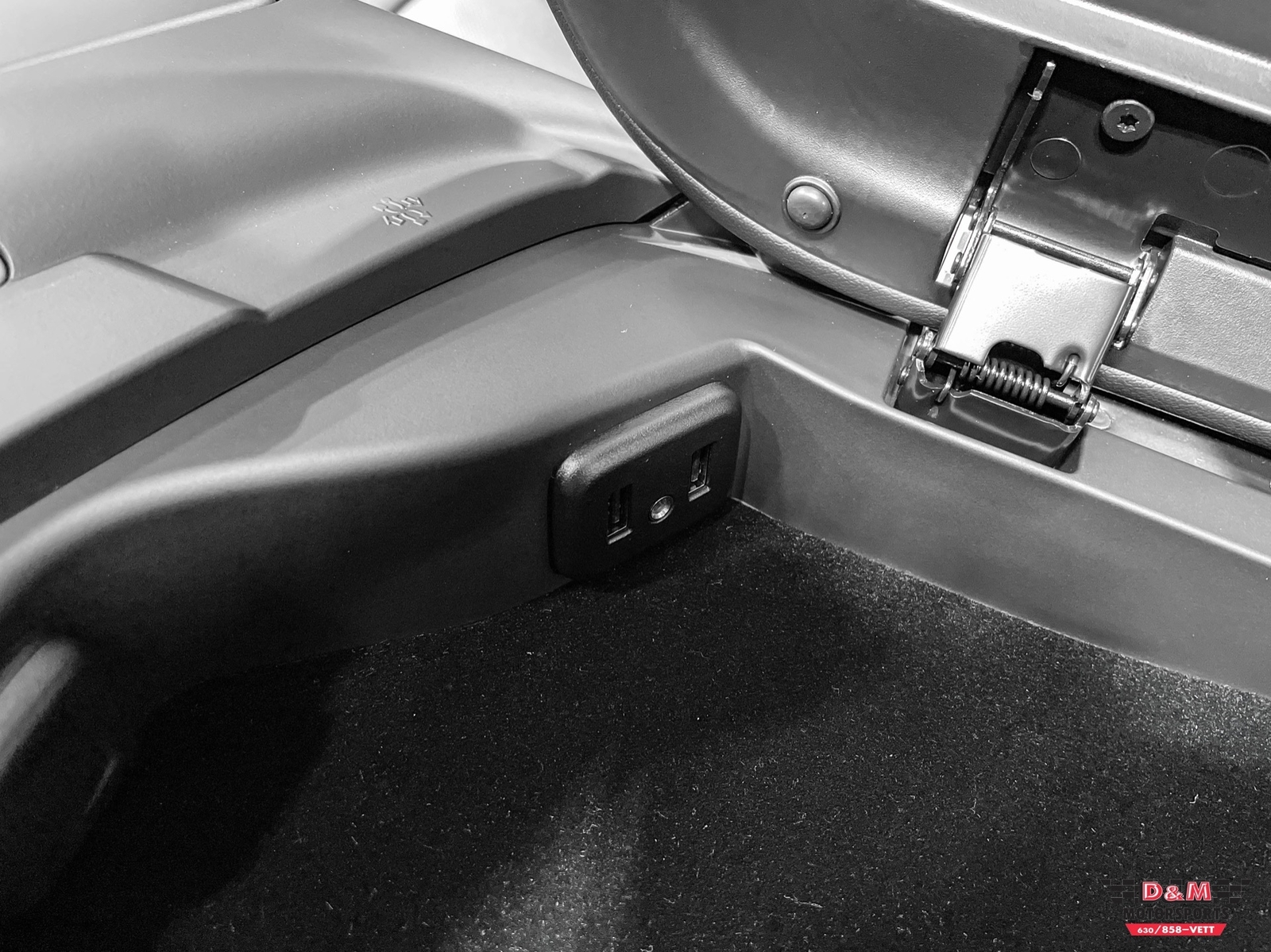 • Storage, with electric locking glovebox, behind screen storage, center console and rear compartment with cover