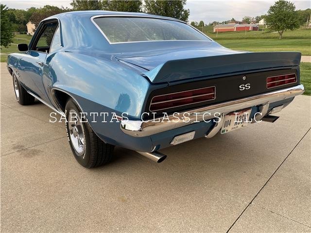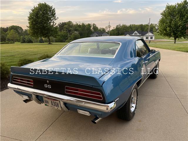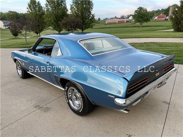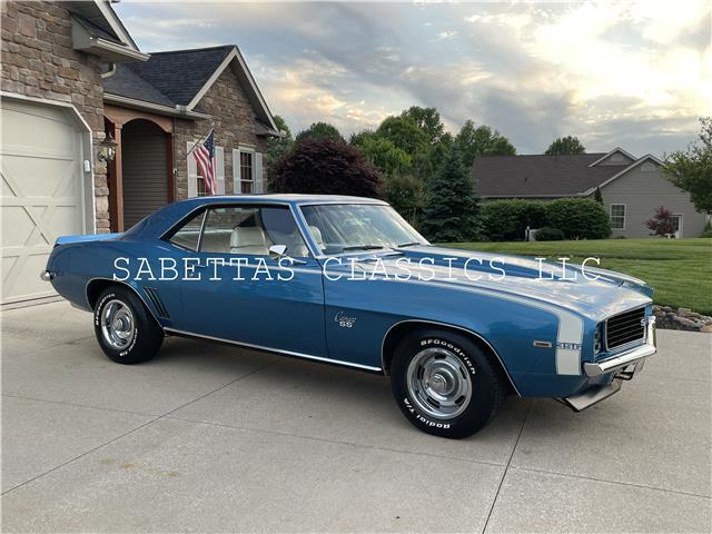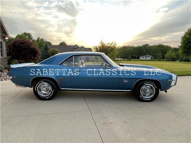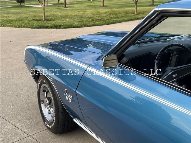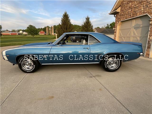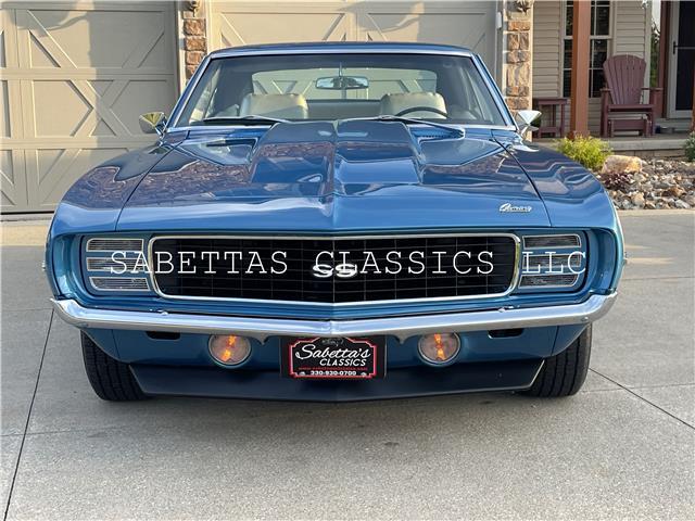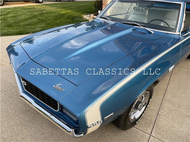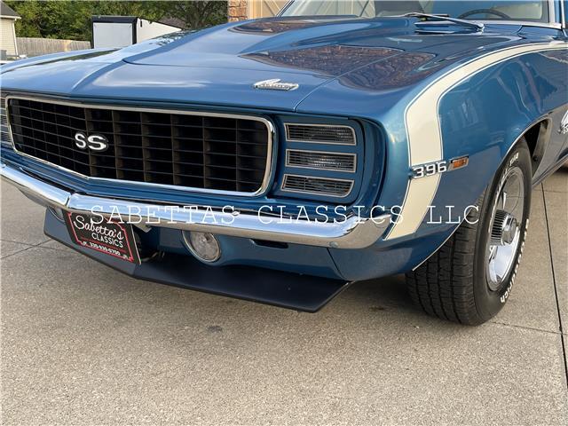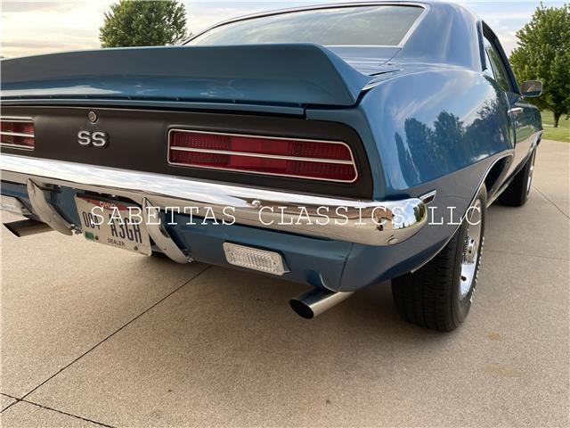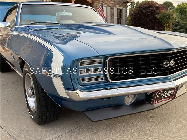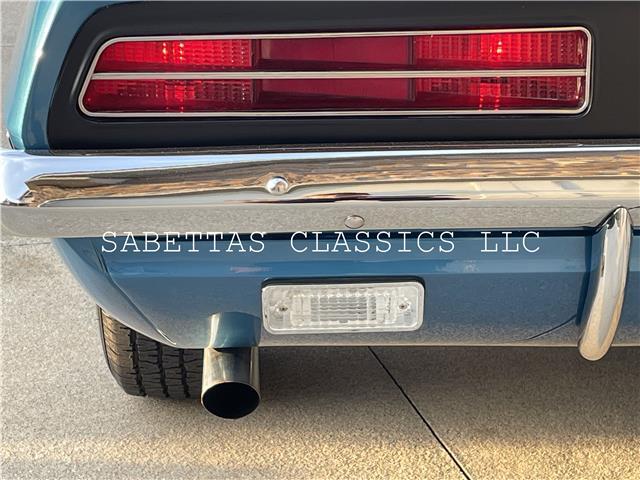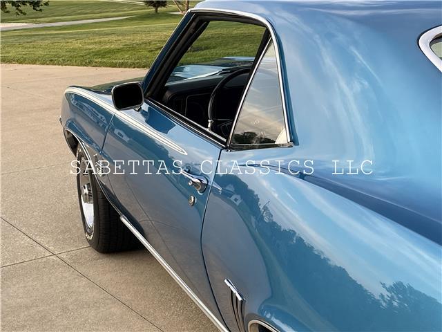 This 1969 Camaro is really sweet! It’s LeMans Blue, code 71 with white Hockey stick stripes running down both fenders and doors. This Camaro has a nice clean body and is straight down the sides, paint is very smooth and glossy. The fit and finish is excellent, door jambs are nice and glossy. All new weather stripping and window seals, doors open and shut nice (no sagging). All the bright work has been replaced or polished, front and rear bumpers are like new. The front grill, hide-away headlight bezels and SS emblem have been replaced. It rides on a set of 14x7 Chevy Rally wheels with a set of 215/70/14 BFGoodrich T/A Radial tires.