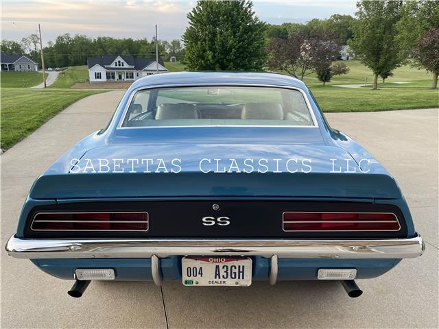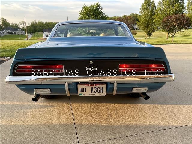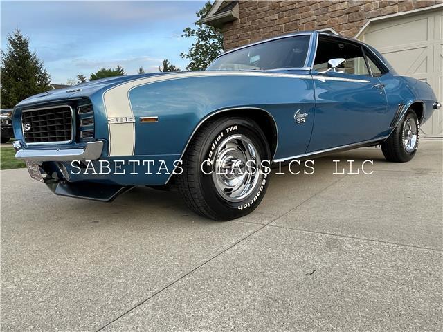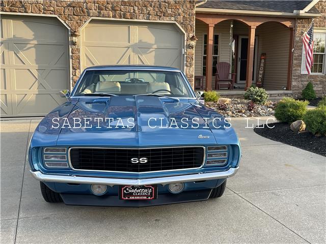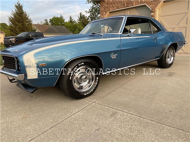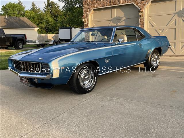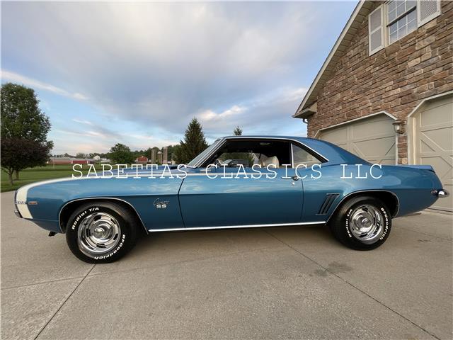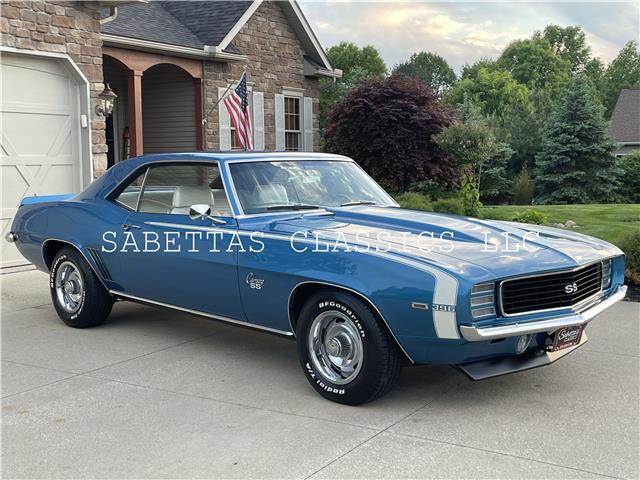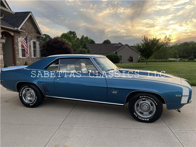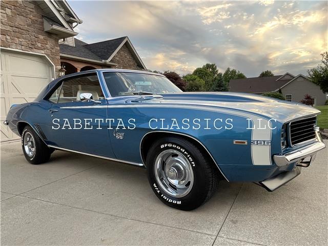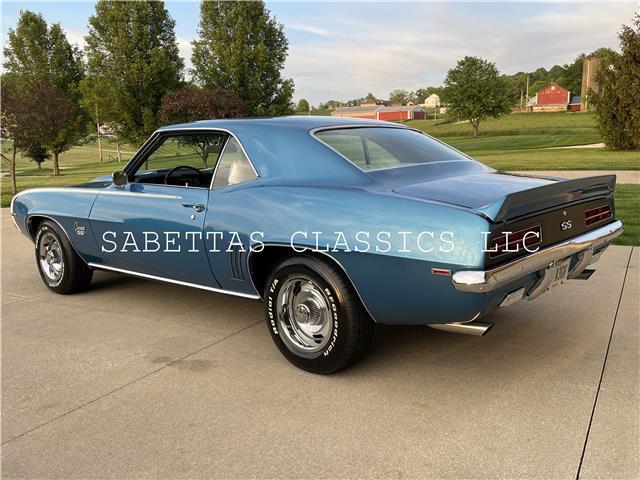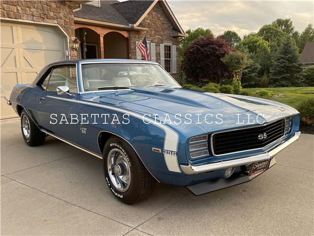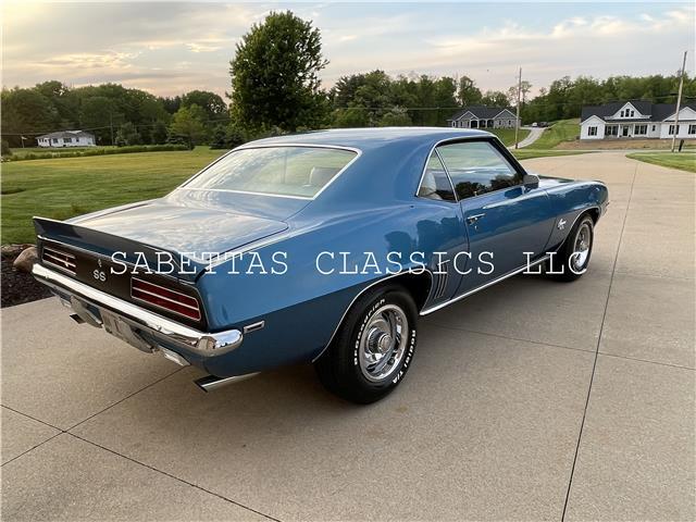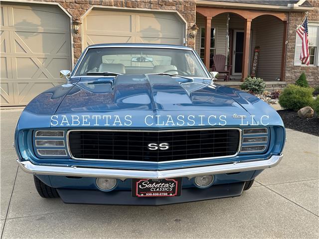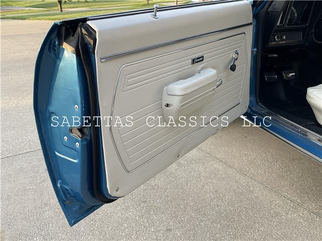 This 1969 Camaro is really sweet! It’s LeMans Blue, code 71 with white Hockey stick stripes running down both fenders and doors. This Camaro has a nice clean body and is straight down the sides, paint is very smooth and glossy. The fit and finish is excellent, door jambs are nice and glossy. All new weather stripping and window seals, doors open and shut nice (no sagging). All the bright work has been replaced or polished, front and rear bumpers are like new. The front grill, hide-away headlight bezels and SS emblem have been replaced. It rides on a set of 14x7 Chevy Rally wheels with a set of 215/70/14 BFGoodrich T/A Radial tires.