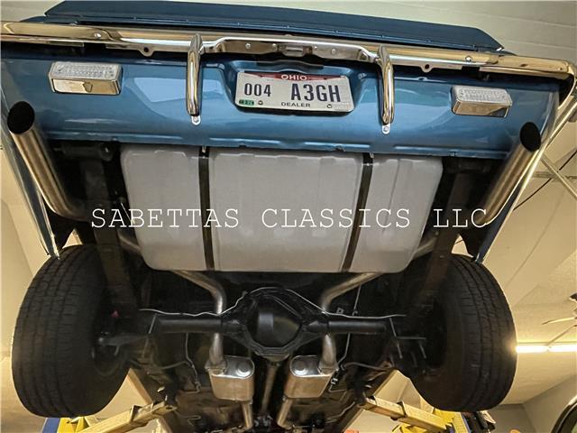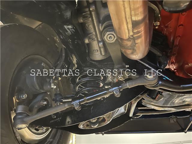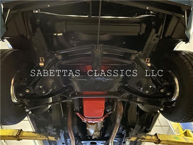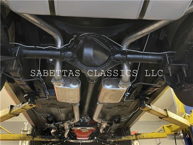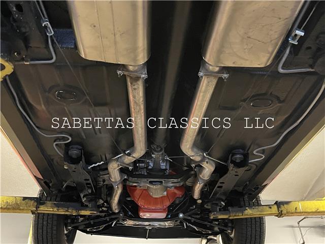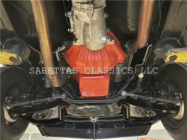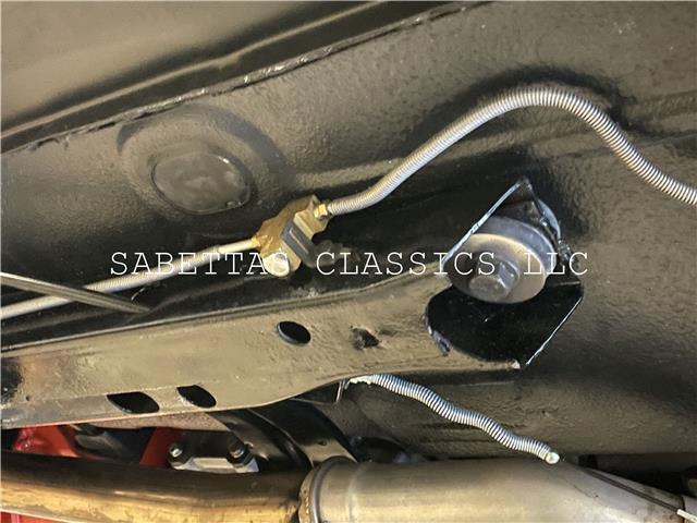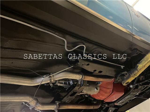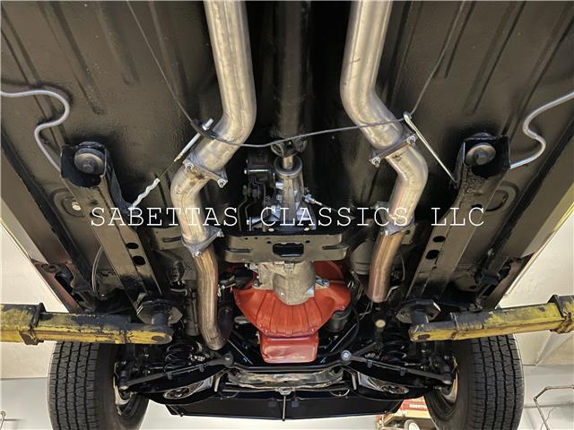 The undercarriage is as clean as the top side. The front end is all new- new bushings, new brake and fuel lines. The subframe has been powder coated and has new body bushings and front disc brakes. The floors are all clean metal and painted in satin black finish. It has newer front and rear shocks, new gas tank and straps, 2.5 inch dual exhaust system, Muncie M21 4-speed transmission and 4:11 12 bolt posi traction rear end. The undercarriage of this car is really clean.