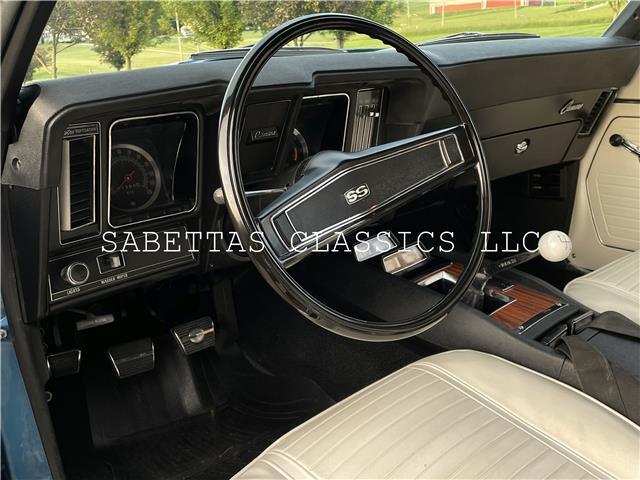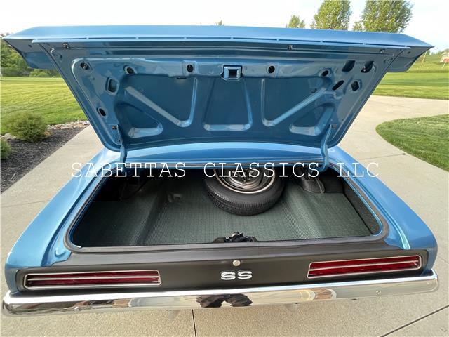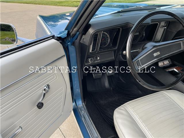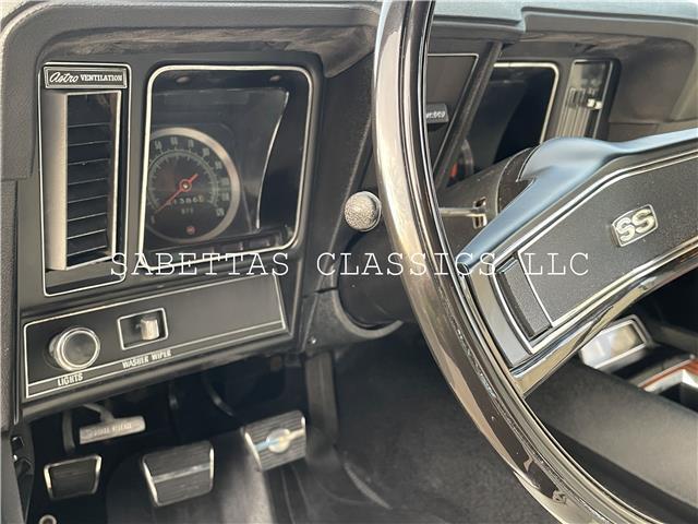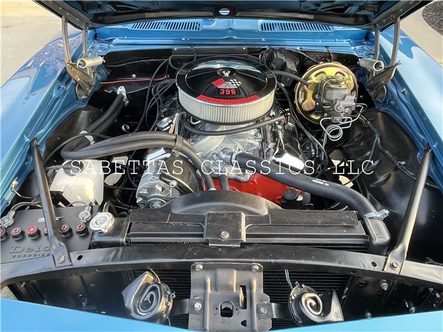 In the engine compartment sits a period correct 396 ci/ 350 hp engine with a few performance upgrades: GM aluminum intake manifold with a dual feed Holley with correct fuel line, HEI ignition, power steering, Delco Moraine cadmium plated power brake booster and proportioning valves, factory chrome valve covers, correct air cleaner base and chrome lid. It also features a 4-core radiator with factory fan shroud and clutch fan. It also has the correct spring style battery cables, correct tower hose clamps, GM radiator and heater hoses. The engine bay has been nicely detailed!!