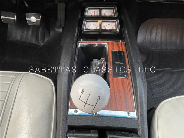 The interior has been completely restored, including seat cushions and covers, carpet, headliner, kick panels, sill plates and new dash pad. It has the optional in dash tach, center console with factory gauges and a Hurst 4 speed shifter coming out of it.