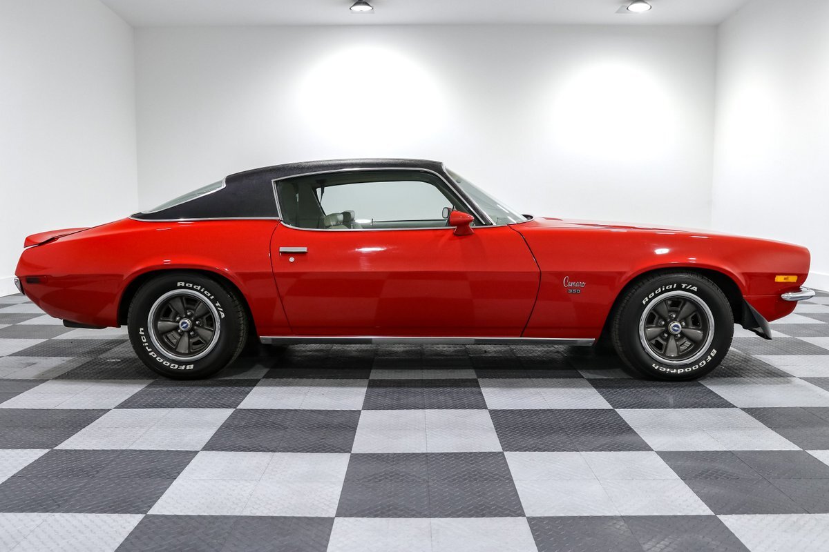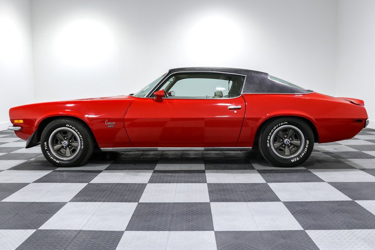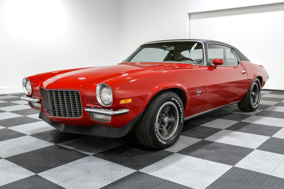 When you think of classic American muscle, the 1970 Chevrolet Camaro is a name that roars with legacy and power. This particular specimen is not just any muscle car; it's a vibrant chapter in the storied history of Chevrolet's answer to the pony car race. With its bold red exterior and striking black vinyl top, this Camaro doesn't just make an entrance-it makes a statement. The 350CI V8 engine, paired with a Turbo 350 automatic transmission, promises a ride that's as smooth as it is exhilarating, encapsulating the raw essence of what it means to command the open road.