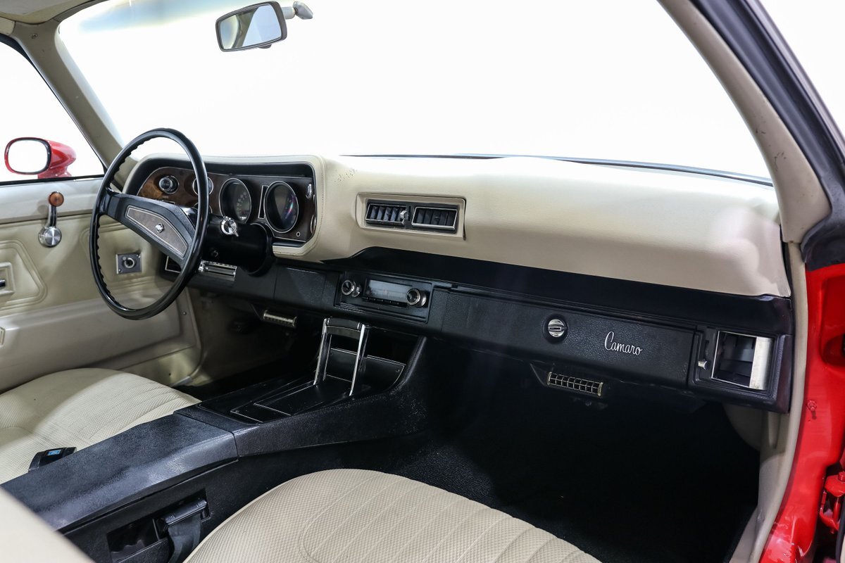 What sets this 1970 Camaro apart are the thoughtful upgrades and features that enhance its appeal without overshadowing its original spirit. The Holley aluminum finned valve covers and Chevrolet Performance chrome air cleaner not only boost performance but also add an extra layer of sleekness under the hood. Meanwhile, the split bumper conversion, a nod to the sought-after Rally Sport look, elevates its aggressive stance, complemented by factory rally wheels that complete the classic aesthetic.