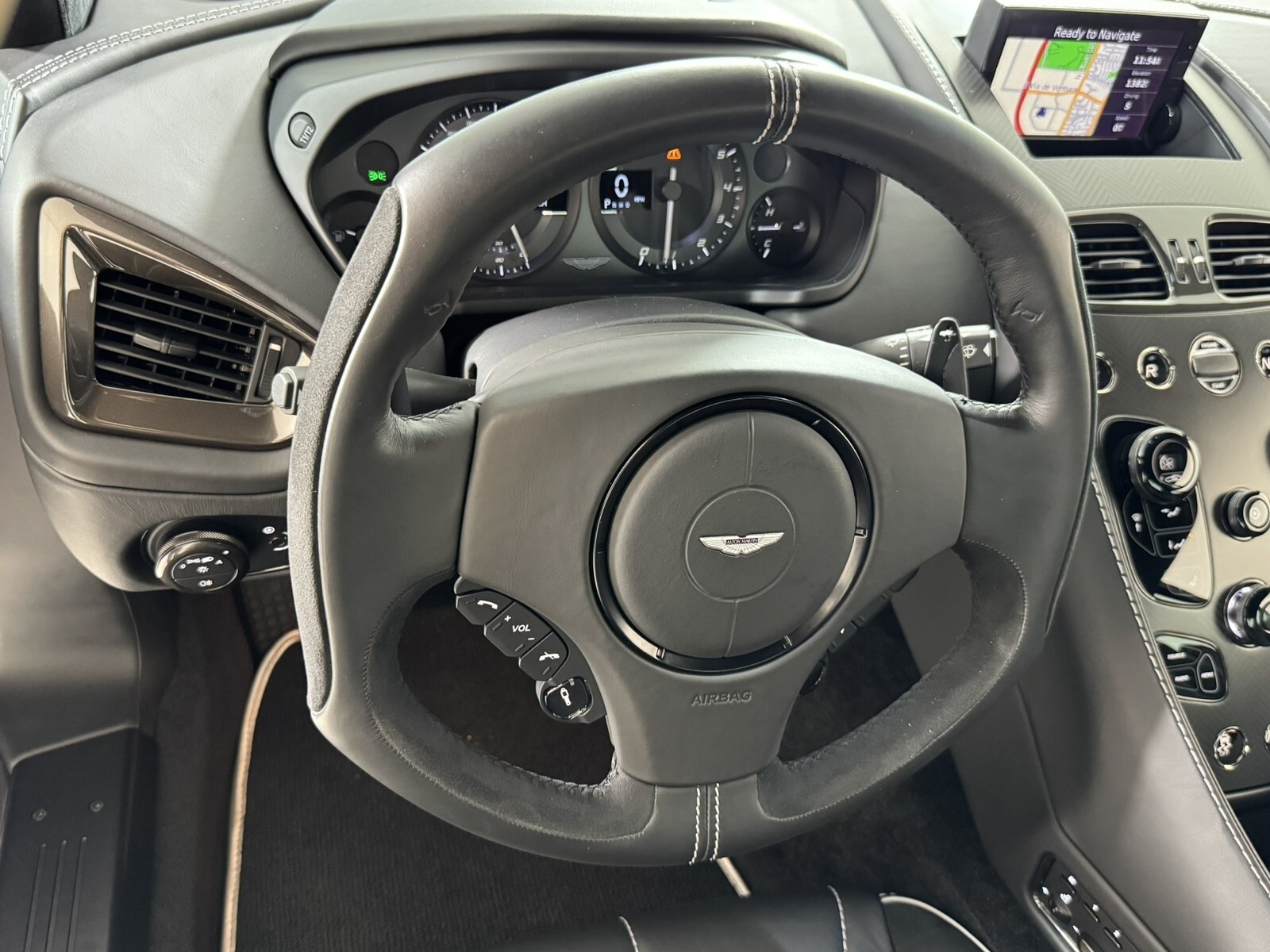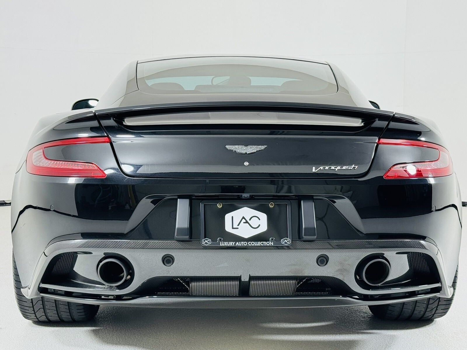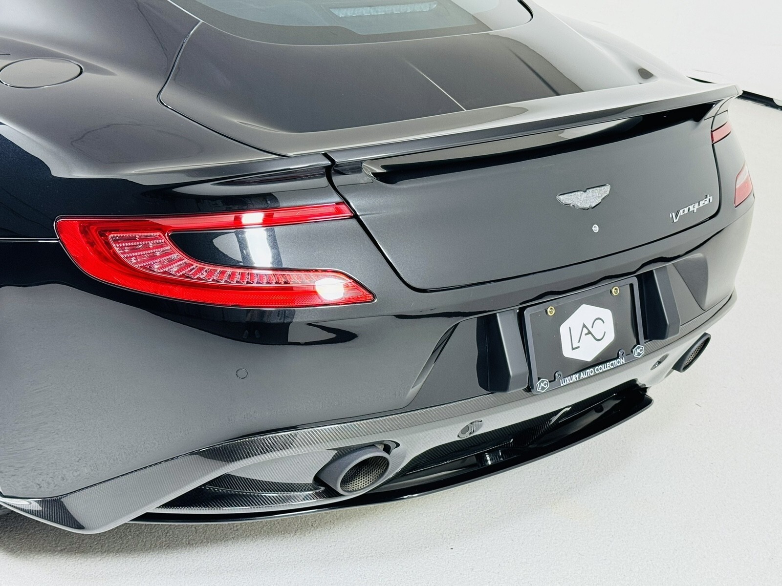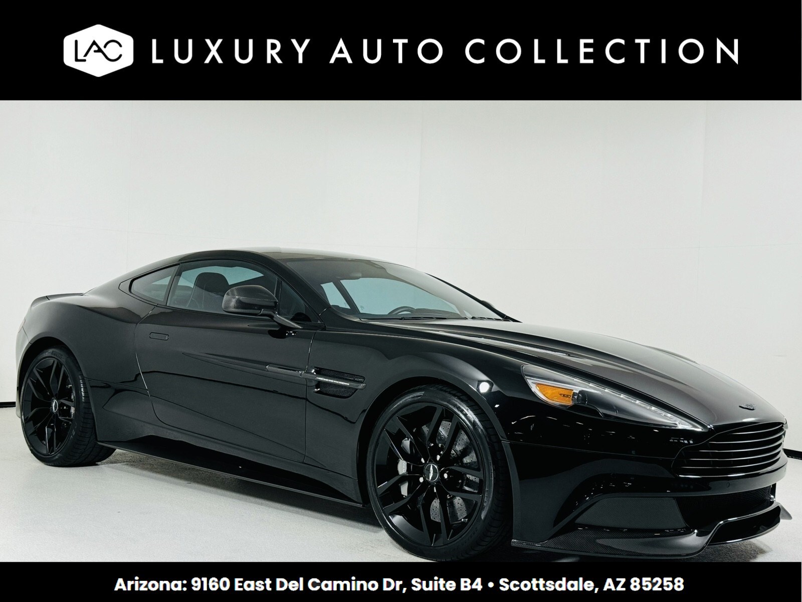 Thank you for viewing another vehicle brought to you by Luxury Auto Collection in sunny Scottsdale, AZ. Put performance, safety, beauty, sophistication and all the right amenities into a car, and here it is! Now you can own luxury without the luxury price tag! There is no reason why you shouldn't buy this Aston Martin Vanquish . It is incomparable for the price and quality. You've found the one you've been looking for. Your dream car. More information about the 2015 Aston Martin Vanquish: Compared to Aston Martin's DBS, the Vanquish is lighter, leaner and more stylish and contemporary in its mission, against a crowd that includes the Maserati GranTurismo, Porsche 911 Turbo and Lamborghini Aventador, among others. Yet despite the Vanquish's intimidating power and supercar performance numbers, the Aston Martin successfully splits the difference between performance machine and grand tourer. This model sets itself apart with unique haptic-feedback interior controls, eye-catching exterior design, a Volante (convertible) that performs just as well, Supercar-league performance, responsive handling, and raucous, enchanting exhaust note. Powering the Aston Martin Vanquish Black Carbon Edition is a potent 6.0-liter naturally aspirated V12 engine, producing an exhilarating 568 horsepower and 465 lb-ft of torque. This engine is mated to a smooth-shifting 8-speed Touchtronic III automatic transmission, delivering seamless power delivery and impressive acceleration. The Vanquish's performance capabilities are further enhanced by its rear-wheel-drive layout and advanced chassis dynamics, providing a thrilling driving experience.The Aston Martin Vanquish Black Carbon Edition stands out with its striking and aerodynamic exterior design. The Black Carbon Edition features carbon fiber accents and detailing, including a carbon fiber front splitter, side sills, mirror caps, and rear diffuser, which add a sporty and aggressive touch to the elegant lines of the Vanquish. The unique carbon
