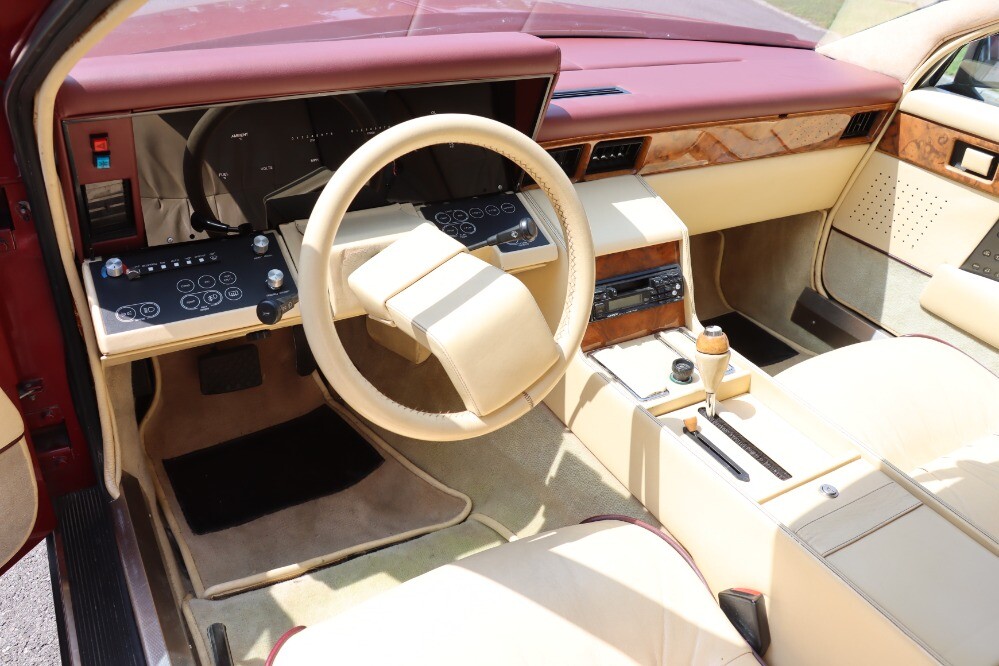 This 1983 Aston Martin Lagonda represents an exciting opportunity to own a classic of modern design and advanced engineering. Maroon with ivory leather interior. Highly original condition throughout. A clean and straight car that presents very nicely overall. The car runs and drives but would benefit from minor cosmetics and servicing at this time.