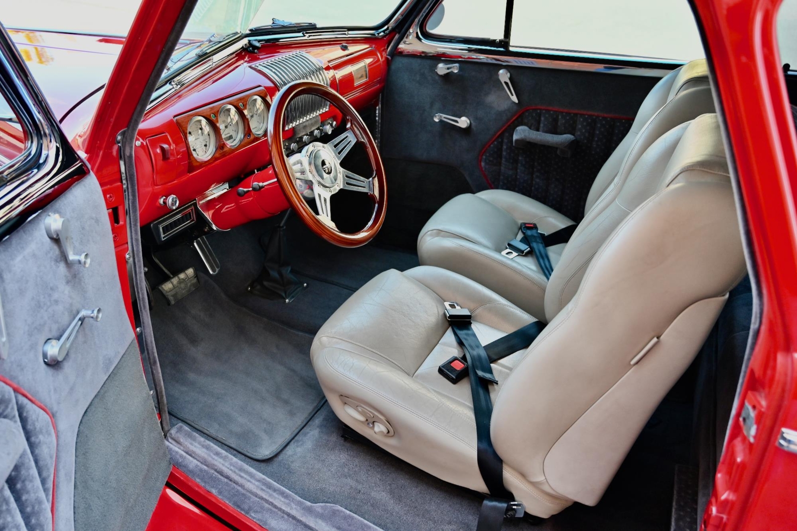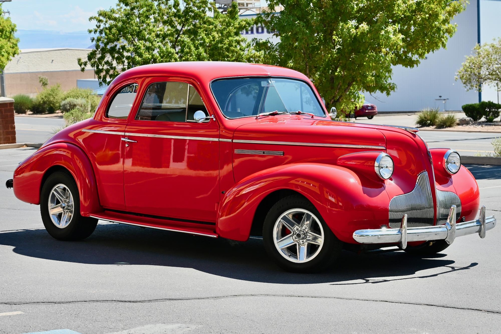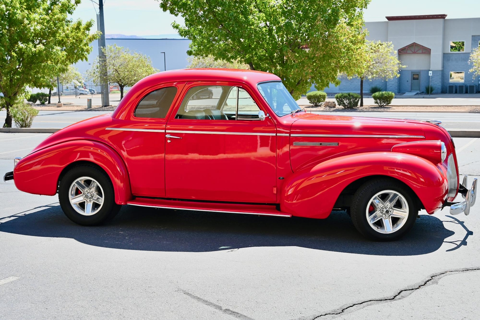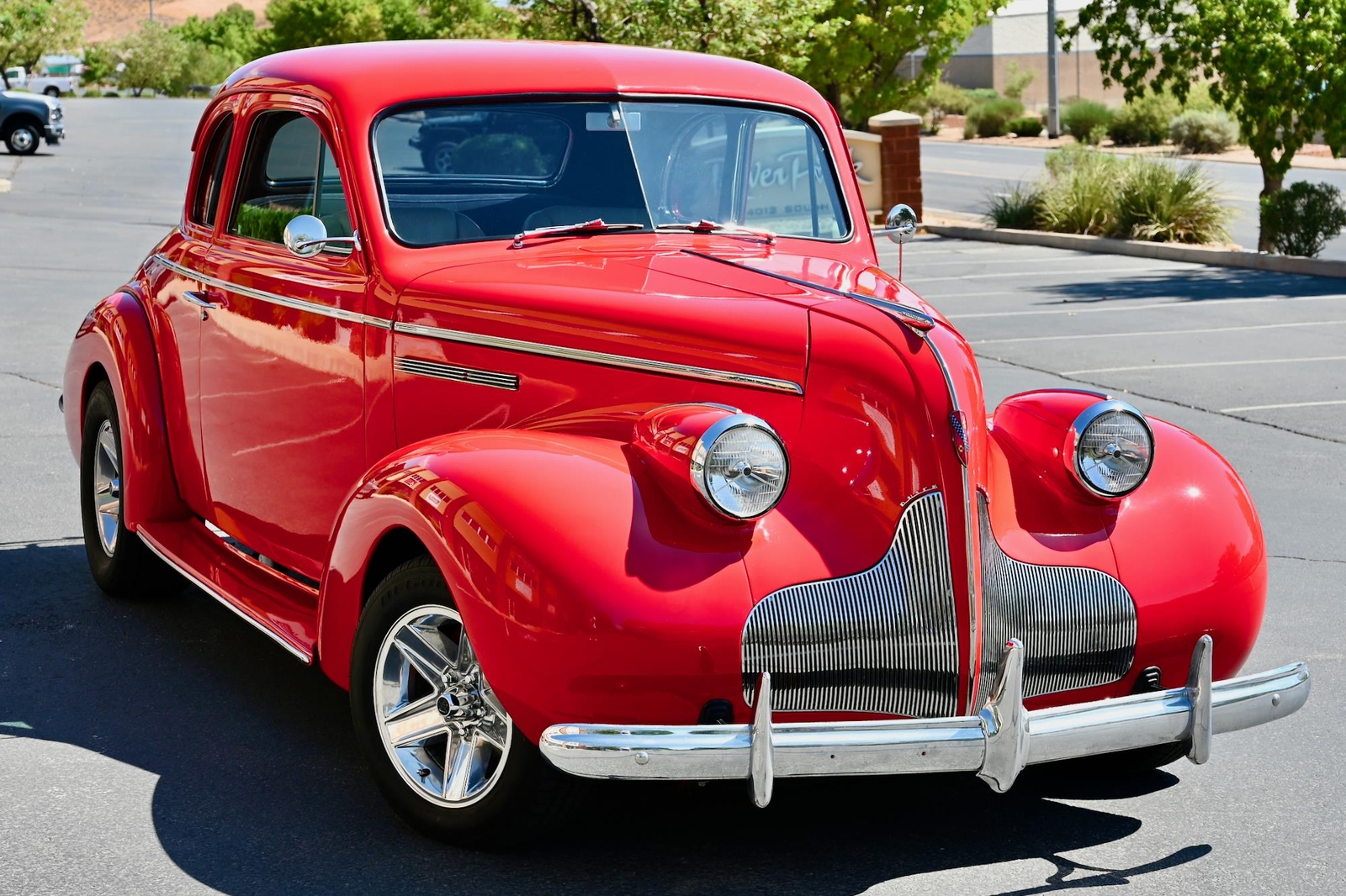 ‘Red Hills Rods & Classics’ is very happy to offer you this beautiful 1939 Buick Special Business Coupe! With all of the Ford & Chevy hot rods out there, it’s really nice to see something a little different. Originally restored in the early 2000’s, this little Coupe has been extremely well-maintained w/ lots of cool upgrades added over the past few years. It was built to look great, but it was also built to drive and enjoy, and they certainly succeeded in every way. The original Buick body is 100% steel, w/ reproduction steel running boards added during the restoration. The front end of the 1939 Buick Coupe was quite unique, as it featured the mustache grille, w/ eyes, nose, cheekbones, and mouth, which was a one-year only design. This ’39 Buick Coupe is finished in Porsche Red throughout, w/ replated chrome grille, bumpers & bumper guards. The Porsche Red paint has held up remarkably well over the years and still shows very nicely. The original cowl vent is still fully functional, the quarter windows slide open nicely, the rear windows are smoked, and the door & trunk locks are in good working order. She has a nice low stance, and sits on aluminum IROC 5-spoke wheels, wrapped w/ BF Goodrich TA Radial tires (P205/60/R15). You can walk around this Coupe a dozen times and it looks great from all angles. Suspension consists of long trailing-arms w/ coil springs and separate shocks behind the axle, similar to a 1965 Chevrolet pickup. Other features include power brakes w/ 4-wheel discs, and power steering w/ large diameter anti-sway bar (see undercarriage photos).