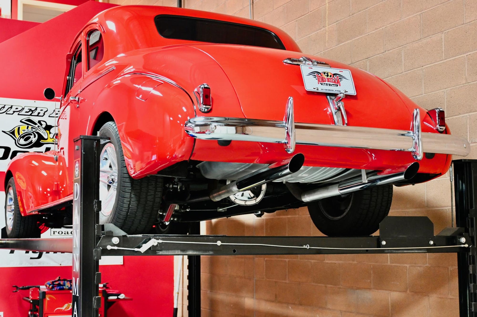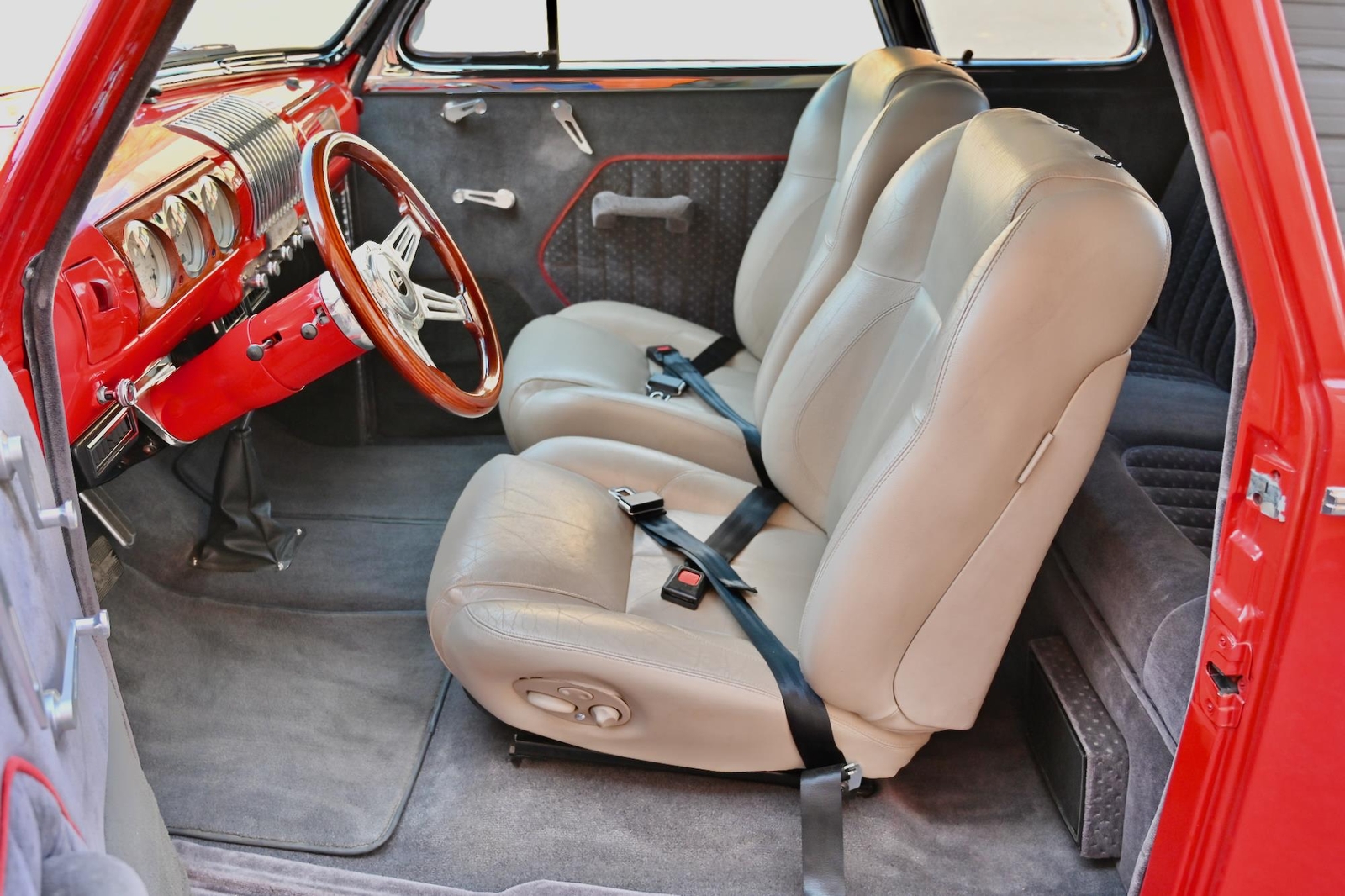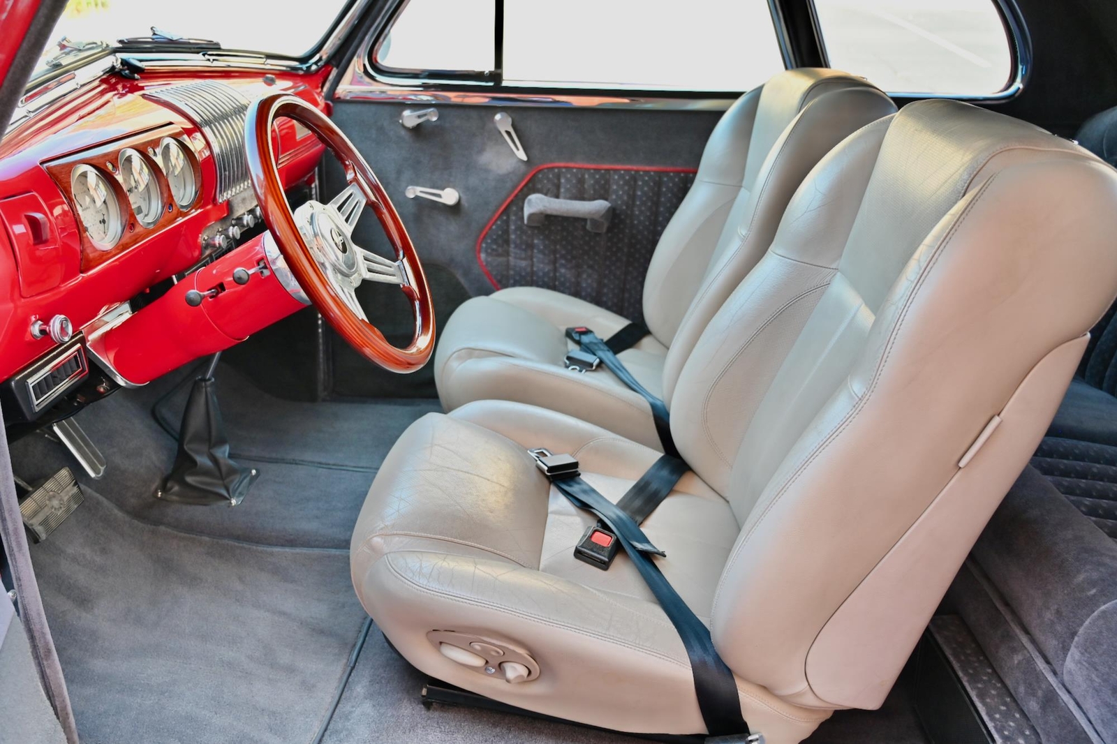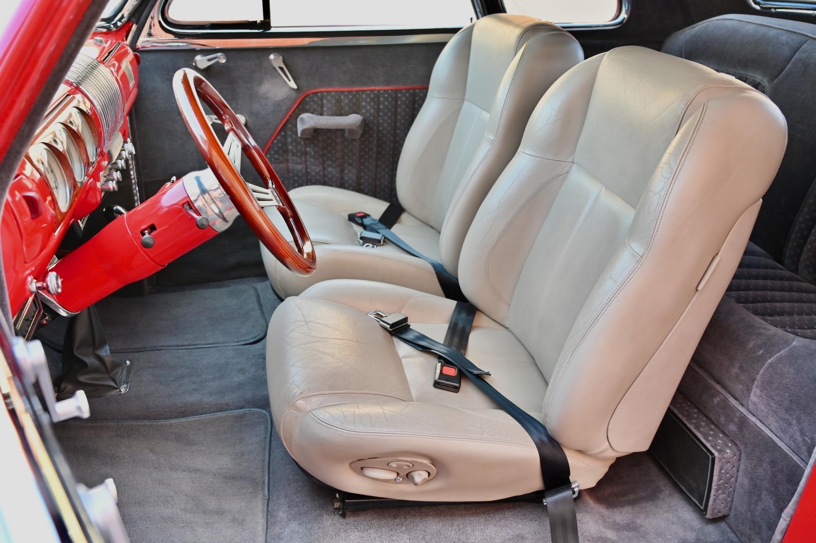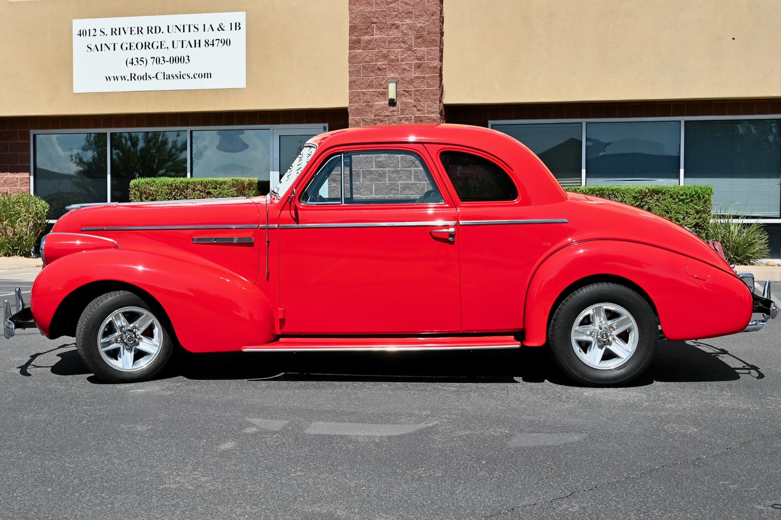 ‘Red Hills Rods & Classics’ is very happy to offer you this beautiful 1939 Buick Special Business Coupe! With all of the Ford & Chevy hot rods out there, it’s really nice to see something a little different. Originally restored in the early 2000’s, this little Coupe has been extremely well-maintained w/ lots of cool upgrades added over the past few years. It was built to look great, but it was also built to drive and enjoy, and they certainly succeeded in every way. The original Buick body is 100% steel, w/ reproduction steel running boards added during the restoration. The front end of the 1939 Buick Coupe was quite unique, as it featured the mustache grille, w/ eyes, nose, cheekbones, and mouth, which was a one-year only design. This ’39 Buick Coupe is finished in Porsche Red throughout, w/ replated chrome grille, bumpers & bumper guards. The Porsche Red paint has held up remarkably well over the years and still shows very nicely. The original cowl vent is still fully functional, the quarter windows slide open nicely, the rear windows are smoked, and the door & trunk locks are in good working order. She has a nice low stance, and sits on aluminum IROC 5-spoke wheels, wrapped w/ BF Goodrich TA Radial tires (P205/60/R15). You can walk around this Coupe a dozen times and it looks great from all angles. Suspension consists of long trailing-arms w/ coil springs and separate shocks behind the axle, similar to a 1965 Chevrolet pickup. Other features include power brakes w/ 4-wheel discs, and power steering w/ large diameter anti-sway bar (see undercarriage photos).
