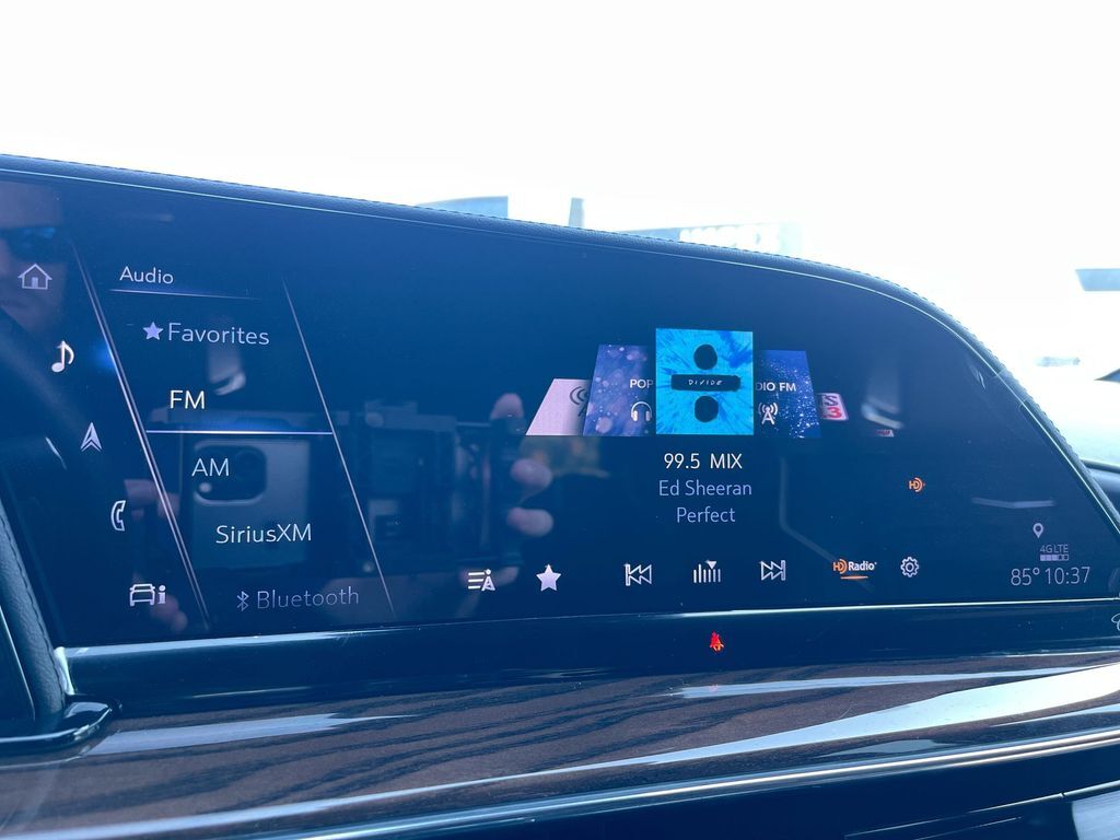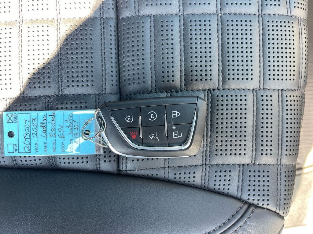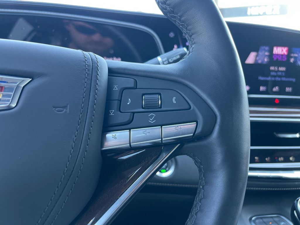 THIS VEHICLE INCLUDES THE FOLLOWING FEATURES AND OPTIONS: Onyx Package (LPO) (Gloss Black Escalade Nameplate (LPO), Monochrome Cadillac Emblems (LPO), Wheels: 22 12-Spoke Gloss Black Alloy (LPO), and Wheels: 22 Interim (LPO)), Preferred Equipment Group 1SH (Adaptive Cruise Control, AKG Studio Reference 36-Speaker Audio System, Automatic Seat Belt Tightening, Body-Color Door Handles, Door Lock & Latch Shields, Electronic Limited-Slip Differential, Enhanced Automatic Emergency Braking, Enhanced Automatic Parking Assist, Floor Console w/Covered Storage, Front Auxiliary 12-volt Power Outlet, Glass Breakage Sensor, Heated & Ventilated Driver & Front Passenger Seats, Hitch Guidance w/Hitch View, Integrated Trailer Brake Controller, Platinum Interior Trim, Power Lumbar Massage Driver Seat, Power Lumbar Massage Front Passenger Seat, Power Panoramic Tilt-Sliding Sunroof, Rear Camera Mirror, Rear Camera Mirror Washer, Rear Cross Traffic Alert, Rear Seat Entertainment System, Reconfigurable Full-Color Head-Up Display, Reverse Automatic Braking, Running Board Assist Steps, Smart Trailer Integration Indicator, Theft-Deterrent Alarm System, Trailer Side Blind Zone Alert, Vehicle Inclination Sensor, and Vehicle Interior Movement Sensor), Touring Package (Air Ride Adaptive Suspension, Illuminating Front & Rear Sill Plates, and Soft Closing Front & Rear Doors), AWD, 16.9 Diagonal OLED Infotainment Screen, 2-Presets Memory For Driver Seat Adjuster, 3.23 Axle Ratio, 3rd row seats: split-bench, 4-Way Power Driver Lumbar Seat Adjuster, 4-Way Power Front Passenger Lumbar Seat Adjuster, 4-Wheel Disc Brakes, 8-Way Power Driver Seat Adjuster, 8-Way Power Front Passenger Seat Adjuster, A/V remote, ABS brakes, Adaptive suspension, Air Conditioning, Alloy wheels, AM/FM radio: SiriusXM with 360L, Apple CarPlay/Android Auto, Audio memory, Auto High-beam Headlights, Auto tilt-away steering wheel, Auto-dimming door mirrors, Automatic temperature control, Brake assist, Bumpers: body-color, Compass, Cruise Control, Delay-off headlights, Door auto-latch, Driver door bin, Driver vanity mirror, Dual front impact airbags, Dual front side impact airbags, Electronic Stability Control, Emergency communication system: OnStar and Cadillac connected services capable, Exterior Parking Camera Rear, Four wheel independent suspension, Front anti-roll bar, Front Bucket Seats, Front Center Armrest w/Storage, Front dual zone A/C, Front reading lights, Full Semi-Aniline Leather Seat Trim, Fully automatic headlights, Garage door transmitter, Genuine wood console insert, Genuine wood dashboard insert, Genuine wood door panel insert, HD Radio, Headphones, Heads-Up Display, Heated door mirrors, Heated Driver & Front Passenger Seats, Heated front seats, Heated rear seats, Heated steering wheel, Illuminated entry, Leather steering wheel, Low tire pressure warning, Magnetic Ride Control Suspension, Memory seat, Navigation System, Not Equipped w/2nd Row Express-Up Window Control, Occupant sensing airbag, Outside temperature display, Overhead airbag, Overhead console, Panic alarm, Passenger door bin, Passenger vanity mirror, Power door mirrors, Power driver seat, Power Liftgate, Power moonroof, Power passenger seat, Power steering, Power windows, Power-Retractable Assist Steps, Radio data system, Radio: AM/FM w/Navigation, Rain sensing wipers, Rear air conditioning, Rear anti-roll bar, Rear audio controls, Rear reading lights, Rear window defroster, Rear window wiper, Remote keyless entry, Roof rack: rails only, Security system, SiriusXM w/360L, Split folding rear seat, Spoiler, Steering wheel memory, Steering wheel mounted audio controls, Super Cruise, Tachometer, Teen Driver, Telescoping steering wheel, Tilt steering wheel, Traction control, Trip computer, Turn signal indicator mirrors, Variably intermittent wipers, Ventilated front seats, Voltmeter, Wheels: 22 12-Spok