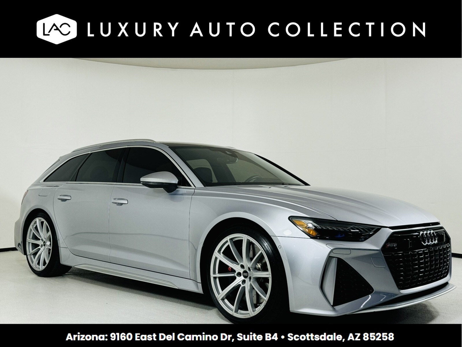 Thank you for viewing another vehicle brought to you by Luxury Auto Collection in sunny Scottsdale, AZ. Pull up in the vehicle and the valet will want to parked on the front row. This Audi RS 6 Avant is the vehicle others dream to own. Don't miss your chance to make it your new ride. This AWD-equipped vehicle will handle beautifully on any terrain and in any weather condition your may find yourself in. The benefits of driving an all wheel drive vehicle, such as this Audi RS 6 Avant , include superior acceleration, improved steering, and increased traction and the heart of the 2021 Audi RS 6 Avant lies a formidable 4.0-liter twin-turbocharged V8 engine, producing an astonishing 591 horsepower and 590 lb-ft of torque. This powerhouse propels the RS 6 Avant from 0 to 60 mph in just 3.5 seconds, delivering breathtaking acceleration and dynamic performance. The 8-speed Tiptronic automatic transmission with quattroŽ all-wheel drive ensures smooth power delivery and precise handling, while the RS adaptive air suspension with dynamic ride control provides exceptional comfort and agility in any driving situation.The RS 6 Avant combines sporty design with practical functionality, making it the perfect blend of performance and versatility. The avant-garde styling features aggressive lines, a striking Singleframe grille, and distinctive RS design elements, setting it apart from the ordinary. The spacious cargo area offers ample storage capacity, while the power tailgate provides easy access to your belongings. With its sleek and aerodynamic silhouette, the RS 6 Avant exudes confidence and sophistication on every journey.The 2021 Audi RS 6 Avant is equipped with a premium Bang & OlufsenŽ 3D Advanced Sound System, delivering an immersive audio experience that enhances your driving enjoyment. With 16 speakers and a 705-watt amplifier, this state-of-the-art sound system provides crystal-clear audio and rich, dynamic sound reproduction, ensuring that every note