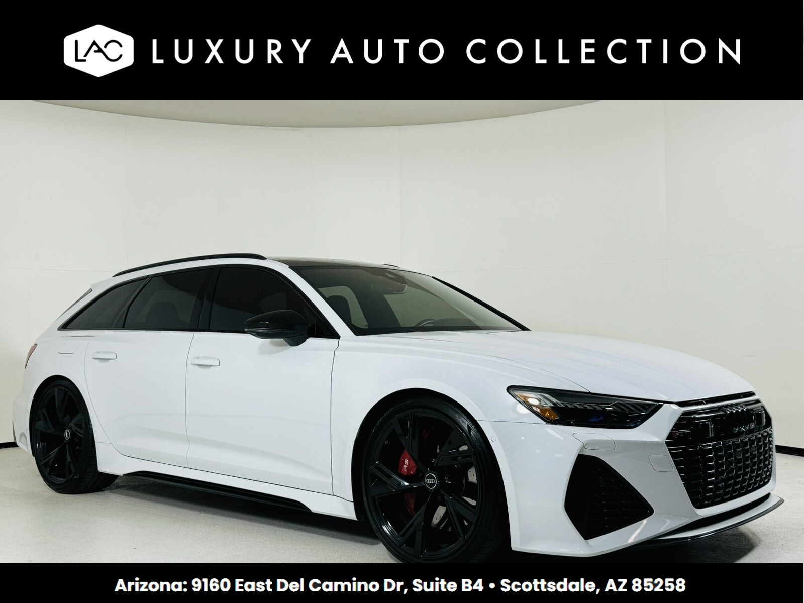 Thank you for viewing another vehicle brought to you by Luxury Auto Collection in sunny Scottsdale, AZ. Put performance, safety, beauty, sophistication and all the right amenities into a car, and here it is! Now you can own luxury without the luxury price tag! This Audi RS 6 Avant features AWD. That means power and control delivered to all four wheels for maximum grip and improved handling.Under the hood of the RS 6 Avant lies a potent 4.0-liter twin-turbocharged V8 engine, producing an impressive 591 horsepower and 590 lb-ft of torque. This powerhouse accelerates the RS 6 Avant from 0 to 60 mph in just 3.5 seconds, delivering blistering acceleration and thrilling performance that rivals many sports cars. The Executive Package adds a host of premium features to the RS 6 Avant, enhancing its luxury and convenience. This package typically includes upgraded leather upholstery, ventilated front seats, heated rear seats, a head-up display, and a premium Bang & Olufsen sound system. These amenities elevate the RS 6 Avant's interior to new levels of comfort and refinement. Black Optic Package: The Black Optic Package gives the RS 6 Avant a more aggressive and distinctive appearance with blacked-out exterior trim elements. This typically includes black mirror caps, black window surrounds, black roof rails, and black grille surround. The result is a sleek and stealthy aesthetic that complements the RS 6 Avant's sporty character. Driver Assistance Package: The Driver Assistance Package equips the RS 6 Avant with advanced safety and driver-assistance features to enhance confidence and convenience on the road. This typically includes adaptive cruise control, lane-keeping assist, traffic sign recognition, automatic emergency braking, and a 360-degree camera system. These features provide added peace of mind and help reduce driver fatigue during long journeys. Sport Exhaust: The Sport Exhaust system adds an extra layer of excitement to the driving experience by enhancing the RS 6
