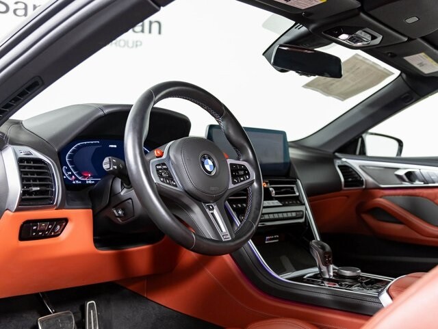 ORIGINAL MSRP OF $155,995. This exceptional 2023 BMW M8 Competition is painted in Individual Frozen Metallic over Sakhir Orange Leather. This clean Carfax 1-Owner example is loaded with factory equipment inbcluding Driving Assistance Package, M Carbon Exterior Package, Heated Seats, Armrests, and Steering Wheel, Neck Warmers, 20'' M Alloy Wheels, and more//// Blind Spot Detection, Active Driving Assistant, Active Park Distance Control, Connected Package Pro, Driving Assistance Package, harman/kardon Surround Sound System, Heated Front Seats w/Armrests & Steering Wheel, Lane Departure Warning System, M Carbon Exterior Package, Parking Assistant Plus, Rear-View Camera, Surround View w/3D View and SO MUCH MORE! DON'T MISS OUT!!