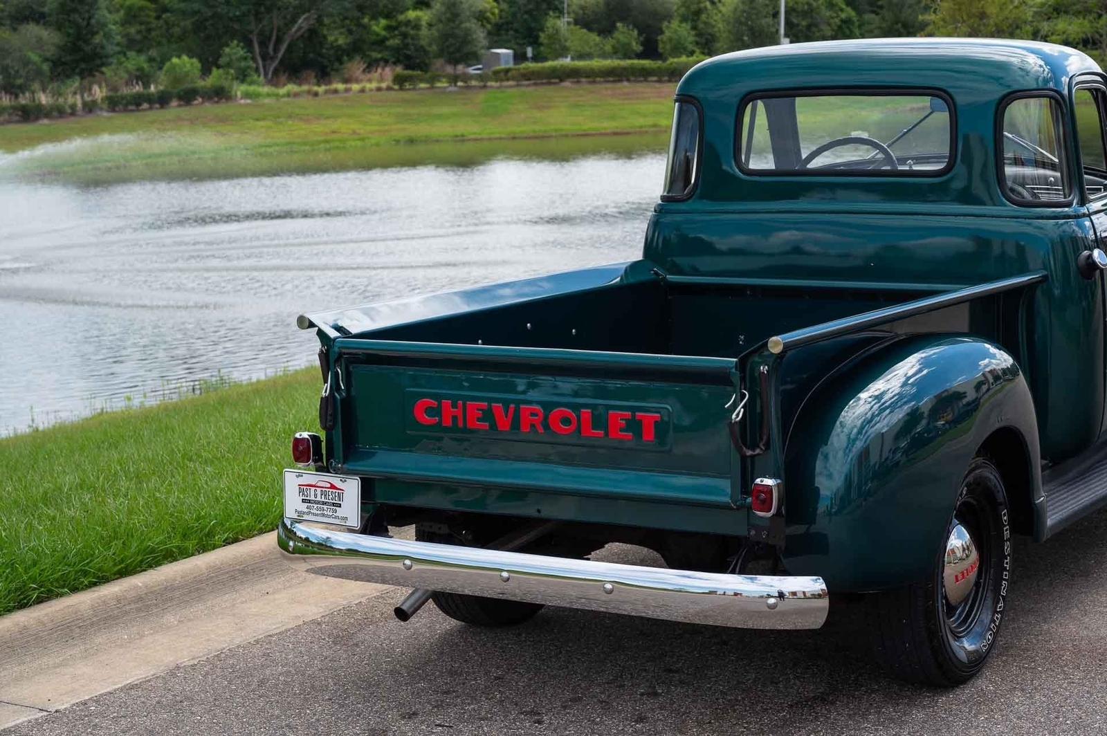 1952 Chevrolet 3100 5 Window Pickup, Inline 6 Cylinder Engine, 3 Speed Manual Transmission. Runs and Drives Great! Very clean original truck you can show and drive anywhere! This 1952 Chevrolet 3100 pickup has all the right looks for a cool vintage truck. The Advanced Design style has matured into old-school tough Americana attitude, and oh yes, this one has the ultra-desirable five-window style. Now you have to decide, will it be the coolest workhorse cruiser around or a candidate for a V8 upgrade in the hot vintage truck market? With this exceptional condition and affordable price, anything is possible. This Chevy provides a real lesson in honesty. Over the years, plenty of classic trucks have been filled with more features than the factory ever intended. Instead, this one has just gone through good maintenance and era-correct refreshes as it passes into its seventh decade. The body is nice and straight, and the wood in the truck bed has been replaced to erase decades of any tough loads. There's even paint on the lumber, so you can still use this for handy tasks. The windows are clear and clean, including the optional rear quarter glass that makes this the desirable five-window pickup. The dark green is the result of at least one modern respray. It's a timeless color now featuring a deeper shine that looks nice when you take it out on a sunny weekend. Plus, there are hints of well-earned distinction with the correct-style vintage wheel covers and the tall five-slat grille finished in a distinguished black and white. It's the kind of appearance that comes with real credibility. You could even buy this pickup today and put your company's name on the side. It will instantly make your business look like it has decades of sturdy history, even if you just opened your door yesterday. The interior is still working-class all the way, and that's all part of the vintage truck appeal. The gray looks utilitarian and tough, and you can see that there have been investments in period-correct details, like knobs, handles, and glovebox door. Even the gauge package looks newer. You have the standard-style bench seat that now features seatbelts. The big three-spoke steering wheel and airy cab make this feel like a time machine back to when the heater was a true luxury on your way home from a day out in the fields. Under the hood this truck continues its theme of honest showmanship. Chevrolet's Blue Flame six looks terrific with the long blue block and silver head cover radiating from within the dark engine bay. This is a 235 cubic-inch motor that was a later edition, but it's a true 1950s block in the correct displacement. The consignor has even done a good refreshing it within the last few years, including a recent tune-up. That means this is the kind of classic tough truck engine that has some serious workman torque, and it's as smooth as a sewing machine. It has a fantastic old exhaust note that chugs along like a freight train. For that added touch of period-correct fun, the motor is mated to a three-speed column shift manual transmission. While we do our best to provide the highest quality muscle cars with an honest and reliable description and realize the importance of transparency when selling vehicles. That being said, we have not built, modified, changed or personally owned this vehicle. Whether this vehicle is consigned or owned by Past & Present Motor Cars we do not know the vehicles complete history since new. We want to be clear and try to answer any questions our customers might have prior to purchasing. Additionally, we not only welcome but we encourage 3rd party independent inspections. Please inquire prior to purchase to make sure the advertised vehicle has not already been sold. We list our vehicles on multiple websites and a vehicle can sell at any time. If a customer chooses to purchase sight unseen (many of our customers choose this option) the customer accepts the vehicle AS IS and WHERE IS and understands we cannot address concerns after purchase. For this reason, it's important all concerns are addressed prior to purchase. We make every effort to present accurate and reliable information, but use of this information is voluntary, and should only be deemed reliable after an independent review of its accuracy, completeness, and timeliness. It is the sole responsibility of the customer to verify the existence of options, accessories and the vehicle condition before time of sale. Financing is Available with low rates and Vehicle Shipping is available from our Showroom to your Garage. A Classic Car Warranty is Available for Purchase from a 3rd Party. Please speak to our Sales Associate or Company Representative for more information. Our team is working and available anytime by Phone or Text for your convenience at 407-559-7759. Thank you for your interest!