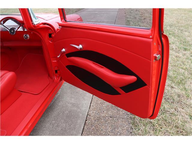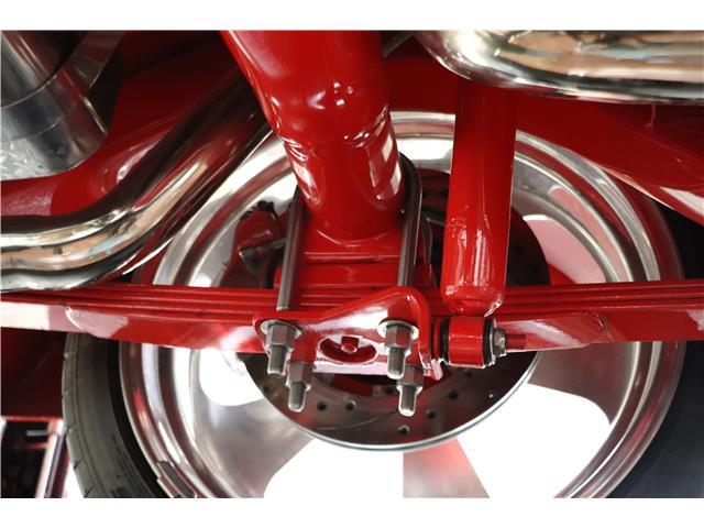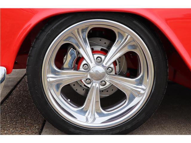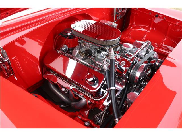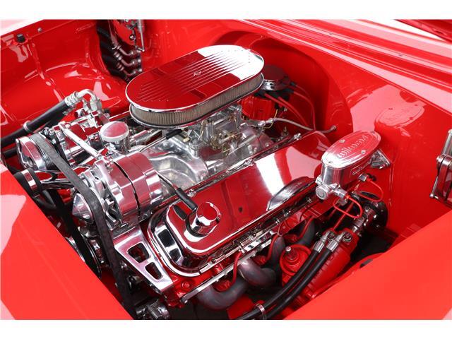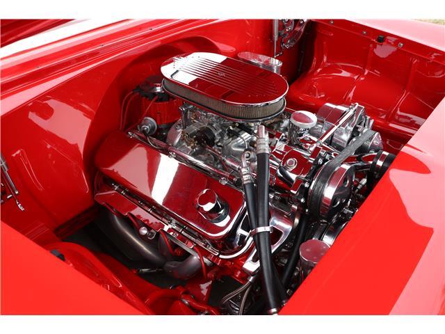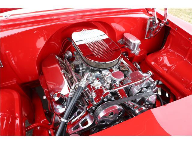 This gorgeous 150 Custom’s changes are the result of a four-year custom build completed in 2012. With an emphasis on show quality appearance, the 454 CI V-8 Chevy big-block engine now features a polished intake manifold, valve covers and custom air cleaner. There are quality headers feeding into a dual exhaust system to let it breathe freely, with the engine itself tucked down into a beautifully redone engine bay with a smoothed firewall, custom radiator cover and billet hood hinges. Behind this is a 4-speed manual transmission, and this car’s refreshing also included power steering and Wilwood 4-wheel disc brakes with polished surfacing visible behind the wheels.That sense of quality continues inside with the customized red leather interior.