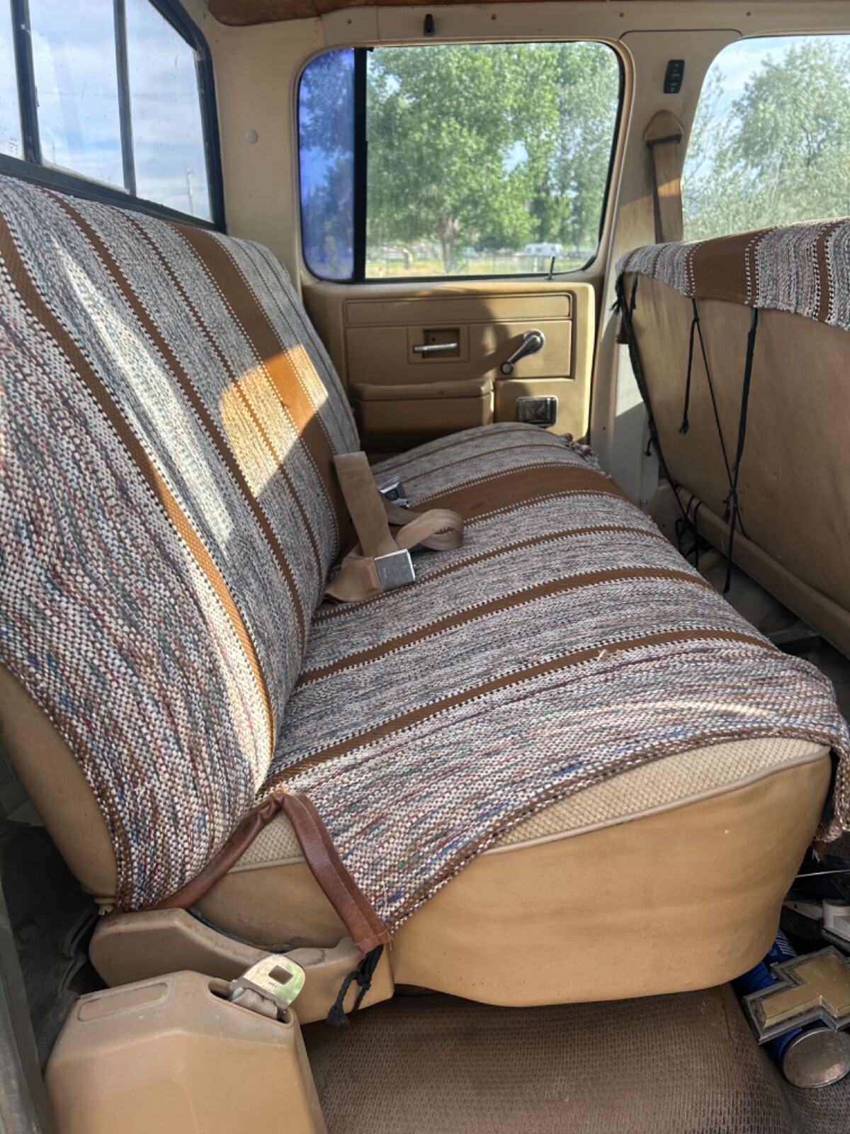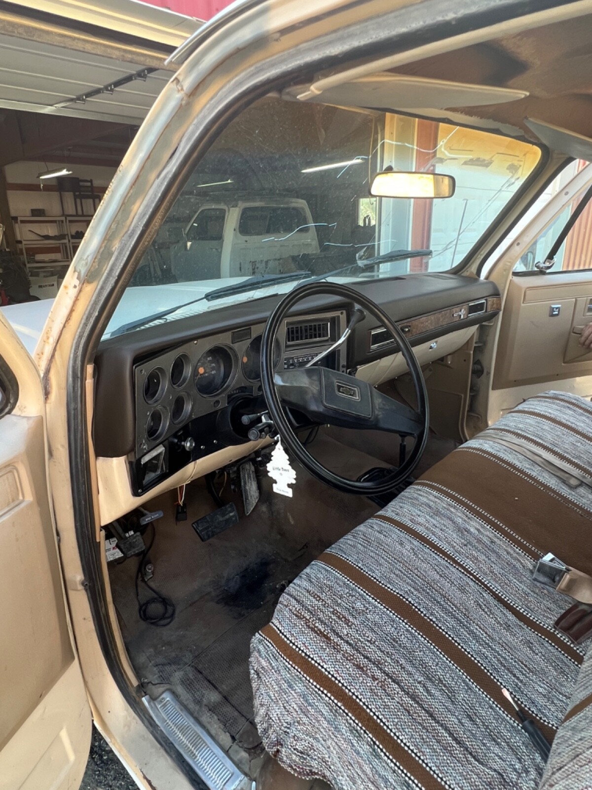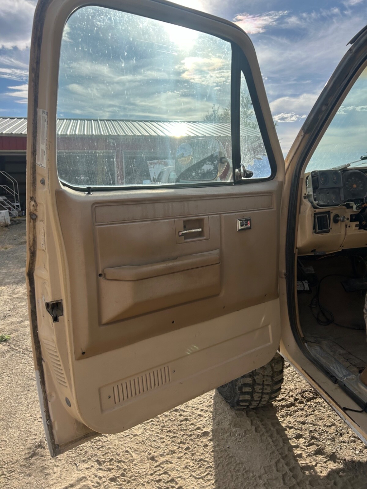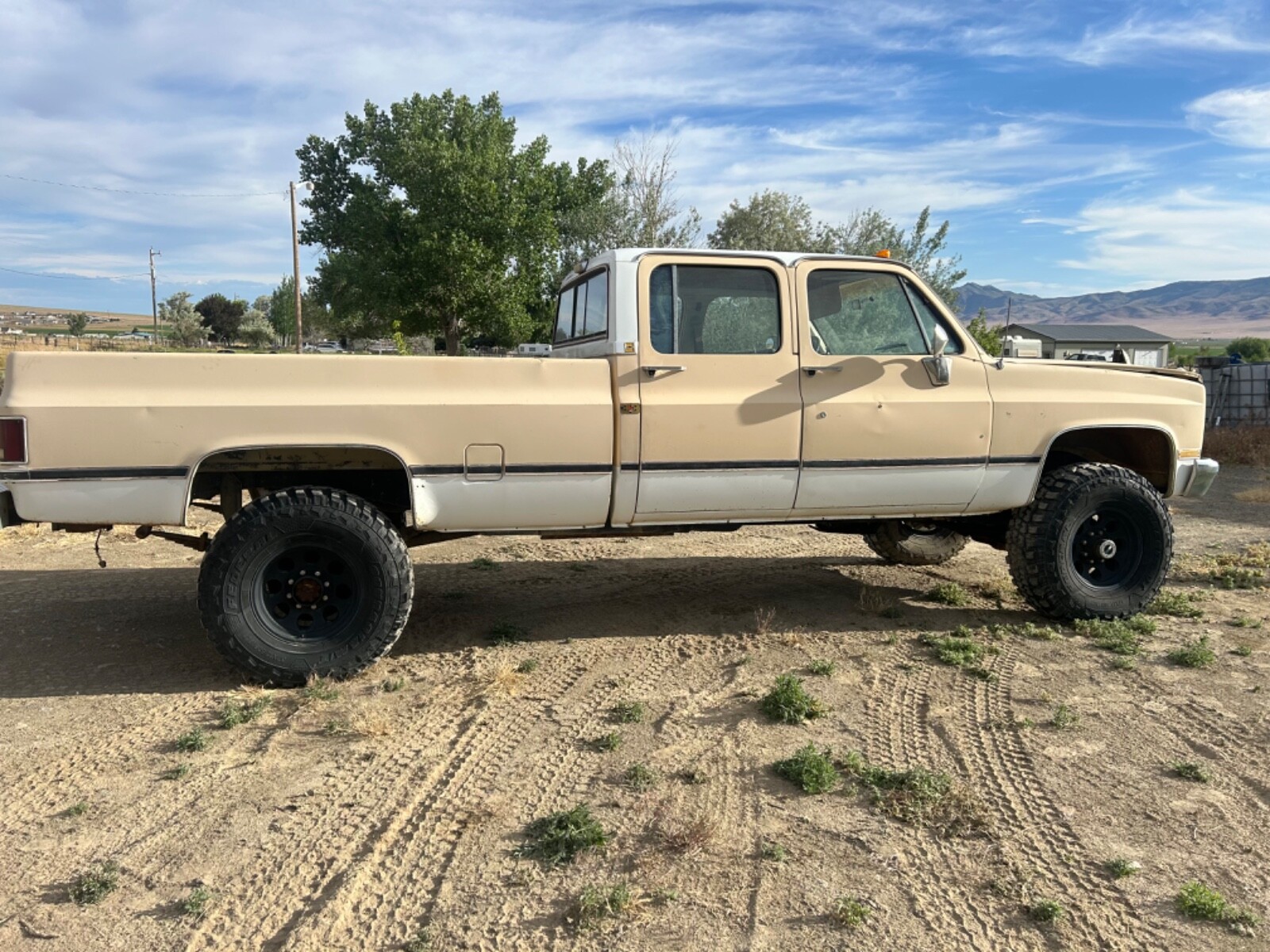 1985 crew cab K30 . 350 SBC, 400 trans , NP205 T case, Dana 60 front end, 14 bolt FF rear end. New aftermarket dash, Power front windows, manual rear. Fresh oil change, new spark plugs, new mechanical fuel pump, new trans fluid and filter, new valve cover gaskets, new battery. Truck needs headliner, carpet kit, 4WD light is always illuminated, factory AC doesn’t blow cold, crack in windshield. 4in lift with 37in tires, 17in wheels. No rusted out panels on truck, only slight surface. Truck is in great running and driving condition.