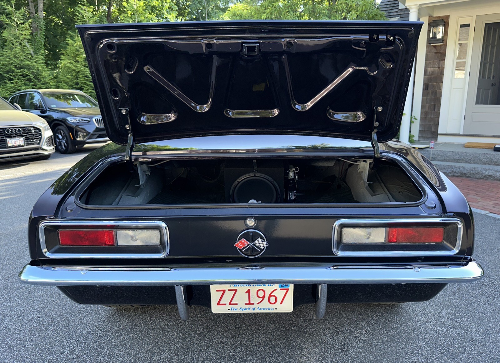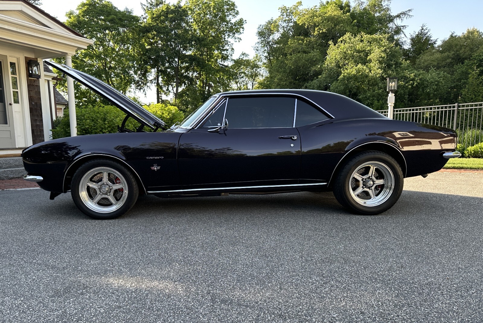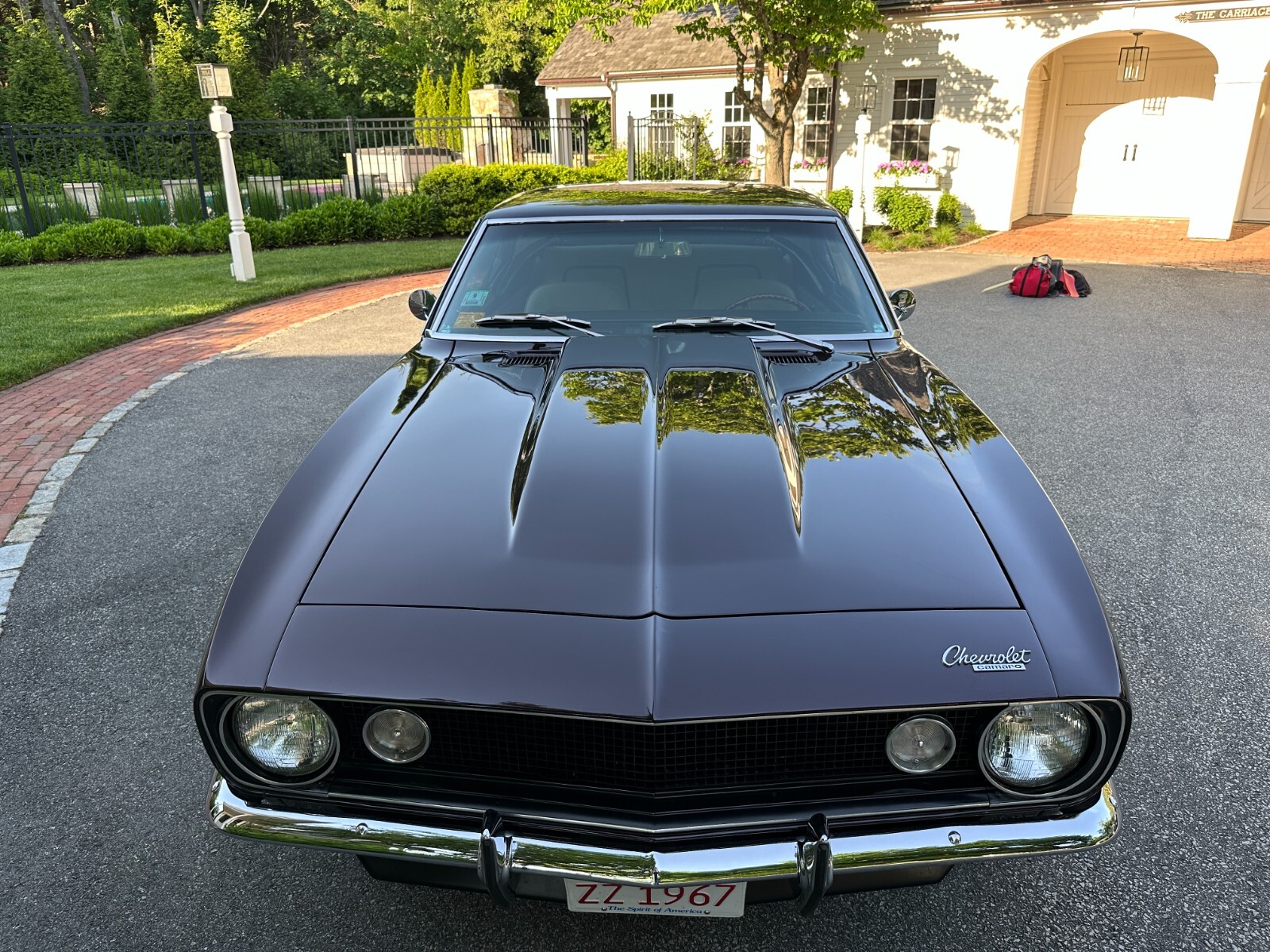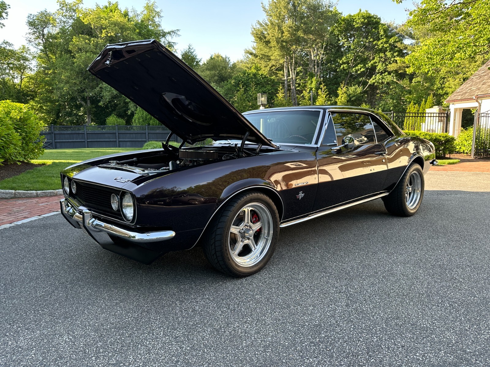 Zoom Classic Cars is pleased to present this 1967 Chevrolet Camaro Restomod Coupe. Spectacular build with all the best components and features. 2nd Owner car purchased in 2014. 1st owner bought the car in High School in 1968 when it was originally equipped with a 6 Cylinder and 3 Speed Manual transmission. The car was driven for several years, always maintained and garaged and then put into long term storage. In the 2000s, the owner, who is an experienced machinist and professional rebuilder and restorer of classic cars embarked on a multiple year journey to reimagine his high school car into a high end restomod muscle car. The car underwent a complete frame off restoration with everything refurbished or restored to perfection. This included painting of the entire undercarriage with paint complimenting the body color that continues into the engine compartment. Engine replaced with a chromed out 350CI Crate ZZ385 situated in an immaculate engine compartment and coupled with a 5 Speed TREMEC with Hurst shifter, 12 Bolt Richmond rear end with Eaton POSI traction and 3:73 Gears. The car was expertly prepped and repainted in a slightly custom version of its original Royal Plum color and still looks flawless today. All the body panels on the car line up beautifully, the car doors shut solidly and all the chrome and badging is intact and in excellent condition. The Royal Plum color is accented beautifully by the original Parchment interior which is still in excellent overall condition and features aftermarket gauges from Stewart Warner and Maximum Performance. Other new features added include power steering, 4 way Power windows, Vintage AC, Power Baer disc brakes slotted and drilled all around, electric fan, custom gas shut-off underneath the car, stainless steel dual exhaust, adjustable air shocks and hood with cowl scoop. The owner even fashioned a custom gas cap made from a 1962 Corvette hood emblem as shown. When delivered in 2014 to the current owner, the car was like new and had been driven only about 2K miles since the rebuild. The current owner took the car to another HP level by upgrading to the ZZ430 with a kit that included a new cam, intake and a Bigger Carb. A new Ram Clutch was also added. A new high end stereo system with AUX connection, Euro Speakers and subwoofer in the trunk were expertly installed and delivers incredible sound. A K40 Radar system was installed with warning lights alerting the driver with color coded signals in the dash. The car rides on Nitto tires mounted on Billet Specialties Chrome wheels. Current owner has driven the car approximately 5K miles since purchase, has meticulously maintained the vehicle and has always kept it garage. The car shows 60K+ original miles which are the actual miles on the car. The car runs, drives and handles 100%. Comes with loads of documentation including photos documenting the restoration process, receipts from the current owner for all upgrades and maintenance done in the last 10 years and a 67 Camaro owner's manual. Car is stored in MA with clean title in the owner's name. See Videos of the car on our YouTube Channel. Final Payment due by Fed Wire or Cash upon pickup of vehicle. Thanks for Looking.