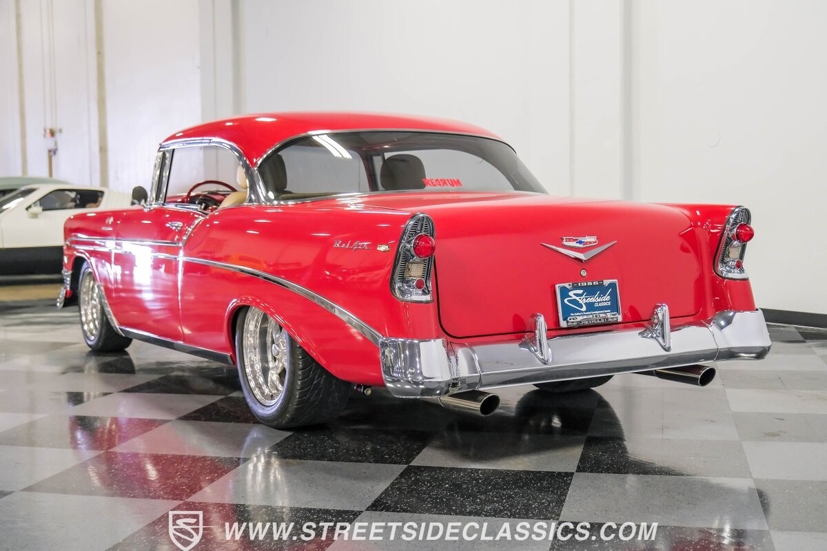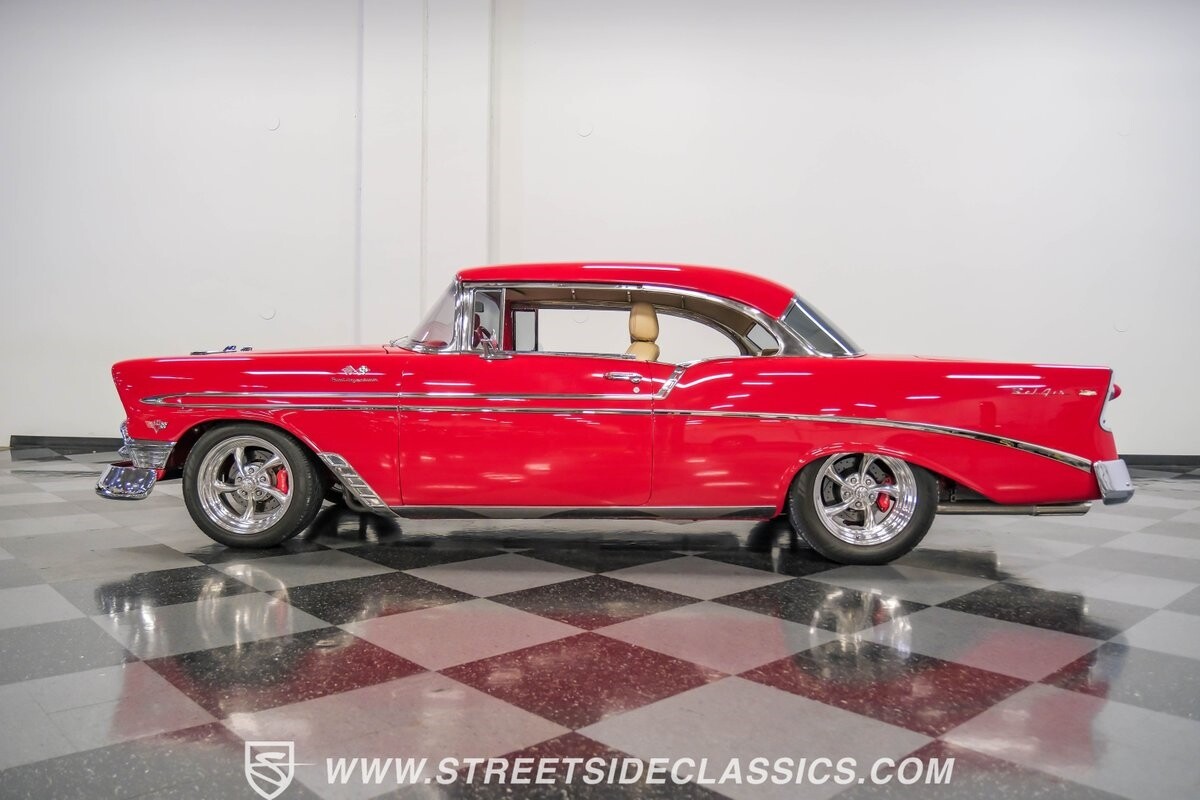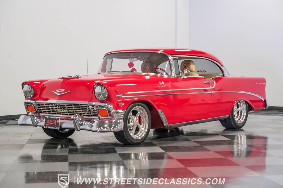 The 1956 Chevrolet Bel Air hardtop restomod is already desire on wheels, but one look at this one, and you can tell it has even more to offer. There's amazing paint, glittering chrome, a full custom luxury interior, air conditioning, an overdrive transmission, four-wheel disc brakes, serious fuel-injected V8 power, and much more. It's been built for the true enthusiast who loves to drive everywhere and win trophies on arrival.