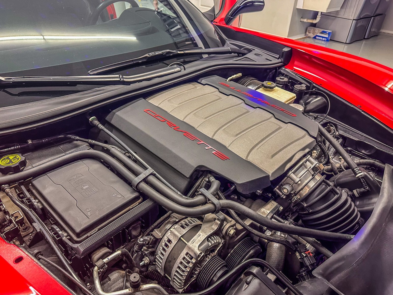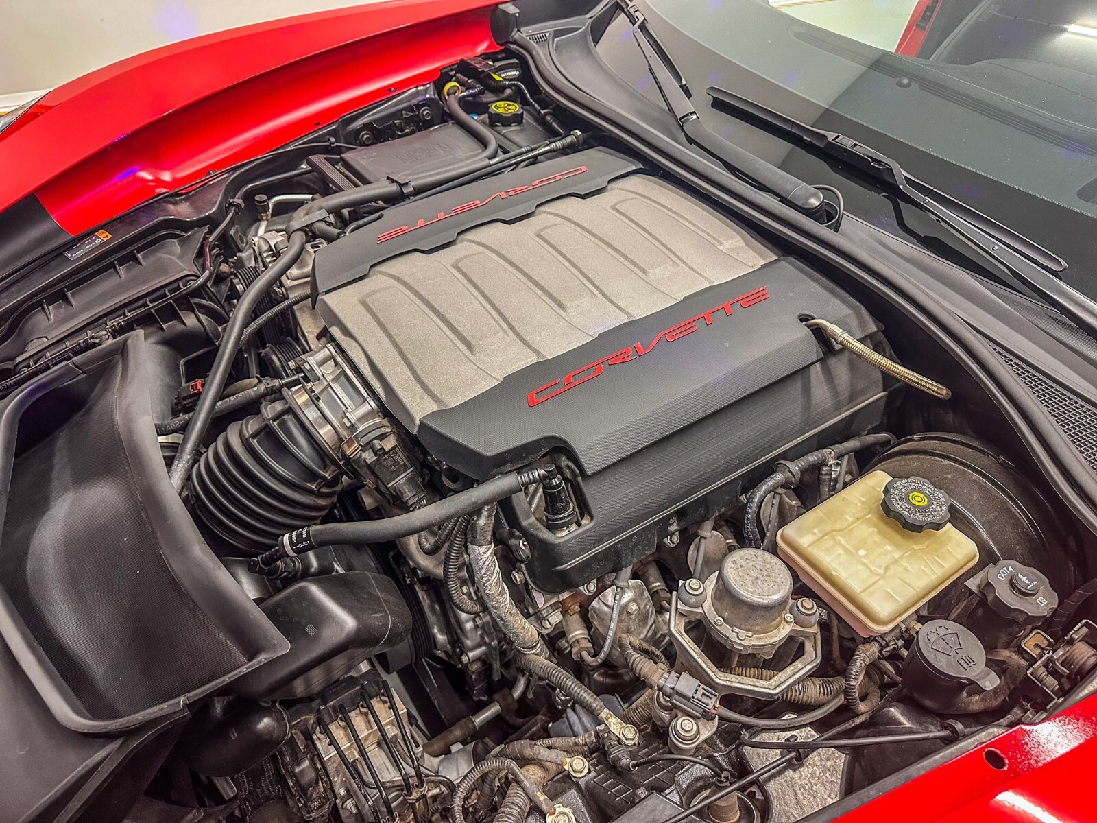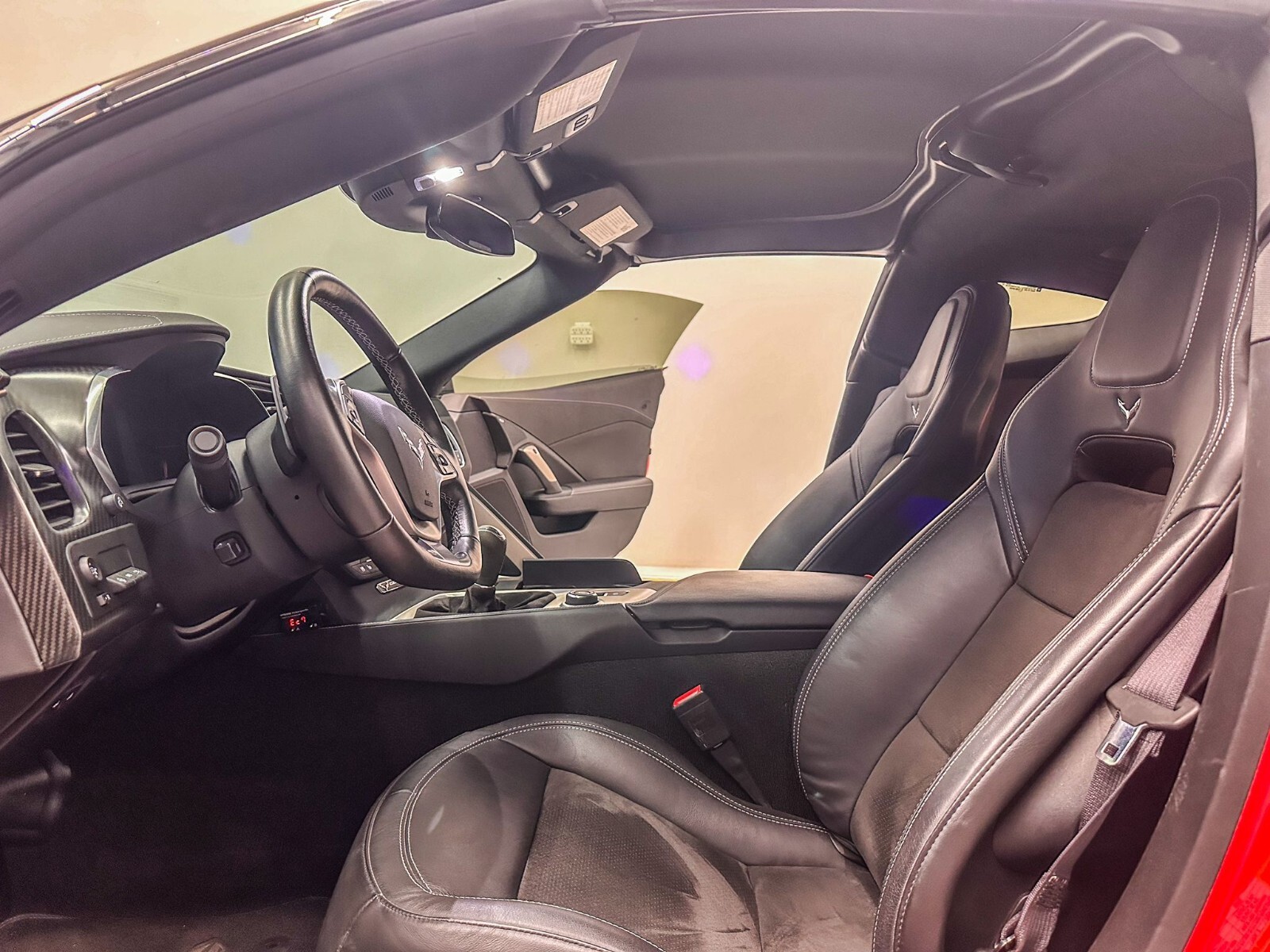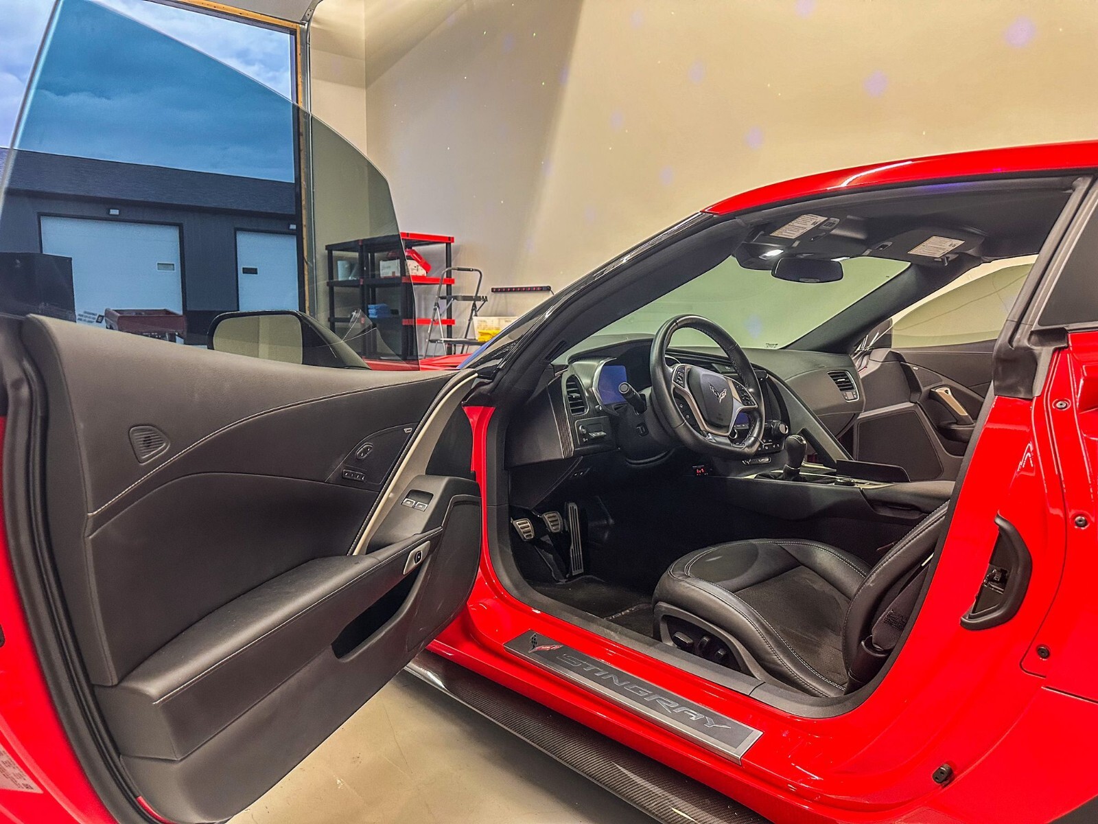 Black Star Corvette. No Reserve . Custom, tastefully modified professionally upgraded with stage 2 spoiler kit. Racing stripes, and raised weive carbon fiber graphics. Tinted, 25 on sides 50 on front. Carbon fiber hood insert. 7 speed manual with rev match! 25k miles. Car is gorgeous and a head turner. Exhaust tone is selectable, roof is removable. Heated/cooled seats, heads-up display, g-force meter, bose sound system. Everything works as it should, regularly serviced by dealership, nothing to hide or complain about, car is clean, runs beautifully and ready to go! Shipping available anywhere.