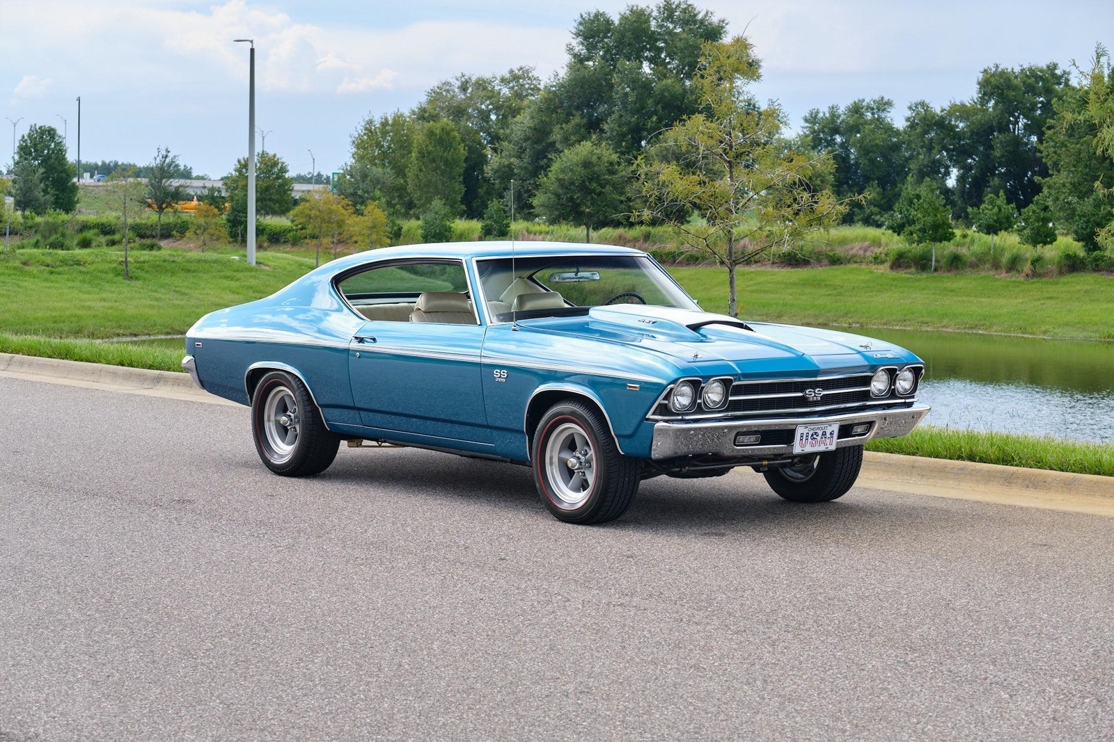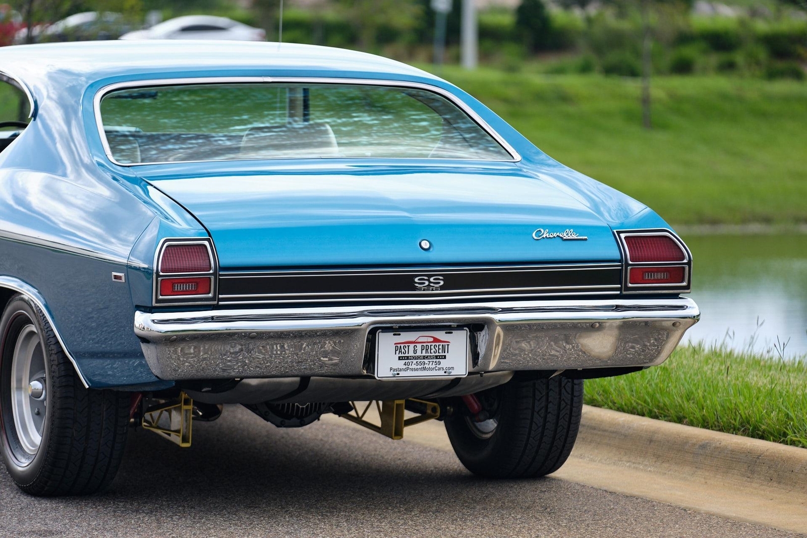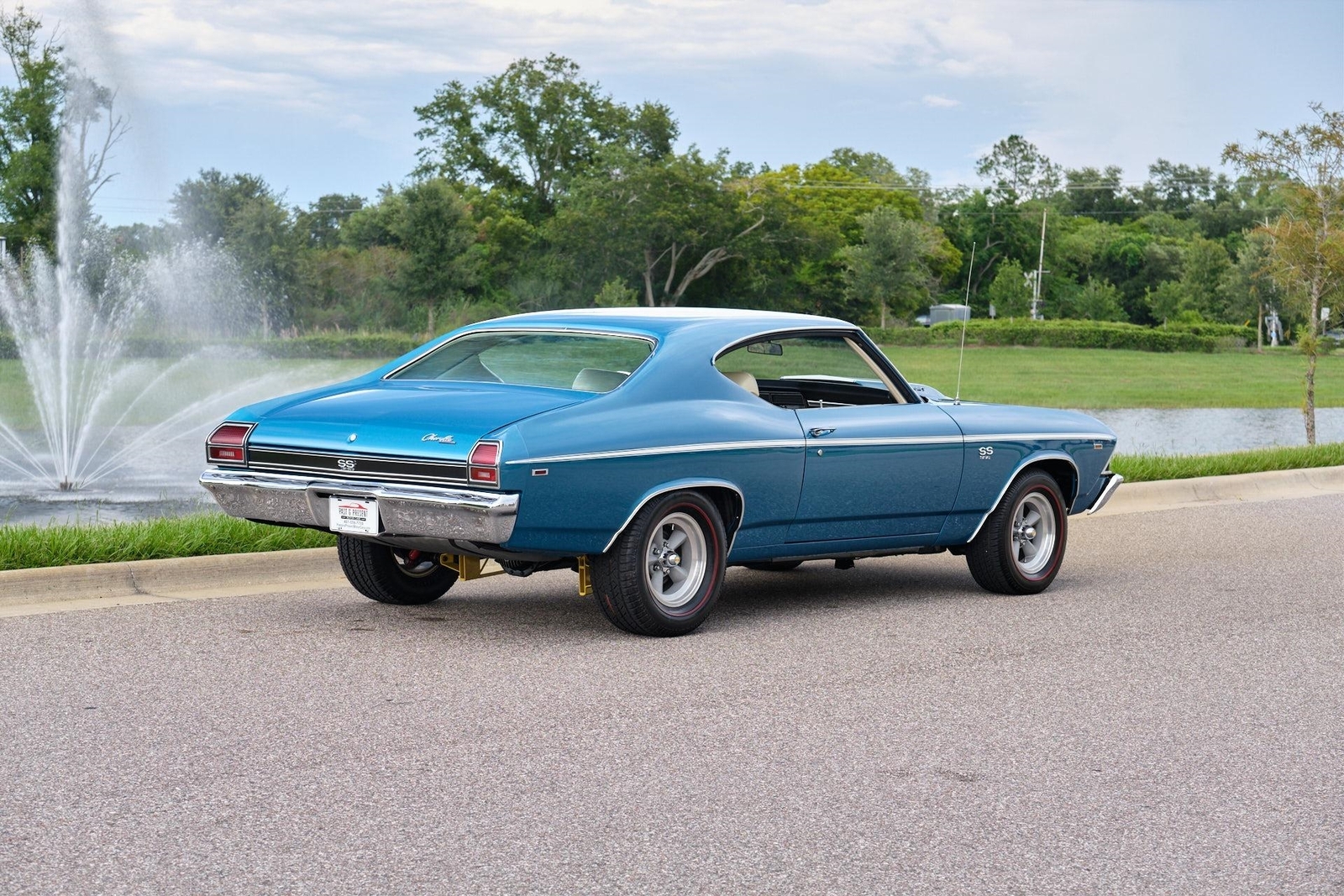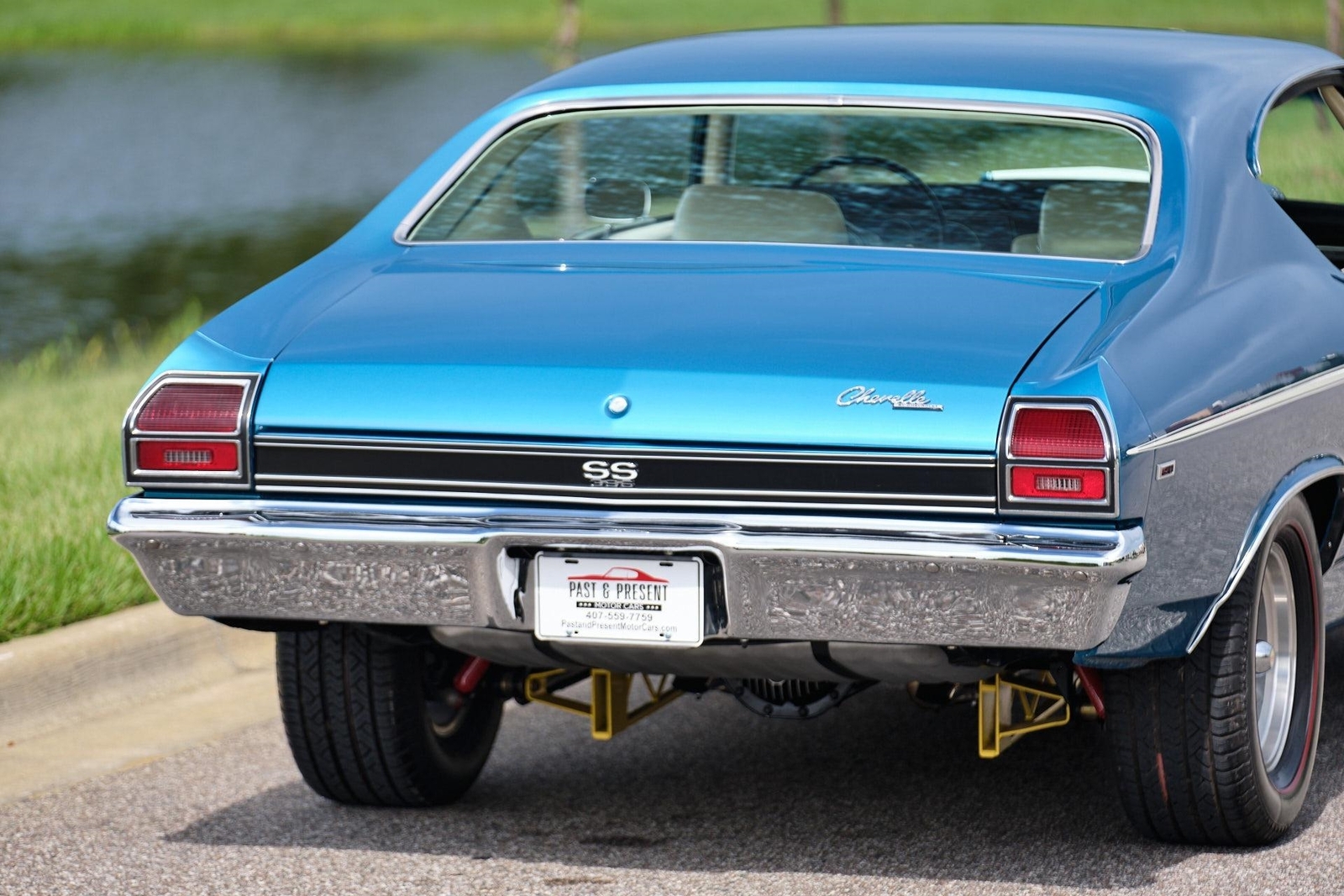 1969 Chevrolet Chevelle SS Baldwin Motion Tribute, 427 - L88, Car Was frame off restored with only 1,000 Miles since completion, 427 - L88 Big Block V8 Engine, Forged Crank, Dimple Rods, Roller Rockers, 12.5 to 1 Compression, Engine Casting # 3963512 dated August 1969, Open Chamber GM Aluminum Snowflake Heads # 3946074, NOS Short block, Muncie M-22 Rock Crusher 4 Speed Manual Transmission, GM 12 Bolt Posi Traction Rear End, 4.56 to 1 Gear (3.55 Posi Case), GM 3 Core Radiator, Day 2 Build, NOS Ladder Bar powder coated yellow, Powder coated frame, suspension components, rear end, seat springs and seat frames, Exhaust Cut Outs that sound great! During the restoration the car was rebodied with a Rust-Free Arizona, 837 Alternator, 418 Starter, AM/FM Radio, Legendary Reproduction Seat Covers in White Parchment Interior, 6 Way Power Front Seat (Currently Not Working), Hurst Competition plus shifter linkage, New Production dated glass. VFN Specialty Made Fiberglass Stinger Hood with underneath finished, Torq Thrust 15 x 8 Wheels, Reproduction Red Line Radials from Diamond Back, N.O.S. NMW Ladder Bars. Correct Dated and Numbered Starter, correctly dated water pump, dated 837 Alternator, 3 Core Harrisson Radiator, Holley 850 DP Carburetor, Electronic Ignition replacing points, Powder coated Inner Fenders, New Ram Clutch, Pressure Plate and Flywheel - Billett. This is an amazing car, It is FAST and the condition is stunning as is the color scheme of Lemans Blue with White Stripe and Parchment Interior. This is a MUST SEE Chevelle SS! While we do our best to provide the highest quality muscle cars with an honest and reliable description and realize the importance of transparency when selling vehicles. That being said, we have not built, modified, changed or personally owned this vehicle. Whether this vehicle is consigned or owned by Past & Present Motor Cars we do not know the vehicles complete history since new. We want to be clear and try to answer any questions our customers might have prior to purchasing. Additionally, we not only welcome but we encourage 3rd party independent inspections. Please inquire prior to purchase to make sure the advertised vehicle has not already been sold. We list our vehicles on multiple websites and a vehicle can sell at any time. If a customer chooses to purchase sight unseen (many of our customers choose this option) the customer accepts the vehicle AS IS and WHERE IS and understands we cannot address concerns after purchase. For this reason, it's important all concerns are addressed prior to purchase. We make every effort to present accurate and reliable information, but use of this information is voluntary, and should only be deemed reliable after an independent review of its accuracy, completeness, and timeliness. It is the sole responsibility of the customer to verify the existence of options, accessories and the vehicle condition before time of sale. Financing is Available with low rates and Vehicle Shipping is available from our Showroom to your Garage. A Classic Car Warranty is Available for Purchase from a 3rd Party. Please speak to our Sales Associate or Company Representative for more information. Our team is working and available anytime by Phone or Text for your convenience at 407-559-7759. Thank you for your interest!