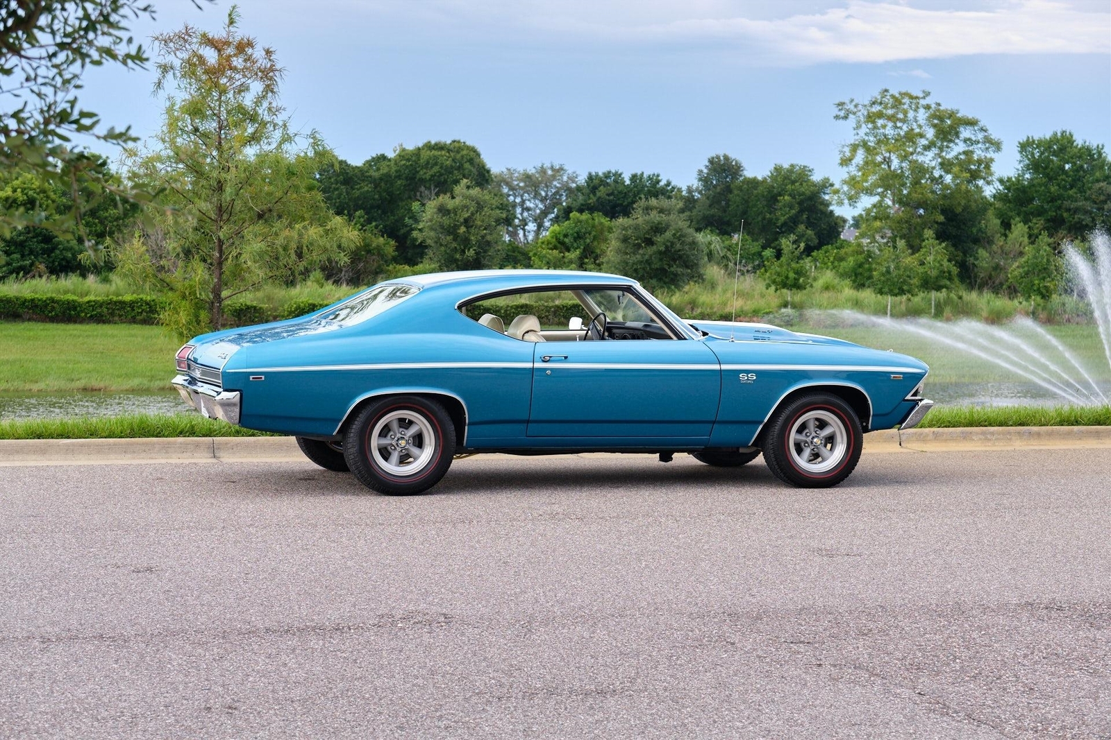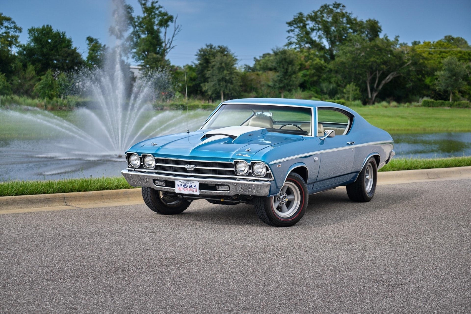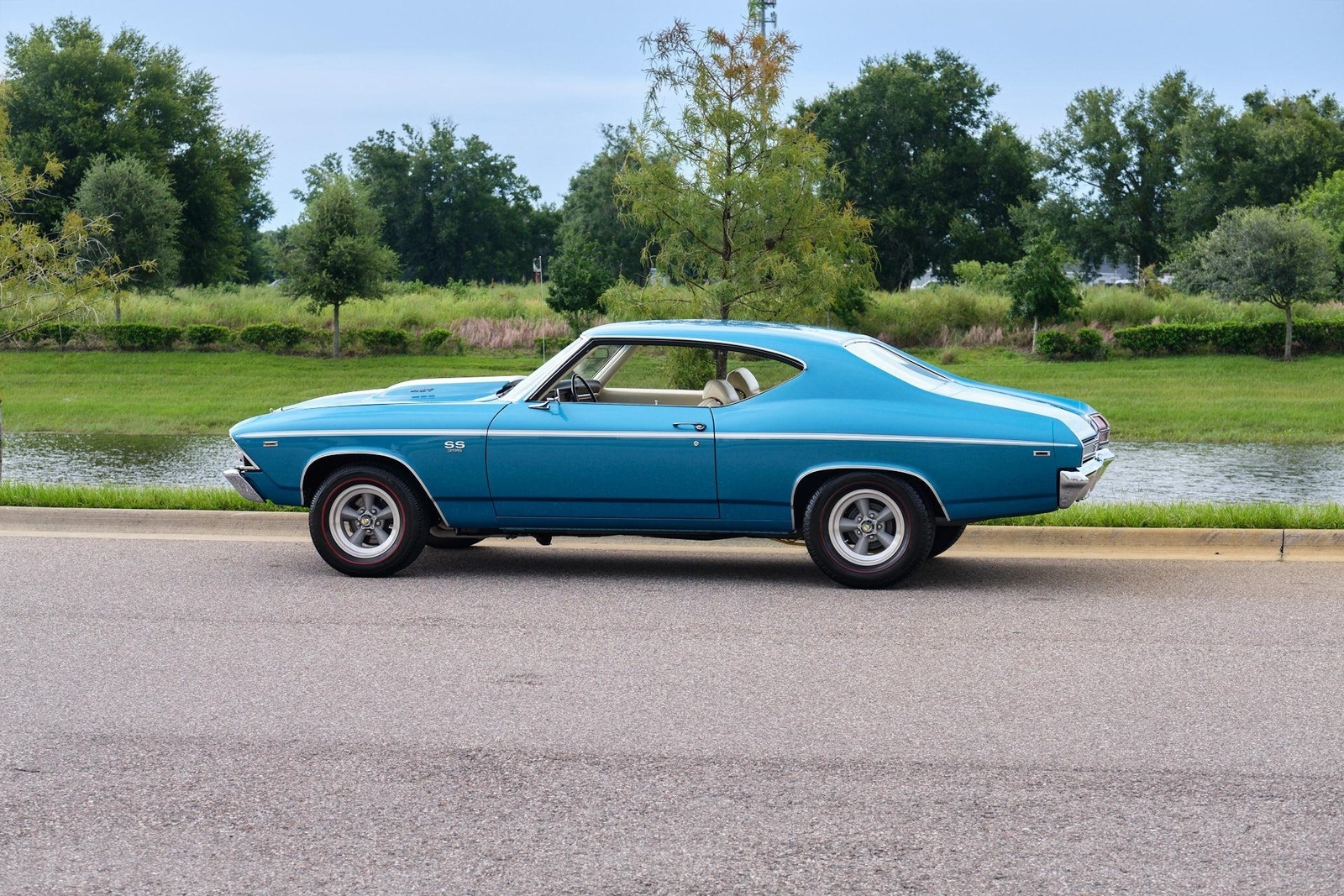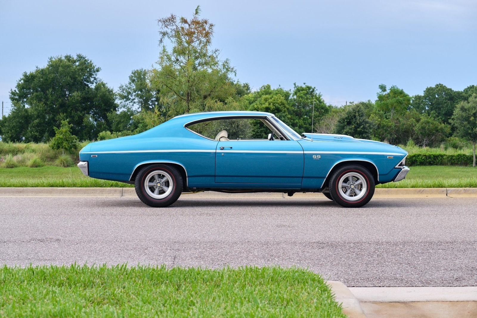 1969 Chevrolet Chevelle SS Baldwin Motion Tribute, 427 - L88, Car Was frame off restored with only 1,000 Miles since completion, 427 - L88 Big Block V8 Engine, Forged Crank, Dimple Rods, Roller Rockers, 12.5 to 1 Compression, Engine Casting # 3963512 dated August 1969, Open Chamber GM Aluminum Snowflake Heads # 3946074, NOS Short block, Muncie M-22 Rock Crusher 4 Speed Manual Transmission, GM 12 Bolt Posi Traction Rear End, 4.56 to 1 Gear (3.55 Posi Case), GM 3 Core Radiator, Day 2 Build, NOS Ladder Bar powder coated yellow, Powder coated frame, suspension components, rear end, seat springs and seat frames, Exhaust Cut Outs that sound great! During the restoration the car was rebodied with a Rust-Free Arizona, 837 Alternator, 418 Starter, AM/FM Radio, Legendary Reproduction Seat Covers in White Parchment Interior, 6 Way Power Front Seat (Currently Not Working), Hurst Competition plus shifter linkage, New Production dated glass. VFN Specialty Made Fiberglass Stinger Hood with underneath finished, Torq Thrust 15 x 8 Wheels, Reproduction Red Line Radials from Diamond Back, N.O.S. NMW Ladder Bars. Correct Dated and Numbered Starter, correctly dated water pump, dated 837 Alternator, 3 Core Harrisson Radiator, Holley 850 DP Carburetor, Electronic Ignition replacing points, Powder coated Inner Fenders, New Ram Clutch, Pressure Plate and Flywheel - Billett. This is an amazing car, It is FAST and the condition is stunning as is the color scheme of Lemans Blue with White Stripe and Parchment Interior. This is a MUST SEE Chevelle SS! While we do our best to provide the highest quality muscle cars with an honest and reliable description and realize the importance of transparency when selling vehicles. That being said, we have not built, modified, changed or personally owned this vehicle. Whether this vehicle is consigned or owned by Past & Present Motor Cars we do not know the vehicles complete history since new. We want to be clear and try to answer any questions our customers might have prior to purchasing. Additionally, we not only welcome but we encourage 3rd party independent inspections. Please inquire prior to purchase to make sure the advertised vehicle has not already been sold. We list our vehicles on multiple websites and a vehicle can sell at any time. If a customer chooses to purchase sight unseen (many of our customers choose this option) the customer accepts the vehicle AS IS and WHERE IS and understands we cannot address concerns after purchase. For this reason, it's important all concerns are addressed prior to purchase. We make every effort to present accurate and reliable information, but use of this information is voluntary, and should only be deemed reliable after an independent review of its accuracy, completeness, and timeliness. It is the sole responsibility of the customer to verify the existence of options, accessories and the vehicle condition before time of sale. Financing is Available with low rates and Vehicle Shipping is available from our Showroom to your Garage. A Classic Car Warranty is Available for Purchase from a 3rd Party. Please speak to our Sales Associate or Company Representative for more information. Our team is working and available anytime by Phone or Text for your convenience at 407-559-7759. Thank you for your interest!