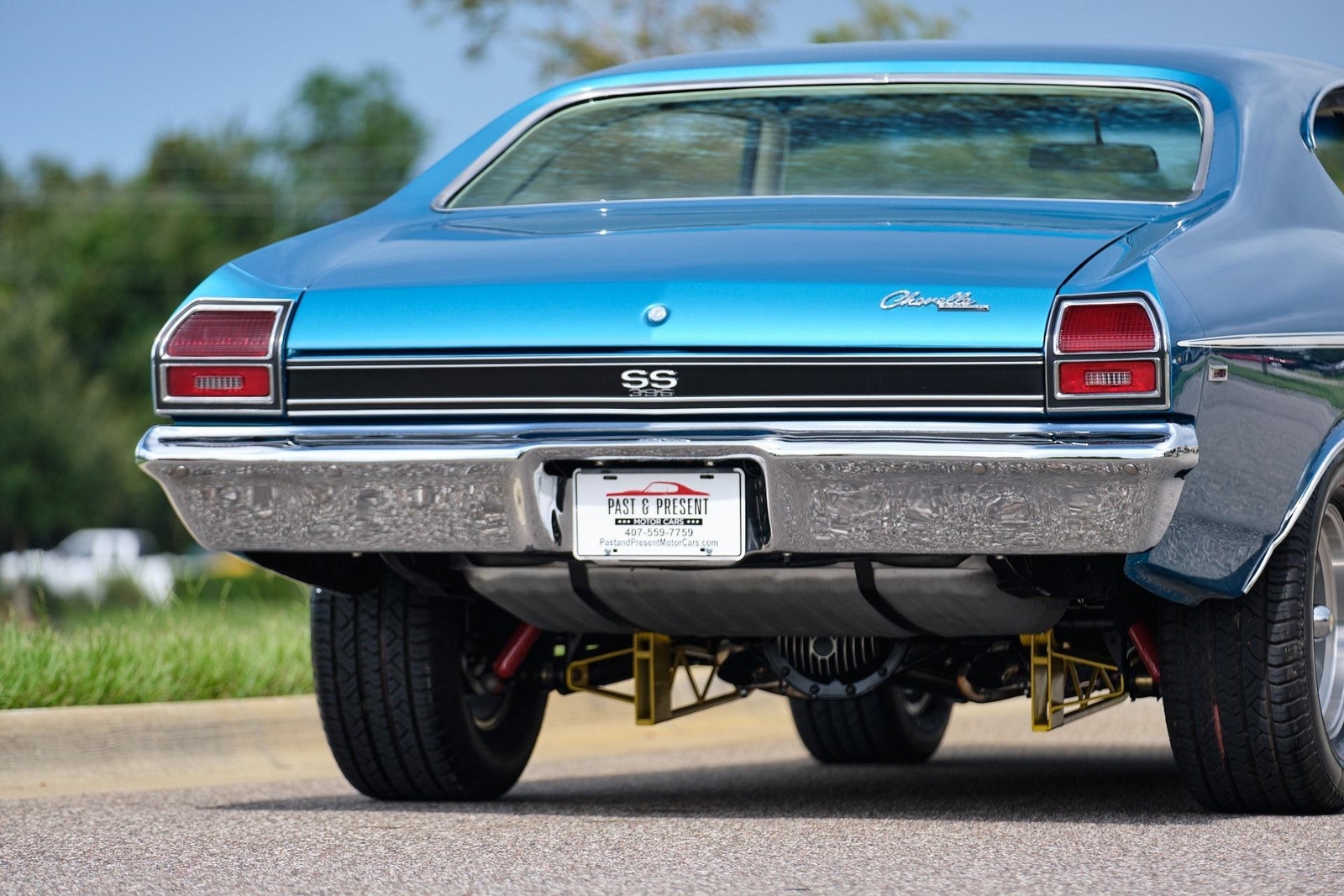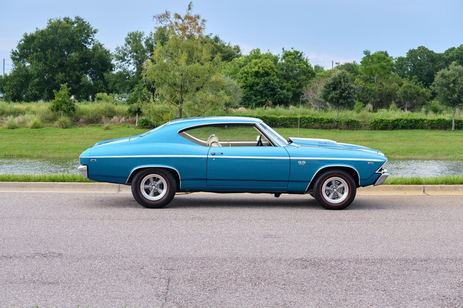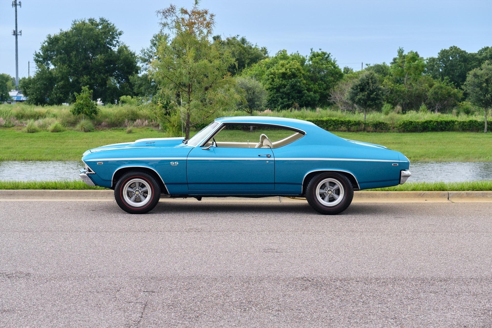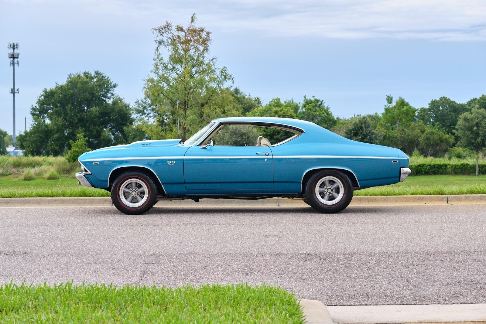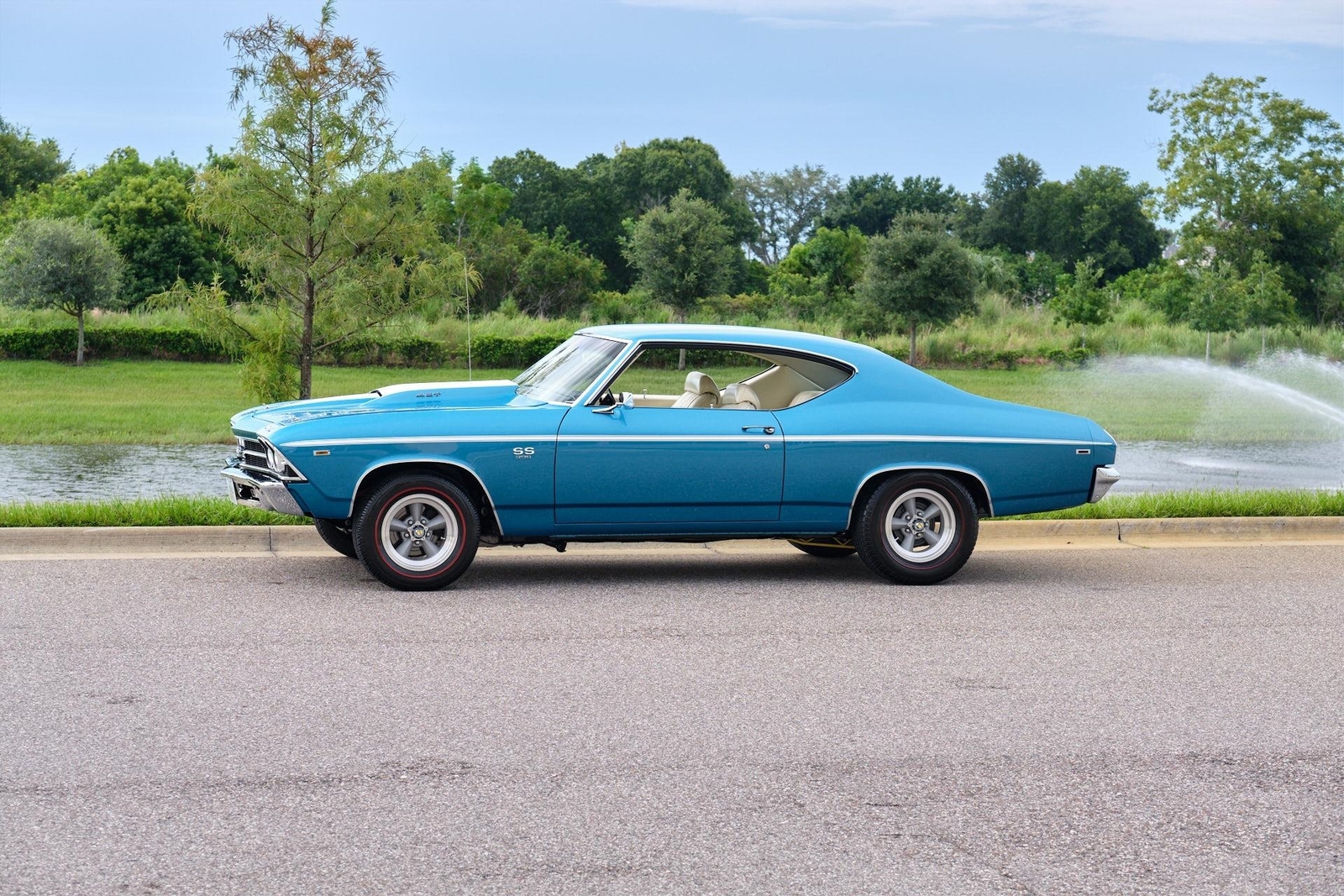 1969 Chevrolet Chevelle SS Baldwin Motion Tribute, 427 - L88, Car Was frame off restored with only 1,000 Miles since completion, 427 - L88 Big Block V8 Engine, Forged Crank, Dimple Rods, Roller Rockers, 12.5 to 1 Compression, Engine Casting # 3963512 dated August 1969, Open Chamber GM Aluminum Snowflake Heads # 3946074, NOS Short block, Muncie M-22 Rock Crusher 4 Speed Manual Transmission, GM 12 Bolt Posi Traction Rear End, 4.56 to 1 Gear (3.55 Posi Case), GM 3 Core Radiator, Day 2 Build, NOS Ladder Bar powder coated yellow, Powder coated frame, suspension components, rear end, seat springs and seat frames, Exhaust Cut Outs that sound great! During the restoration the car was rebodied with a Rust-Free Arizona, 837 Alternator, 418 Starter, AM/FM Radio, Legendary Reproduction Seat Covers in White Parchment Interior, 6 Way Power Front Seat (Currently Not Working), Hurst Competition plus shifter linkage, New Production dated glass. VFN Specialty Made Fiberglass Stinger Hood with underneath finished, Torq Thrust 15 x 8 Wheels, Reproduction Red Line Radials from Diamond Back, N.O.S. NMW Ladder Bars. Correct Dated and Numbered Starter, correctly dated water pump, dated 837 Alternator, 3 Core Harrisson Radiator, Holley 850 DP Carburetor, Electronic Ignition replacing points, Powder coated Inner Fenders, New Ram Clutch, Pressure Plate and Flywheel - Billett. This is an amazing car, It is FAST and the condition is stunning as is the color scheme of Lemans Blue with White Stripe and Parchment Interior. This is a MUST SEE Chevelle SS! While we do our best to provide the highest quality muscle cars with an honest and reliable description and realize the importance of transparency when selling vehicles. That being said, we have not built, modified, changed or personally owned this vehicle. Whether this vehicle is consigned or owned by Past & Present Motor Cars we do not know the vehicles complete history since new. We want to be clear and try to answer any questions our customers might have prior to purchasing. Additionally, we not only welcome but we encourage 3rd party independent inspections. Please inquire prior to purchase to make sure the advertised vehicle has not already been sold. We list our vehicles on multiple websites and a vehicle can sell at any time. If a customer chooses to purchase sight unseen (many of our customers choose this option) the customer accepts the vehicle AS IS and WHERE IS and understands we cannot address concerns after purchase. For this reason, it's important all concerns are addressed prior to purchase. We make every effort to present accurate and reliable information, but use of this information is voluntary, and should only be deemed reliable after an independent review of its accuracy, completeness, and timeliness. It is the sole responsibility of the customer to verify the existence of options, accessories and the vehicle condition before time of sale. Financing is Available with low rates and Vehicle Shipping is available from our Showroom to your Garage. A Classic Car Warranty is Available for Purchase from a 3rd Party. Please speak to our Sales Associate or Company Representative for more information. Our team is working and available anytime by Phone or Text for your convenience at 407-559-7759. Thank you for your interest!