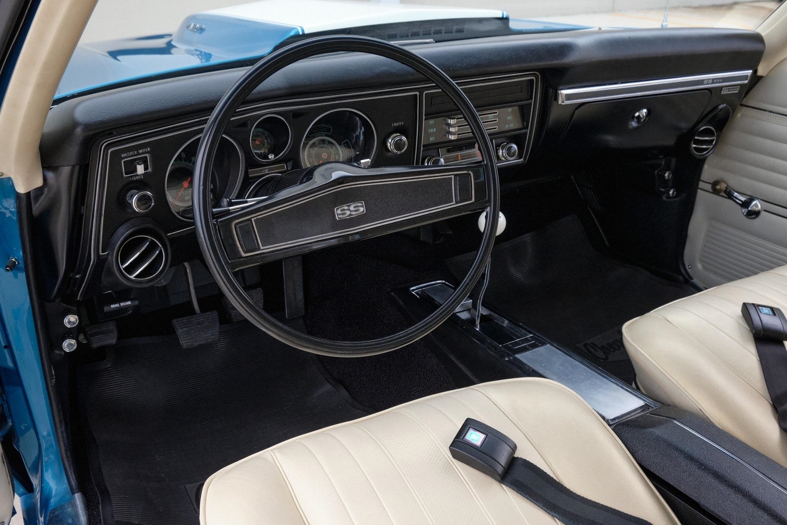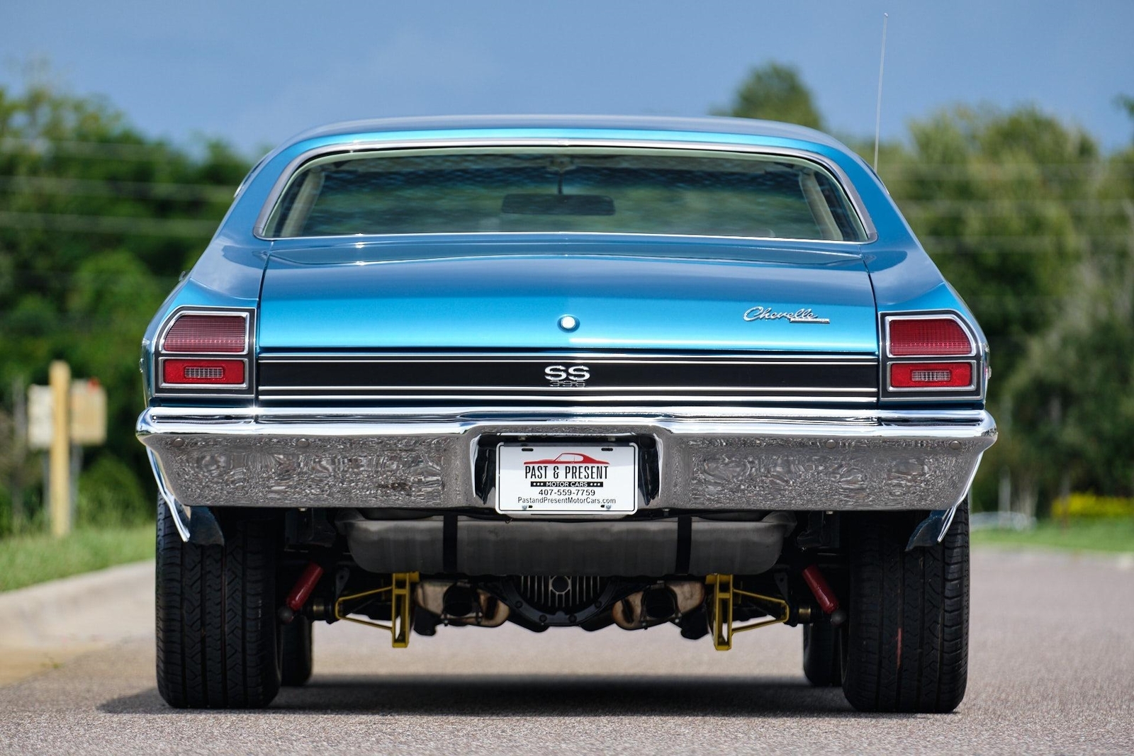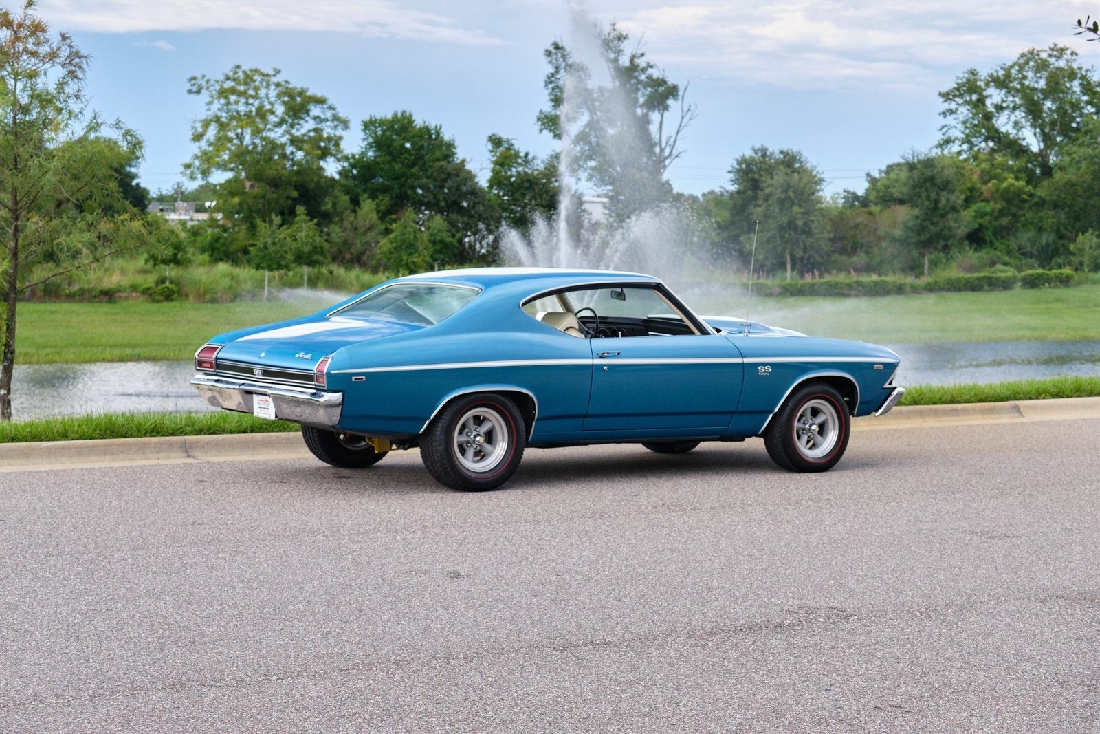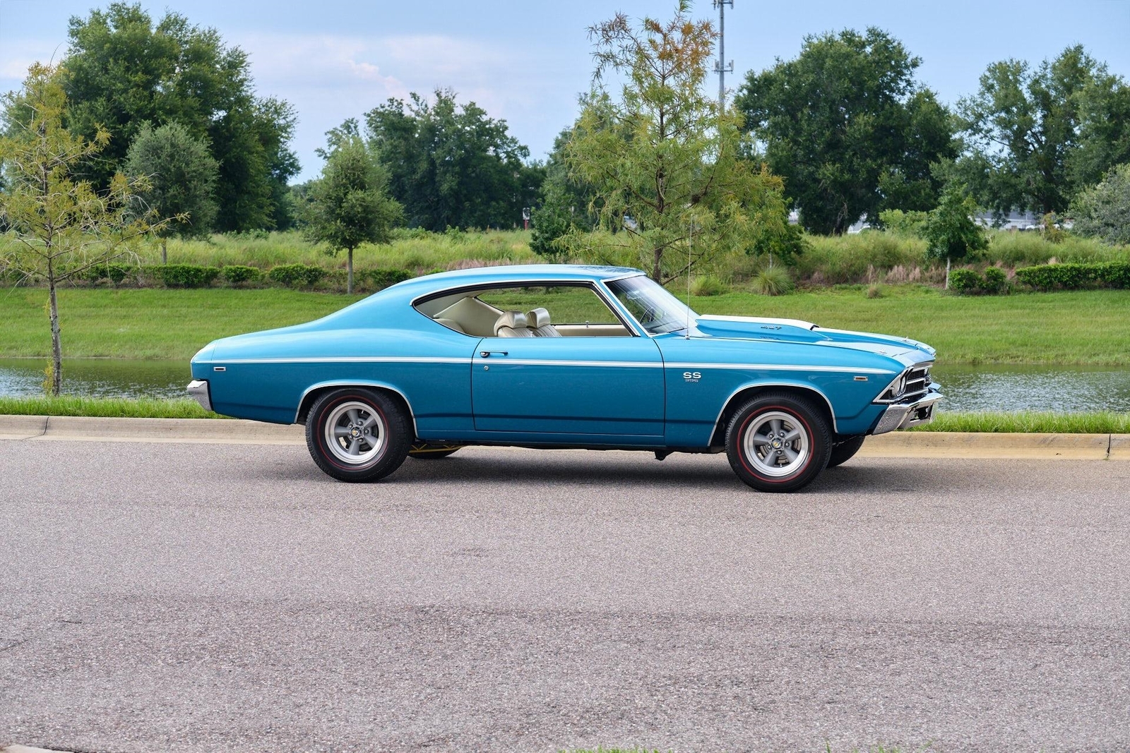1969 Chevrolet Chevelle SS Baldwin Motion Tribute, 427 - L88, Car Was frame off restored with only 1,000 Miles since completion, 427 - L88 Big Block V8 Engine, Forged Crank, Dimple Rods, Roller Rockers, 12.5 to 1 Compression, Engine Casting # 3963512 dated August 1969, Open Chamber GM Aluminum Snowflake Heads # 3946074, NOS Short block, Muncie M-22 Rock Crusher 4 Speed Manual Transmission, GM 12 Bolt Posi Traction Rear End, 4.56 to 1 Gear (3.55 Posi Case), GM 3 Core Radiator, Day 2 Build, NOS Ladder Bar powder coated yellow, Powder coated frame, suspension components, rear end, seat springs and seat frames, Exhaust Cut Outs that sound great! During the restoration the car was rebodied with a Rust-Free Arizona, 837 Alternator, 418 Starter, AM/FM Radio, Legendary Reproduction Seat Covers in White Parchment Interior, 6 Way Power Front Seat (Currently Not Working), Hurst Competition plus shifter linkage, New Production dated glass. VFN Specialty Made Fiberglass Stinger Hood with underneath finished, Torq Thrust 15 x 8 Wheels, Reproduction Red Line Radials from Diamond Back, N.O.S. NMW Ladder Bars. Correct Dated and Numbered Starter, correctly dated water pump, dated 837 Alternator, 3 Core Harrisson Radiator, Holley 850 DP Carburetor, Electronic Ignition replacing points, Powder coated Inner Fenders, New Ram Clutch, Pressure Plate and Flywheel - Billett. This is an amazing car, It is FAST and the condition is stunning as is the color scheme of Lemans Blue with White Stripe and Parchment Interior. This is a MUST SEE Chevelle SS! While we do our best to provide the highest quality muscle cars with an honest and reliable description and realize the importance of transparency when selling vehicles. That being said, we have not built, modified, changed or personally owned this vehicle. Whether this vehicle is consigned or owned by Past & Present Motor Cars we do not know the vehicles complete history since new. We want to be clear and try to answer any questions our customers might have prior to purchasing. Additionally, we not only welcome but we encourage 3rd party independent inspections. Please inquire prior to purchase to make sure the advertised vehicle has not already been sold. We list our vehicles on multiple websites and a vehicle can sell at any time. If a customer chooses to purchase sight unseen (many of our customers choose this option) the customer accepts the vehicle AS IS and WHERE IS and understands we cannot address concerns after purchase. For this reason, it's important all concerns are addressed prior to purchase. We make every effort to present accurate and reliable information, but use of this information is voluntary, and should only be deemed reliable after an independent review of its accuracy, completeness, and timeliness. It is the sole responsibility of the customer to verify the existence of options, accessories and the vehicle condition before time of sale. Financing is Available with low rates and Vehicle Shipping is available from our Showroom to your Garage. A Classic Car Warranty is Available for Purchase from a 3rd Party. Please speak to our Sales Associate or Company Representative for more information. Our team is working and available anytime by Phone or Text for your convenience at 407-559-7759. Thank you for your interest!