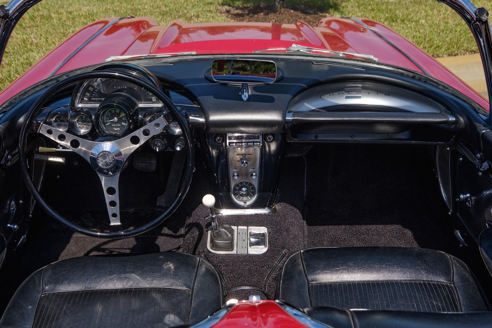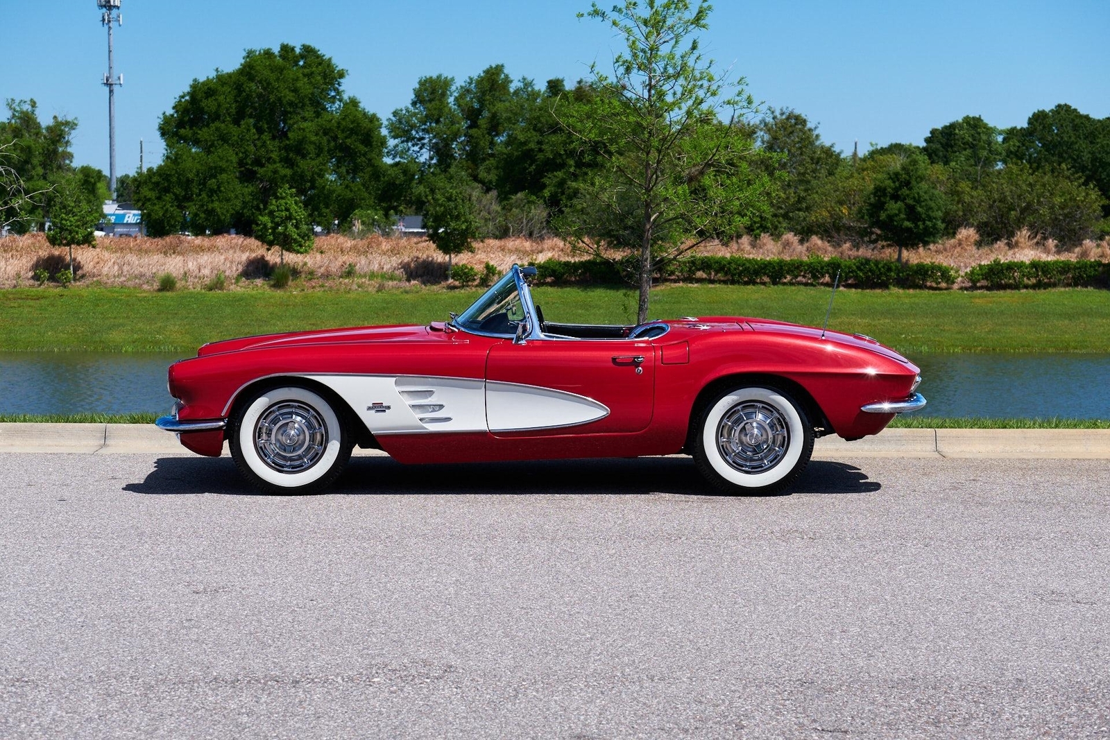 1961 Chevrolet Corvette Red Convertible is a timeless classic that exudes both style and performance. Featuring a 283 V8 engine paired with a 4-speed manual transmission, this iconic vehicle offers a thrilling driving experience that enthusiasts crave. The striking Roman Red exterior paint color enhances the Corvette's sleek and sporty design, turning heads wherever it goes. In addition to its impressive performance capabilities, this Corvette is in great running condition. The car includes a hard top, although not photographed, adds versatility to the vehicle, allowing for a seamless transition between open-air cruising and enclosed driving. It is worth noting that this Corvette has a reissued VIN, a detail that does not detract from the overall appeal of the car. The vehicle has been meticulously maintained and cared for. Overall, this 1961 Chevrolet Corvette Red Convertible is a true gem for collectors and enthusiasts alike. With its period correct engine, manual transmission, and impeccable running condition, this classic car offers a driving experience like no other. Whether cruising down the highway or turning heads at a car show, this Corvette is sure to leave a lasting impression wherever it goes. While we do our best to provide the highest quality muscle cars with an honest and reliable description and realize the importance of transparency when selling vehicles. That being said, we have not built, modified, changed or personally owned this vehicle. Whether this vehicle is consigned or owned by Past & Present Motor Cars we do not know the vehicles complete history since new. We want to be clear and try to answer any questions our customers might have prior to purchasing. Additionally, we not only welcome but we encourage 3rd party independent inspections. Please inquire prior to purchase to make sure the advertised vehicle has not already been sold. We list our vehicles on multiple websites and a vehicle can sell at any time. If a customer chooses to purchase sight unseen (many of our customers choose this option) the customer accepts the vehicle AS IS and WHERE IS and understands we cannot address concerns after purchase. For this reason, it's important all concerns are addressed prior to purchase. We make every effort to present accurate and reliable information, but use of this information is voluntary, and should only be deemed reliable after an independent review of its accuracy, completeness, and timeliness. It is the sole responsibility of the customer to verify the existence of options, accessories and the vehicle condition before time of sale. Financing is Available with low rates and Vehicle Shipping is available from our Showroom to your Garage. A Classic Car Warranty is Available for Purchase from a 3rd Party. Please speak to our Sales Associate or Company Representative for more information. Our team is working and available anytime by Phone or Text for your convenience at 407-559-7759. Thank you for your interest!