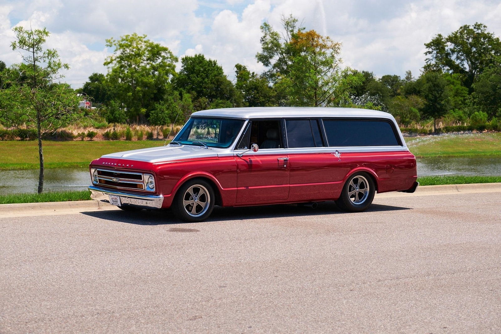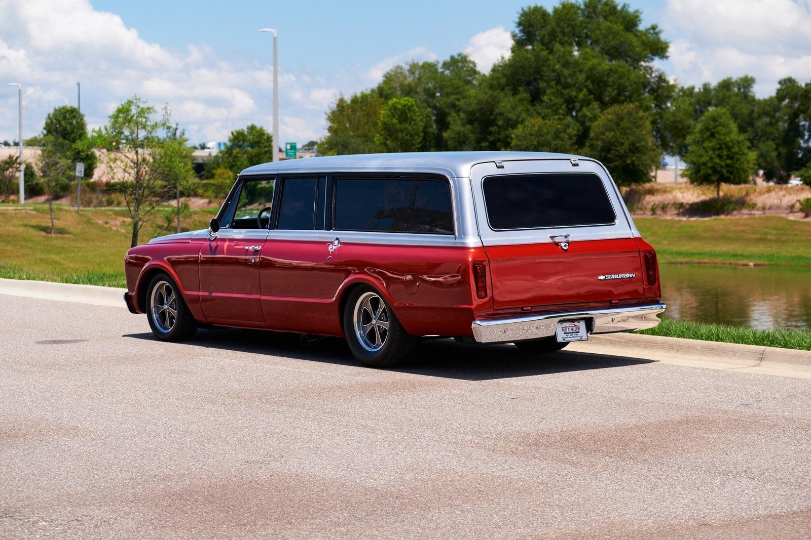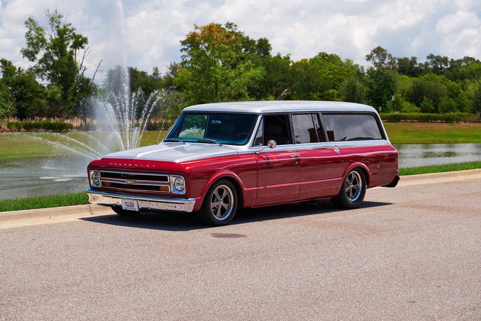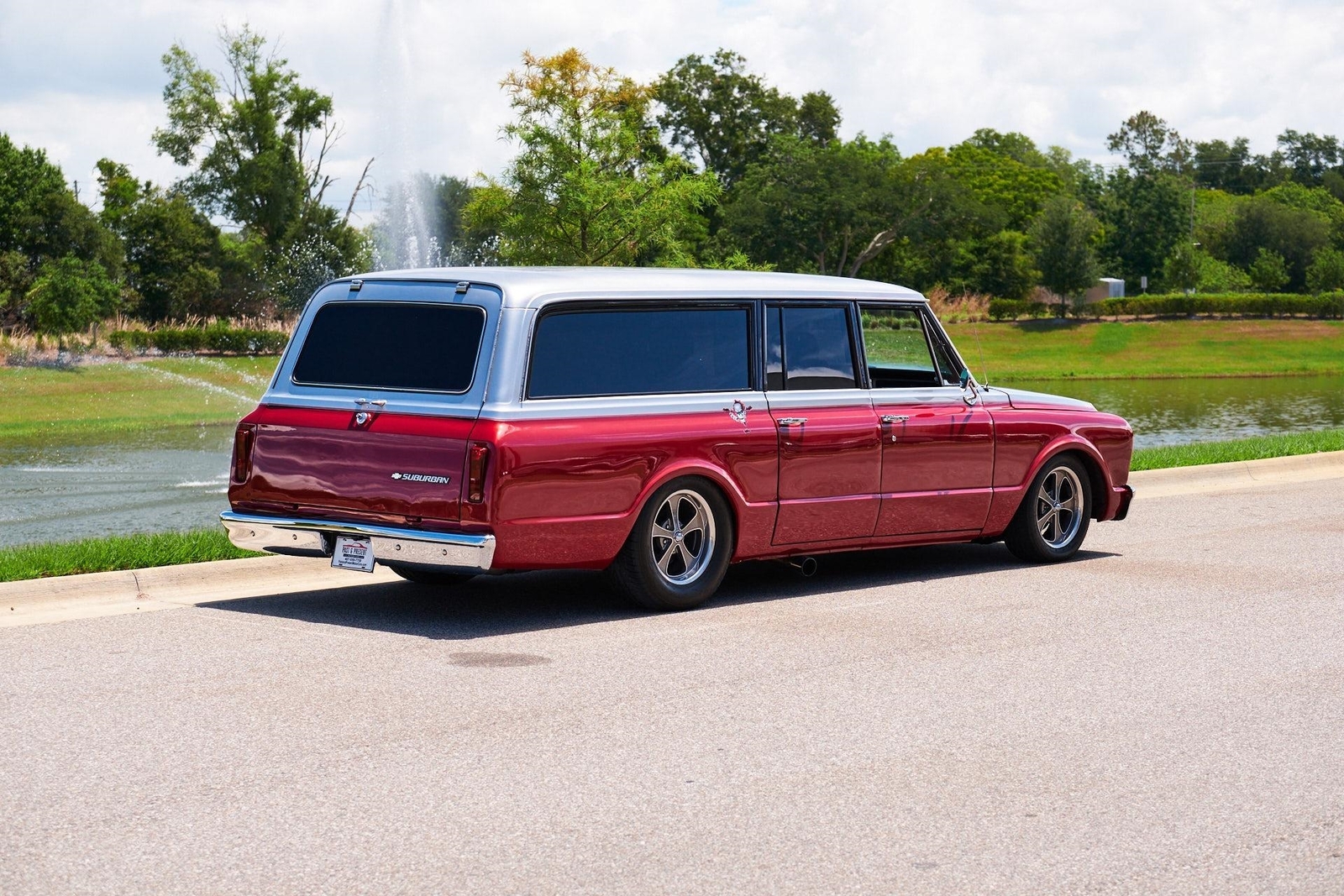 1968 Chevrolet Suburban 3 Door SUV a beautifully restored and customized 1968 Chevrolet Suburban 3 Door SUV, a classic blend of vintage style and modern upgrades. This Suburban is powered by a strong 350 V8 engine paired with an automatic transmission and features air conditioning for added comfort. With a striking two-tone paint job, custom interior, and a lowered stance, this vehicle stands out in any crowd. Discover the perfect blend of classic style and modern functionality with this beautifully restored 1968 Chevy Suburban. This vehicle is packed with custom features and upgrades, making it a standout choice for any classic car enthusiast. **Engine and Performance:** - **350 Engine:** Runs and drives perfectly, offering reliable power and performance. - **700R Transmission:** Shifts smoothly through all gears, providing a seamless driving experience. **Suspension and Comfort:** - **Custom Rear Air Bag Suspension:** Combined with shocks for a smooth and comfortable ride. - **Ice Cold Air Conditioning (Vintage Air):** Ensuring comfort in any weather. **Audio and Electronics:** - **Retrosound Radio System:** Enhanced with a custom amp and speaker setup for premium sound quality. - **New Auto Meter Gauges:** Providing accurate and stylish instrumentation. **Exterior and Interior:** - **Custom Two-Tone Paint Job:** A striking and meticulously finished exterior. - **Custom Wheels with New Tires:** Offering excellent traction and a sleek look. - **Custom Leather Interior:** In perfect condition, featuring rear wood panels, a new headliner, and a carpet kit. **Engine Bay and Exhaust:** - **Fully Dressed Engine:** With all chrome accessories and headers for a polished look. - **Dual Side Exhaust:** Adding both style and performance. **Braking and Handling:** - **Front Disc Brakes:** For reliable stopping power. - **Power Steering:** Enhancing maneuverability and ease of driving. **Additional Features:** - **B&M Shifter and Custom Steering Wheel:** Adding to the vehicle's custom feel. - **Rear Backup Camera:** For added safety and convenience. - **All Lights Working Properly:** Ensuring visibility and safety. **Highlights:** - **Drive Anywhere:** This Suburban is extremely reliable and ready for long drives or daily commutes. - **Open to Trades:** Flexible on trade options for the right offer. This 1968 Chevy Suburban is a unique and reliable vehicle, combining classic charm with modern upgrades. Its custom features and meticulous restoration make it an excellent choice for those seeking both style and functionality in a classic vehicle. Don't miss the opportunity to own this exceptional Suburban! While we do our best to provide the highest quality muscle cars with an honest and reliable description and realize the importance of transparency when selling vehicles. That being said, we have not built, modified, changed or personally owned this vehicle. Whether this vehicle is consigned or owned by Past & Present Motor Cars we do not know the vehicles complete history since new. We want to be clear and try to answer any questions our customers might have prior to purchasing. Additionally, we not only welcome but we encourage 3rd party independent inspections. Please inquire prior to purchase to make sure the advertised vehicle has not already been sold. We list our vehicles on multiple websites and a vehicle can sell at any time. If a customer chooses to purchase sight unseen (many of our customers choose this option) the customer accepts the vehicle AS IS and WHERE IS and understands we cannot address concerns after purchase. For this reason, it's important all concerns are addressed prior to purchase. We make every effort to present accurate and reliable information, but use of this information is voluntary, and should only be deemed reliable after an independent review of its accuracy, completeness, and timeliness. It is the sole responsibility of the customer to verify the existence of options, accessories and the vehicle condition before time of sale. Financing is Available with low rates and Vehicle Shipping is available from our Showroom to your Garage. A Classic Car Warranty is Available for Purchase from a 3rd Party. Please speak to our Sales Associate or Company Representative for more information. Our team is working and available anytime by Phone or Text for your convenience at 407-559-7759. Thank you for your interest!