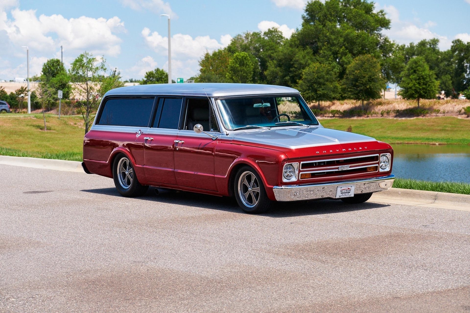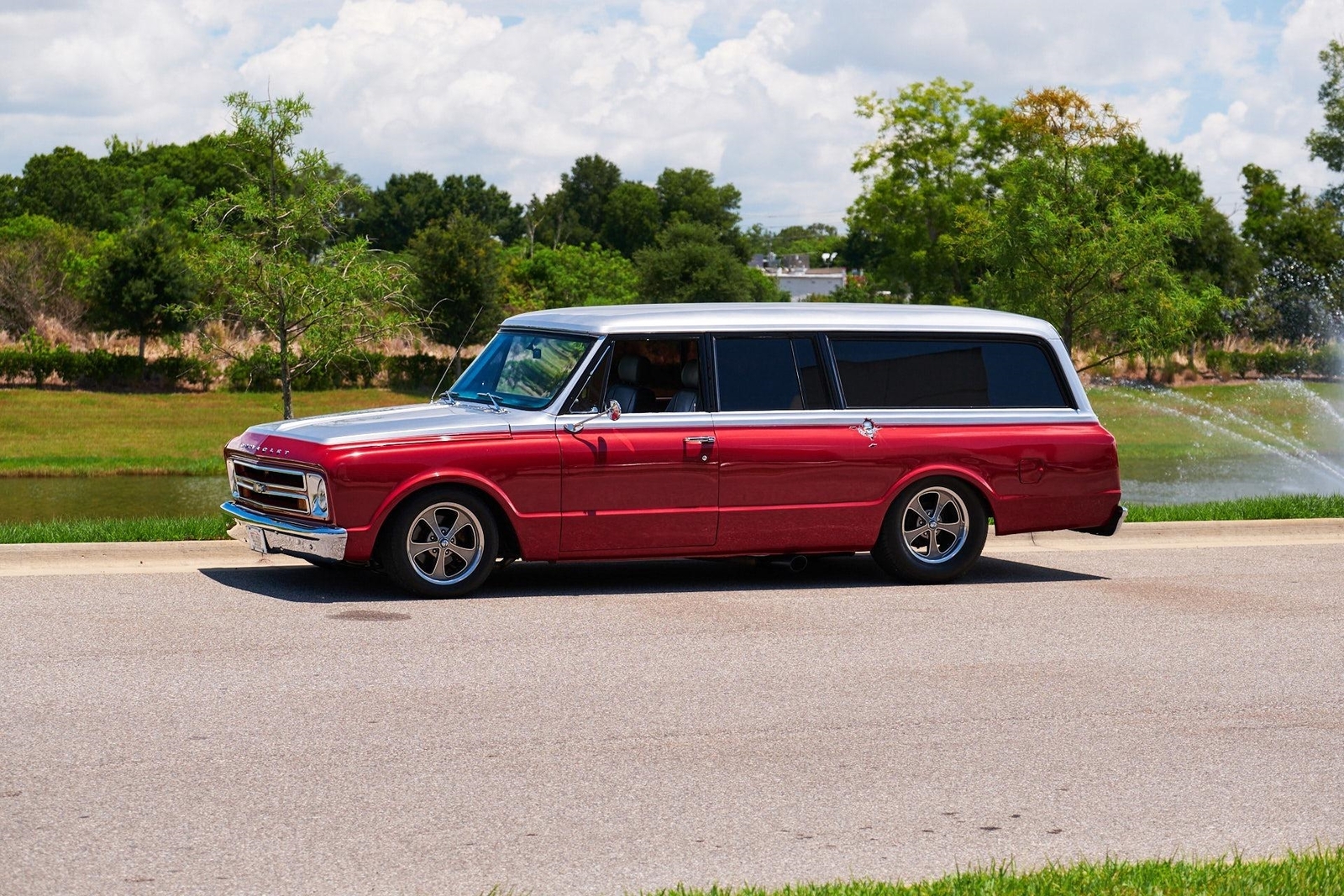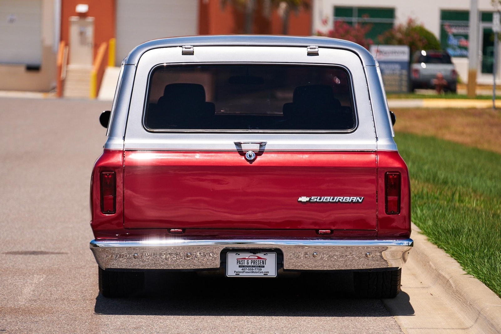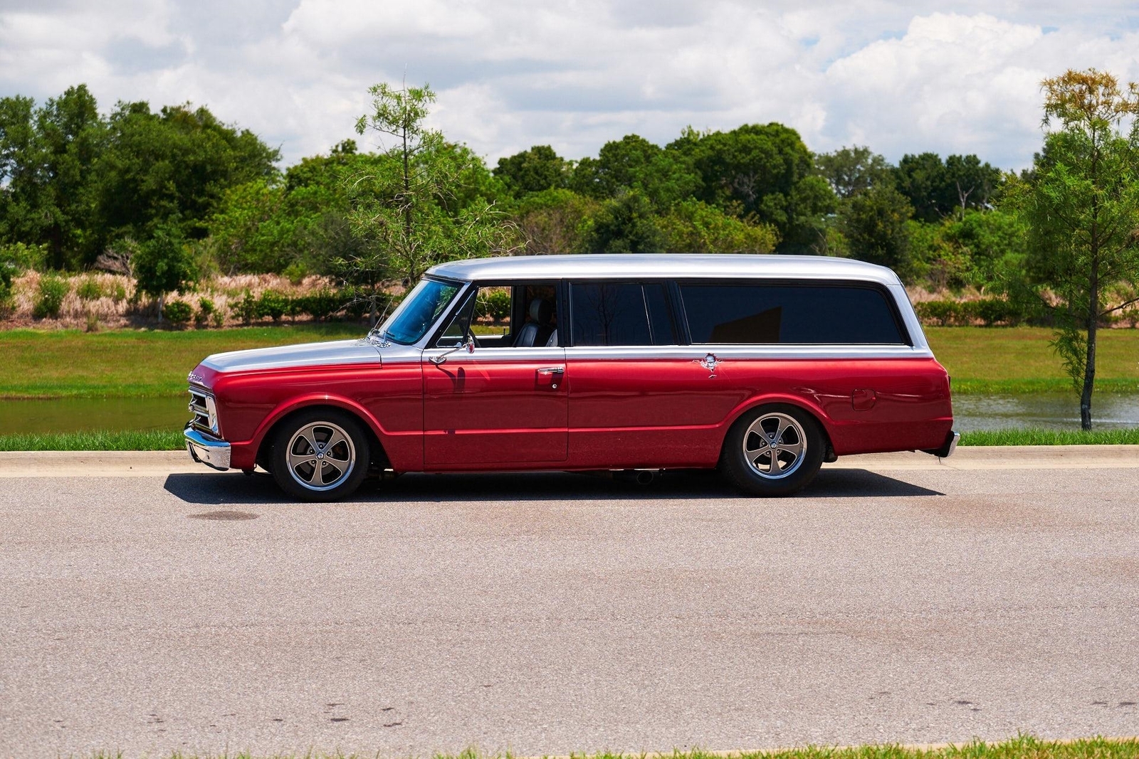 1968 Chevrolet Suburban 3 Door SUV a beautifully restored and customized 1968 Chevrolet Suburban 3 Door SUV, a classic blend of vintage style and modern upgrades. This Suburban is powered by a strong 350 V8 engine paired with an automatic transmission and features air conditioning for added comfort. With a striking two-tone paint job, custom interior, and a lowered stance, this vehicle stands out in any crowd. Discover the perfect blend of classic style and modern functionality with this beautifully restored 1968 Chevy Suburban. This vehicle is packed with custom features and upgrades, making it a standout choice for any classic car enthusiast. **Engine and Performance:** - **350 Engine:** Runs and drives perfectly, offering reliable power and performance. - **700R Transmission:** Shifts smoothly through all gears, providing a seamless driving experience. **Suspension and Comfort:** - **Custom Rear Air Bag Suspension:** Combined with shocks for a smooth and comfortable ride. - **Ice Cold Air Conditioning (Vintage Air):** Ensuring comfort in any weather. **Audio and Electronics:** - **Retrosound Radio System:** Enhanced with a custom amp and speaker setup for premium sound quality. - **New Auto Meter Gauges:** Providing accurate and stylish instrumentation. **Exterior and Interior:** - **Custom Two-Tone Paint Job:** A striking and meticulously finished exterior. - **Custom Wheels with New Tires:** Offering excellent traction and a sleek look. - **Custom Leather Interior:** In perfect condition, featuring rear wood panels, a new headliner, and a carpet kit. **Engine Bay and Exhaust:** - **Fully Dressed Engine:** With all chrome accessories and headers for a polished look. - **Dual Side Exhaust:** Adding both style and performance. **Braking and Handling:** - **Front Disc Brakes:** For reliable stopping power. - **Power Steering:** Enhancing maneuverability and ease of driving. **Additional Features:** - **B&M Shifter and Custom Steering Wheel:** Adding to the vehicle's custom feel. - **Rear Backup Camera:** For added safety and convenience. - **All Lights Working Properly:** Ensuring visibility and safety. **Highlights:** - **Drive Anywhere:** This Suburban is extremely reliable and ready for long drives or daily commutes. - **Open to Trades:** Flexible on trade options for the right offer. This 1968 Chevy Suburban is a unique and reliable vehicle, combining classic charm with modern upgrades. Its custom features and meticulous restoration make it an excellent choice for those seeking both style and functionality in a classic vehicle. Don't miss the opportunity to own this exceptional Suburban! While we do our best to provide the highest quality muscle cars with an honest and reliable description and realize the importance of transparency when selling vehicles. That being said, we have not built, modified, changed or personally owned this vehicle. Whether this vehicle is consigned or owned by Past & Present Motor Cars we do not know the vehicles complete history since new. We want to be clear and try to answer any questions our customers might have prior to purchasing. Additionally, we not only welcome but we encourage 3rd party independent inspections. Please inquire prior to purchase to make sure the advertised vehicle has not already been sold. We list our vehicles on multiple websites and a vehicle can sell at any time. If a customer chooses to purchase sight unseen (many of our customers choose this option) the customer accepts the vehicle AS IS and WHERE IS and understands we cannot address concerns after purchase. For this reason, it's important all concerns are addressed prior to purchase. We make every effort to present accurate and reliable information, but use of this information is voluntary, and should only be deemed reliable after an independent review of its accuracy, completeness, and timeliness. It is the sole responsibility of the customer to verify the existence of options, accessories and the vehicle condition before time of sale. Financing is Available with low rates and Vehicle Shipping is available from our Showroom to your Garage. A Classic Car Warranty is Available for Purchase from a 3rd Party. Please speak to our Sales Associate or Company Representative for more information. Our team is working and available anytime by Phone or Text for your convenience at 407-559-7759. Thank you for your interest!