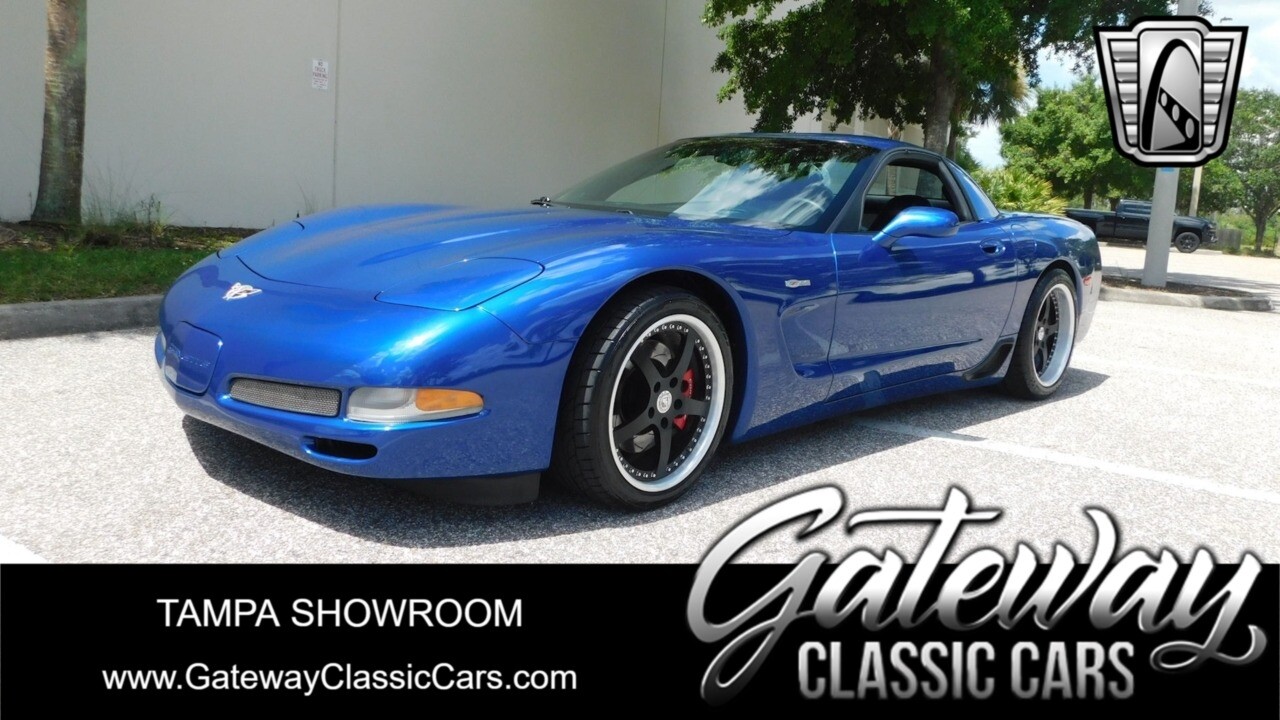 Gateway Classic Cars of Tampa is proud to offer this 2003 Chevrolet Corvette Z06. C5 Z06's are the performance bargains of the century right now. the answer to every driving enthusiast question used to be the "Miata", no it's C5 Corvette in a pinch. But if it absolutely, positively, has to be the great all arounder; a C5 Z06 is preferred! This amazing Electron Blue over black interior Z06 is a real street fighter. It's been blessed with a myriad of performance parts. For instance; the factory LS6 now has a Vararam Cold air intake, Kooks headers, porting of the intake and throttle body, Cartek stage 4x heads Comp 921 Valve springs and SLP double roller timing chain. All this combines for a dyno proven 448hp at the wheels with a 11.09 1/4 mile time. This car is vicious! Additionally, drivetrain was fortified with a Cartek clutch and the suspension was fortified with VMS lowering kit and custom 3-piece black wheels with polished lips. ALL the hard work has been done. This track and street ready Z06 needs a new driver. Is it you, can you handle it? Come snatch this beast up! Low mileage, clean, well modified C5 Z06 availability is like a flash in the pan. Here today gone tomorrow. Don't miss out!