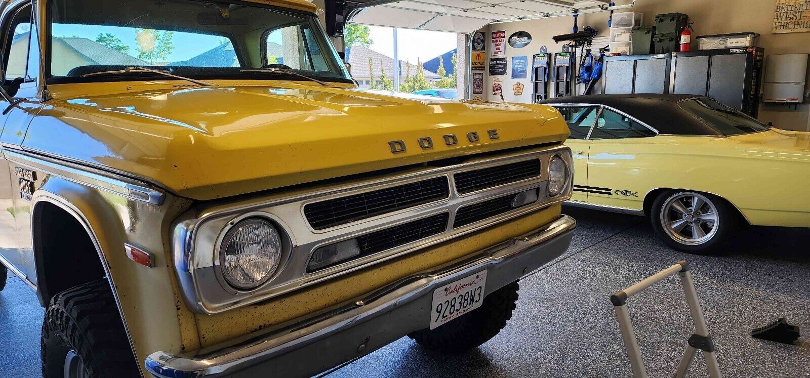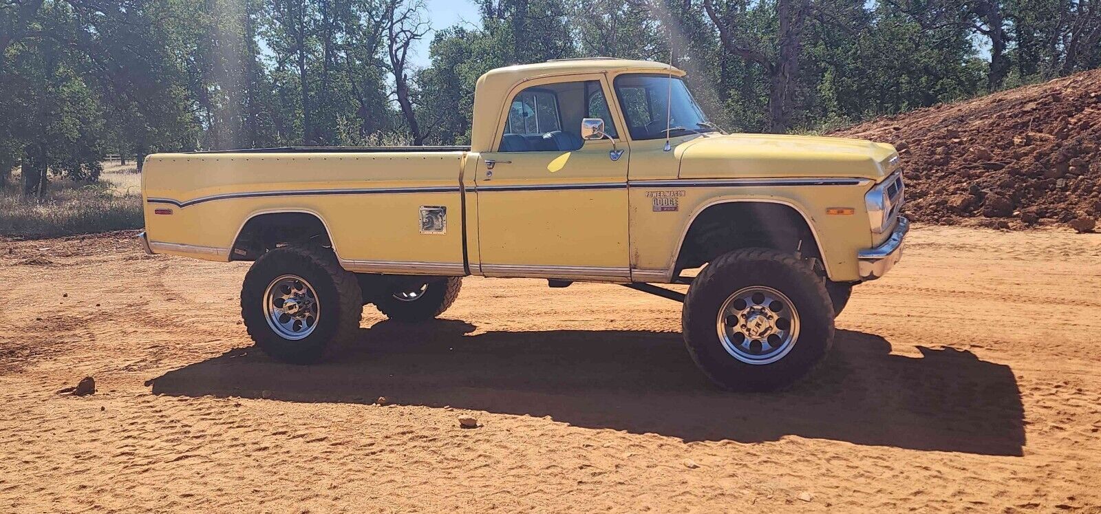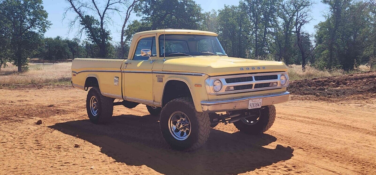 1971 Dodge D100 body on a 1969 Dodge W200 chassis. I bought the W200 with hopes of restoring it but the body was incredibly rough. Later on I stumbled across the 1971 that had been in the back of a barn since 1986! The paint and interior are both original and unrestored. Rebuilt 318 Edelbrock heads,lunati cam, comp cams roller rockers, action plus intake and a 500 cfm edelbrock carb. Upgraded to chrysler electronic ignition and 100 amp alternator. Aluminum radiator with dual electric fans. Stock Np205 4 speed transmission and Np201 transfer case. Dana 44 front axle 4.09 gear Dana 60 rear 4.10 gear Brakes are the factory power drums. New stainless steel lines, shoes and associated hardware. BDS 5 inch suspension lift Exterior: Body and floors are solid. Installed rhino liner in the bed. Travel tanks were added to the truck early in its life. The in cab factory tank and the drivers side tank are operational. Holley Retrobright headlights. Trailer hitch and trailer brake controller installed. 17 inch mickey thompson classic 3 wheels with maxis razr 35x12.5 tires. New door and window seals except the vent glass. Interior: Factory buddy buckets, aftermarket Bluetooth radio. Factory gauges all work. Dynamat installed on floors to keep noise down under factory style carpet. Heater works, no ac Truck runs and drives very well turning heads everywhere. It has some scratches and rock chips but that just adds to the character.Vehicle Details