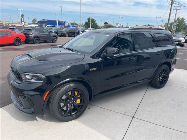 DB Black Crystal Clearcoat 2024 Dodge Durango SRT 392 SRT HEMI 6.4L V8 MDS 8-Speed Automatic AWD, 3.70 Rear Axle Ratio, 3rd row seats: split-bench, 4-Wheel Disc Brakes, 9 Speakers, ABS brakes, Adaptive suspension, Air Conditioning, Alloy wheels, AM/FM radio: SiriusXM w/360L, Anti-whiplash front head restraints, Apple CarPlay/Android Auto, Audio memory, Auto High-beam Headlights, Auto-dimming door mirrors, Auto-dimming Rear-View mirror, Automatic temperature control, Brake assist, Bumpers: body-color, Compass, Delay-off headlights, Driver door bin, Driver vanity mirror, Dual front impact airbags, Dual front side impact airbags, Electronic Stability Control, Emergency communication system, Four wheel independent suspension, Front anti-roll bar, Front Bucket Seats, Front Center Armrest w/Storage, Front dual zone A/C, Front reading lights, Fully automatic headlights, Garage door transmitter, Gloss Black Exterior Mirrors, Heated door mirrors, Heated front seats, Heated rear seats, Heated steering wheel, Illuminated entry, Knee airbag, Leather Shift Knob, Leather steering wheel, Leather Trimmed Bucket Seats, Low tire pressure warning, Memory seat, Navigation system: TomTom, Occupant sensing airbag, Outside temperature display, Overhead airbag, Overhead console, Panic alarm, ParkView Rear Back-Up Camera, Passenger door bin, Passenger vanity mirror, Power door mirrors, Power driver seat, Power Liftgate, Power passenger seat, Power steering, Power windows, Radio data system, Radio: Uconnect 5 Nav w/10.1 Display, Rain sensing wipers, Rear air conditioning, Rear anti-roll bar, Rear reading lights, Rear window defroster, Rear window wiper, Remote keyless entry, Security system, Speed control, Speed-sensing steering, Speed-Sensitive Wipers, Split folding rear seat, Spoiler, Sport steering wheel, Steering wheel mounted audio controls, Tachometer, Telescoping steering wheel, Tilt steering wheel, Traction control, Trip computer, Turn signal indicator mirrors, Variably intermittent wipers, Ventilated front seats, Voltmeter, Wheels: 20 x 10 Hyper Black Aluminum, AWD.Home of the 20 Year, 200,000 Mile Limited Warranty which is included with the purchase of a brand new vehicle at No Additional Cost!