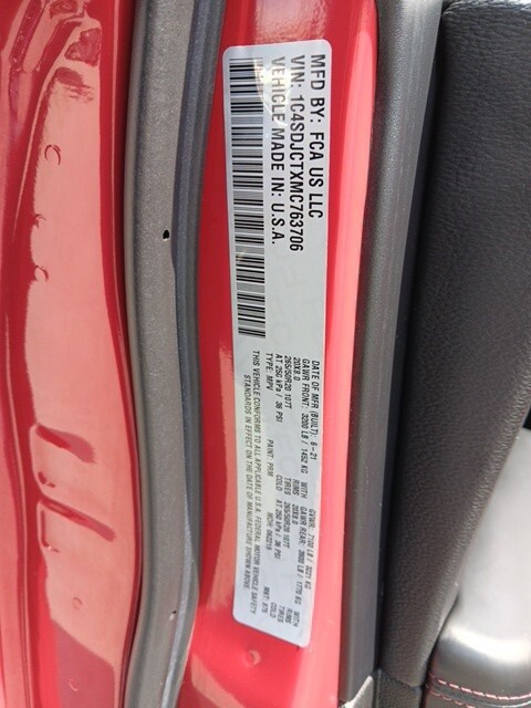 AWD, 10.1 Touchscreen Display, 2nd Row Fold/Tumble Captain Chairs, 2nd Row Mini Console w/Cupholders, 2nd Row Seat Mounted Inboard Armrests, 3.09 Rear Axle Ratio, 3rd Row Floor Mat & Mini Console, 3rd row seats: split-bench, 4-Wheel Disc Brakes, 4G LTE Wi-Fi Hot Spot, 6-Passenger Seating, 9 Speakers, ABS brakes, Air Conditioning, Alloy wheels, AM/FM radio: SiriusXM w/360L, Anti-whiplash front head restraints, Apple CarPlay, Apple CarPlay/Android Auto, Audio memory, Auto High-beam Headlights, Auto-dimming door mirrors, Auto-dimming Rear-View mirror, Auto-leveling suspension, Automatic temperature control, Black Roof Rails, Blacktop Package, Brake assist, Bumpers: body-color, Cargo Compartment Cover, Cargo Plus Group, Class IV Receiver Hitch, Compass, Connected Travel & Traffic Services, Delay-off headlights, Disassociated Touchscreen Display, Driver door bin, Driver vanity mirror, Dual front impact airbags, Dual front side impact airbags, Electronic Stability Control, Emergency communication system: SiriusXM Guardian, Four wheel independent suspension, Front anti-roll bar, Front Bucket Seats, Front Center Armrest w/Storage, Front dual zone A/C, Front fog lights, Front License Plate Bracket, Front reading lights, Fully automatic headlights, Garage door transmitter, Global Telematics Box Module (TBM), Gloss Black Badges, Gloss Black Exterior Mirrors, Google Android Auto, GPS Antenna Input, GPS Navigation, HD Radio, Heated door mirrors, Heated front seats, Heated rear seats, Heated steering wheel, Heavy-Duty Engine Cooling, Hemi Badge, Illuminated entry, Integrated Center Stack Radio, Integrated Roof Rail Crossbars, Integrated Voice Command w/Bluetooth, Knee airbag, Leather Suede Bucket Seats, Low tire pressure warning, Manufacturer's Statement of Origin, Memory seat, Navigation system: TomTom, Occupant sensing airbag, Outside temperature display, Overhead airbag, Overhead console, Panic alarm, ParkView Rear Back-Up Camera, Passenger door bin, Passenger vanity mirror, Power door mirrors, Power driver seat, Power Liftgate, Power passenger seat, Power steering, Power windows, Quick Order Package 22S, Radar Red Interior Accent Stitch, Radio data system, Radio: Uconnect 5 Nav w/10.1 Display, Rain sensing wipers, Rear air conditioning, Rear anti-roll bar, Rear Load Leveling Suspension, Rear reading lights, Rear seat center armrest, Rear window defroster, Rear window wiper, Remote keyless entry, Satin Black Dodge Tail Lamp Badge, Security system, SiriusXM Guardian - Included Trial (B), SiriusXM Satellite Radio, SiriusXM w/360L, Speed control, Speed-sensing steering, Speed-Sensitive Wipers, Split folding rear seat, Spoiler, Steering wheel mounted audio controls, Tachometer, Telescoping steering wheel, Tilt steering wheel, Traction control, Trailer Brake Control, Trailer Tow Group IV, Trip computer, Turn signal indicator mirrors, USB Host Flip, Variably intermittent wipers, Voltmeter, Wheels: 20 x 8.0 Black Noise Aluminum, Wheels: 20 x 8.0 Fine Silver, AWD.