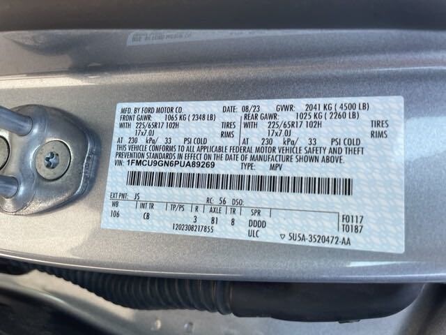 Ford Gold Certified Certified, AWD, 3.81 Axle Ratio, 4-Wheel Disc Brakes, 6 Speakers, ABS brakes, Air Conditioning, Alloy wheels, AM/FM radio: SiriusXM, AM/FM Stereo, Auto High-beam Headlights, Automatic temperature control, Brake assist, Bumpers: body-color, Compass, Delay-off headlights, Driver door bin, Driver vanity mirror, Dual front impact airbags, Dual front side impact airbags, Electronic Stability Control, Emergency communication system: SYNC 4 911 Assist, Equipment Group 200A, Exterior Parking Camera Rear, FordPass Connect, Four wheel independent suspension, Front anti-roll bar, Front Bucket Seats, Front Center Armrest, Front dual zone A/C, Front License Plate Bracket, Front reading lights, Fully automatic headlights, Heated door mirrors, Heated front seats, Heated steering wheel, Illuminated entry, Knee airbag, Low tire pressure warning, Occupant sensing airbag, Outside temperature display, Overhead airbag, Overhead console, Panic alarm, Passenger door bin, Passenger vanity mirror, Power door mirrors, Power driver seat, Power Liftgate, Power steering, Power windows, Radio data system, Rear anti-roll bar, Rear reading lights, Rear seat center armrest, Rear window defroster, Rear window wiper, Remote keyless entry, Speed control, Speed-sensing steering, Speed-Sensitive Wipers, Split folding rear seat, Spoiler, Steering wheel mounted audio controls, SYNC 4, Tachometer, Telescoping steering wheel, Tilt steering wheel, Traction control, Trip computer, Unique Cloth Front Bucket Seats, Variably intermittent wipers, Wheels: 17 Shadow Silver-Painted Aluminum, AWD.