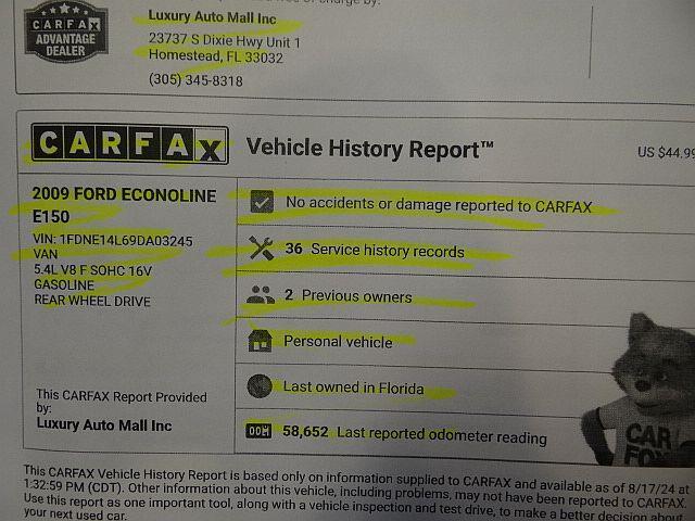 You are viewing a Hard to find Low Mileage 2009 Ford E-150 Tuscany Luxury Conversion Van! Only 58,000 Carfax Documented Miles! Carfax NO accidents! Well Serviced with 36 Service Records! Mostly ONE Owner van! Florida Owned which means NO RUST issues! A BIG Plus folks! This is a very nice van! Dont miss out!